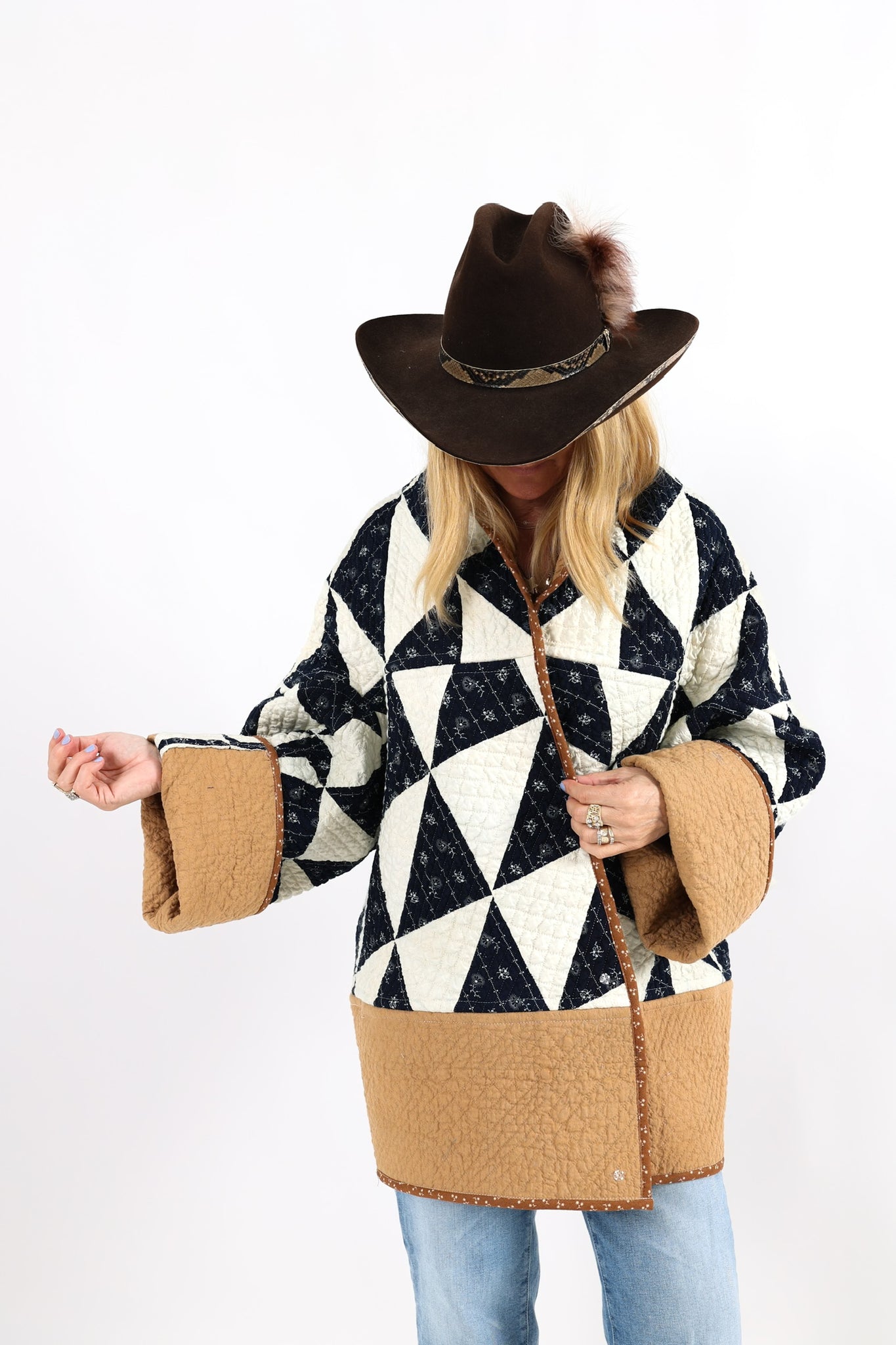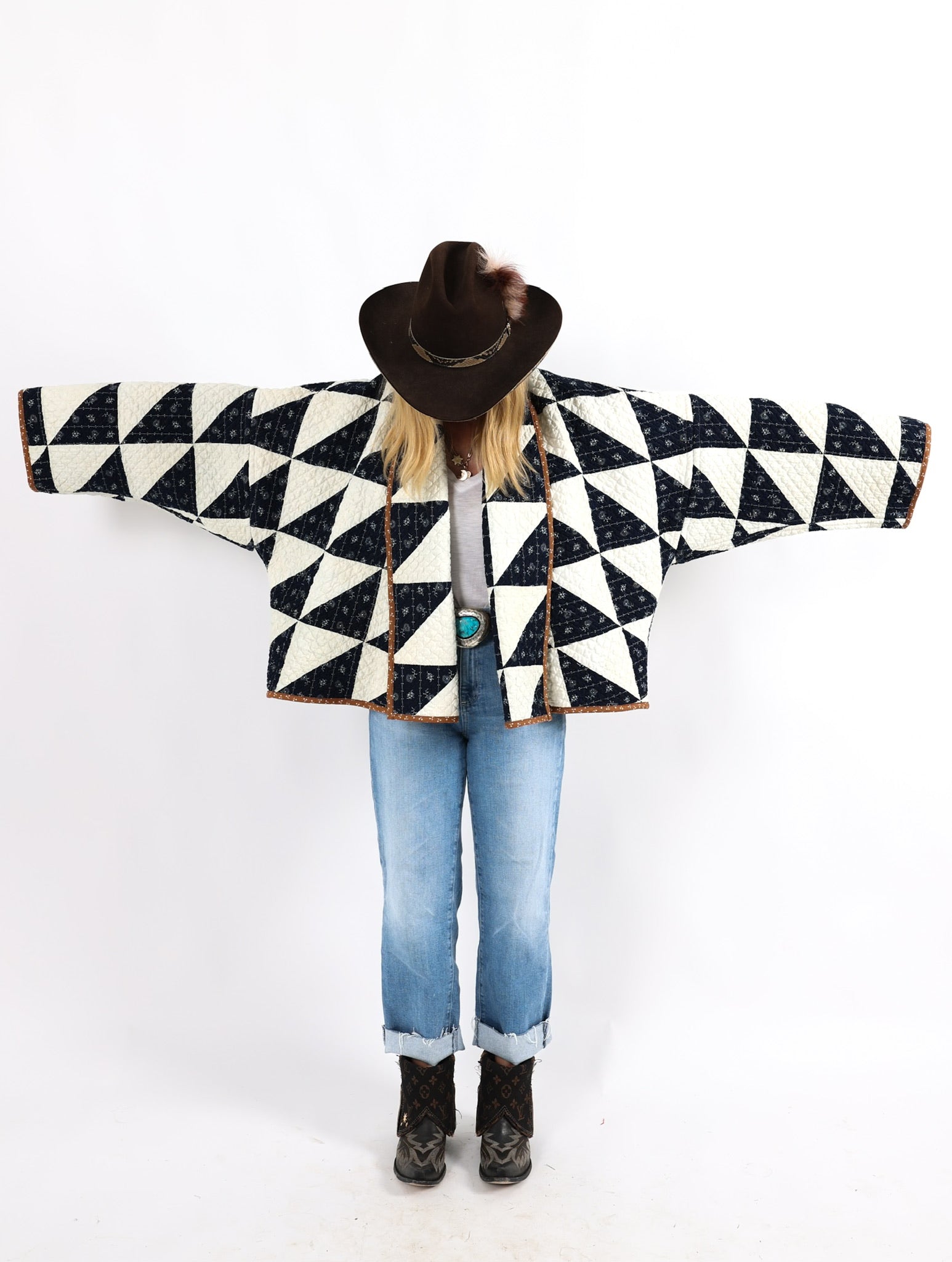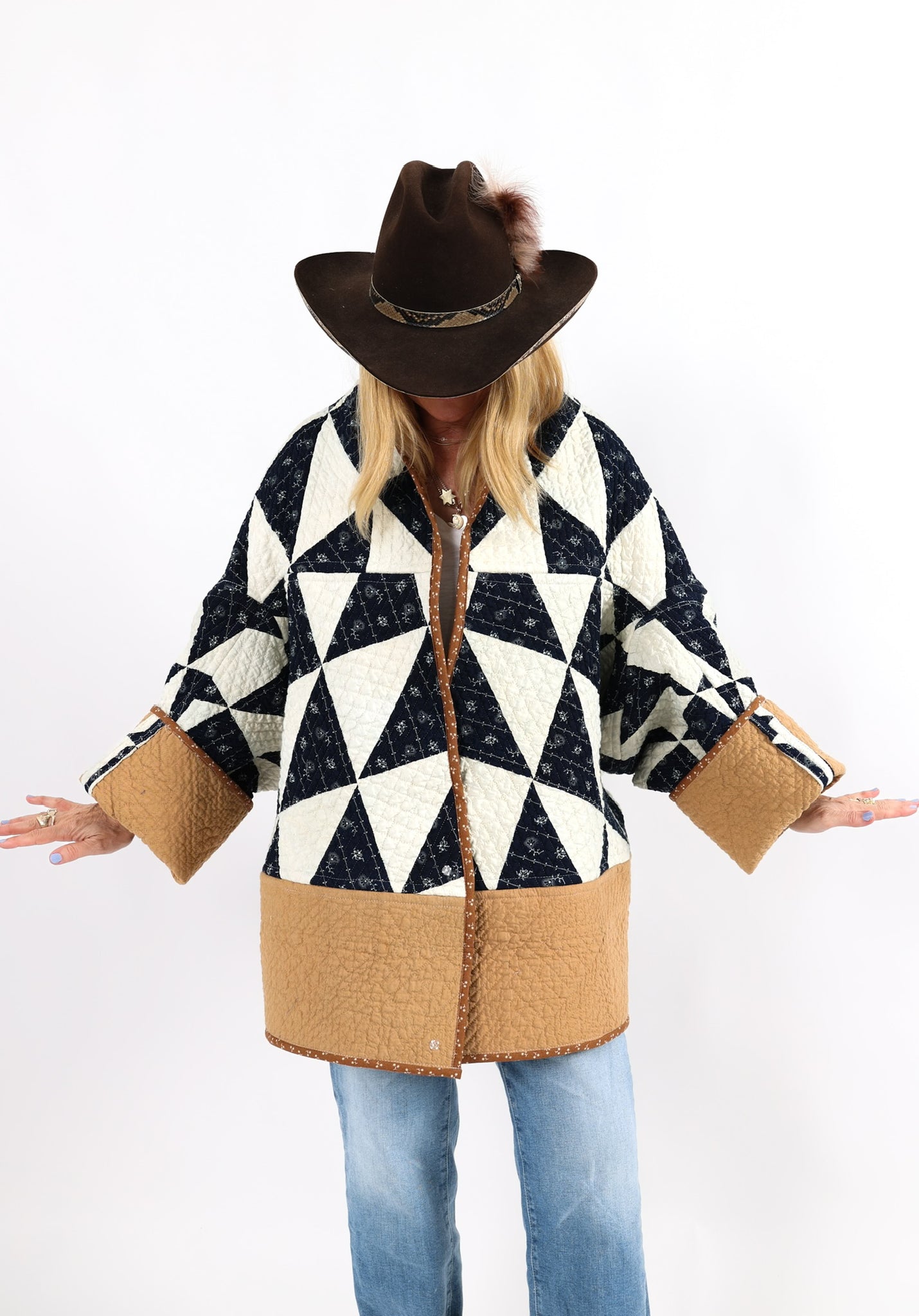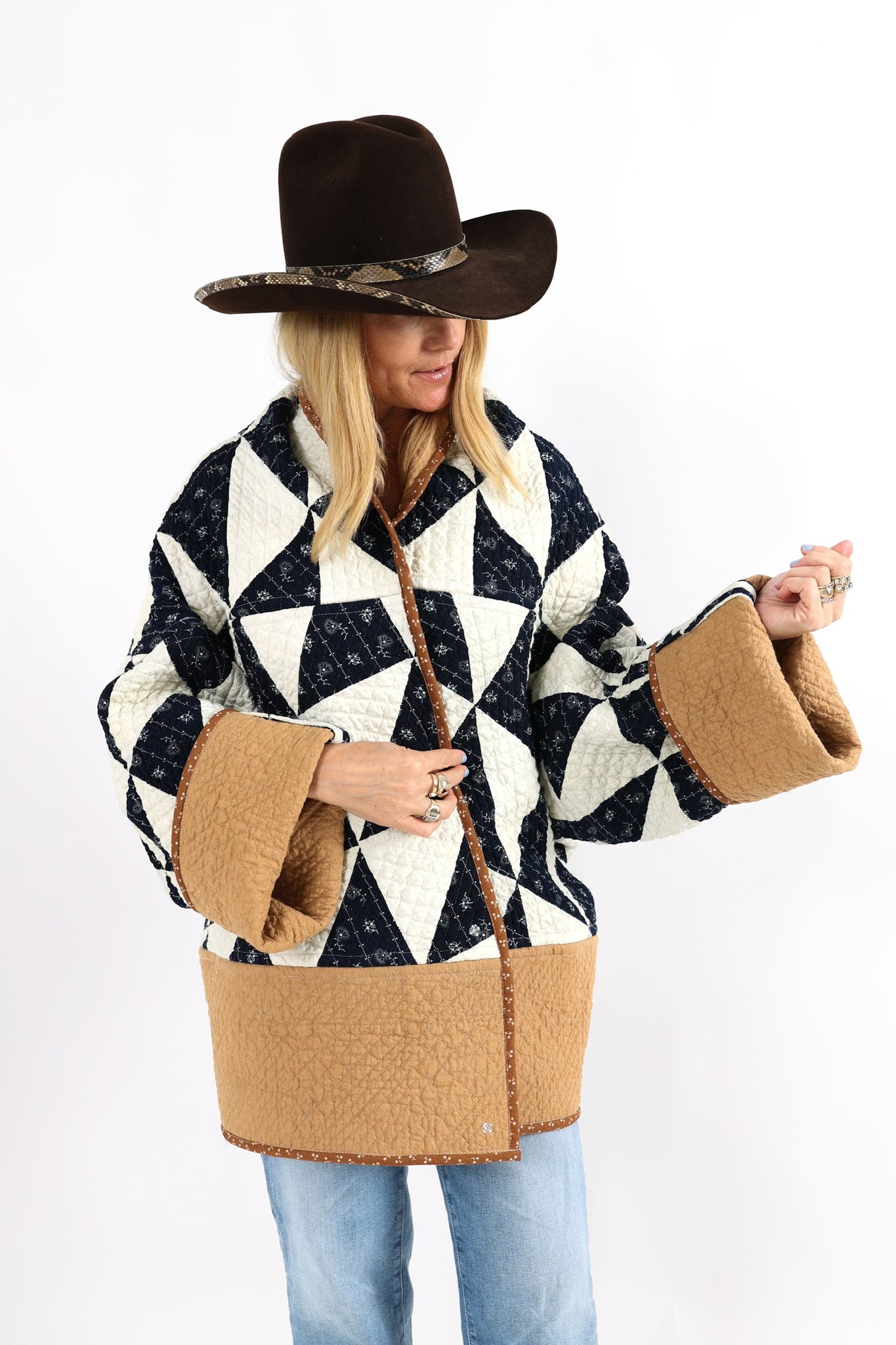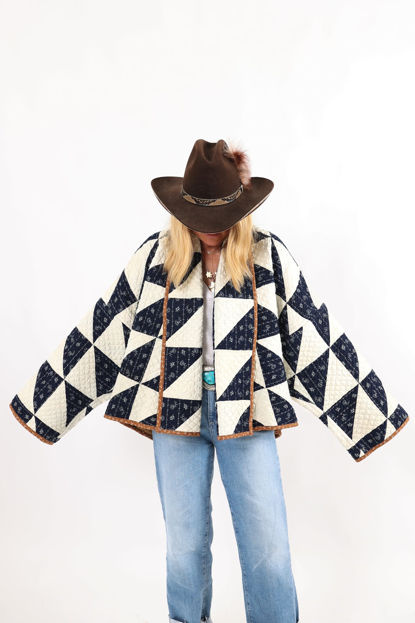 Please note that all of our jackets are made from antique quilts and the fabric reflects this. Our fabrics are sometimes older than 100 years and we believe that makes them perfectly imperfect. This is what makes them a one-of-a-kind piece of art. All of our garments are pre-washed in a special restoration quilt wash. We recommend spot cleaning if necessary.