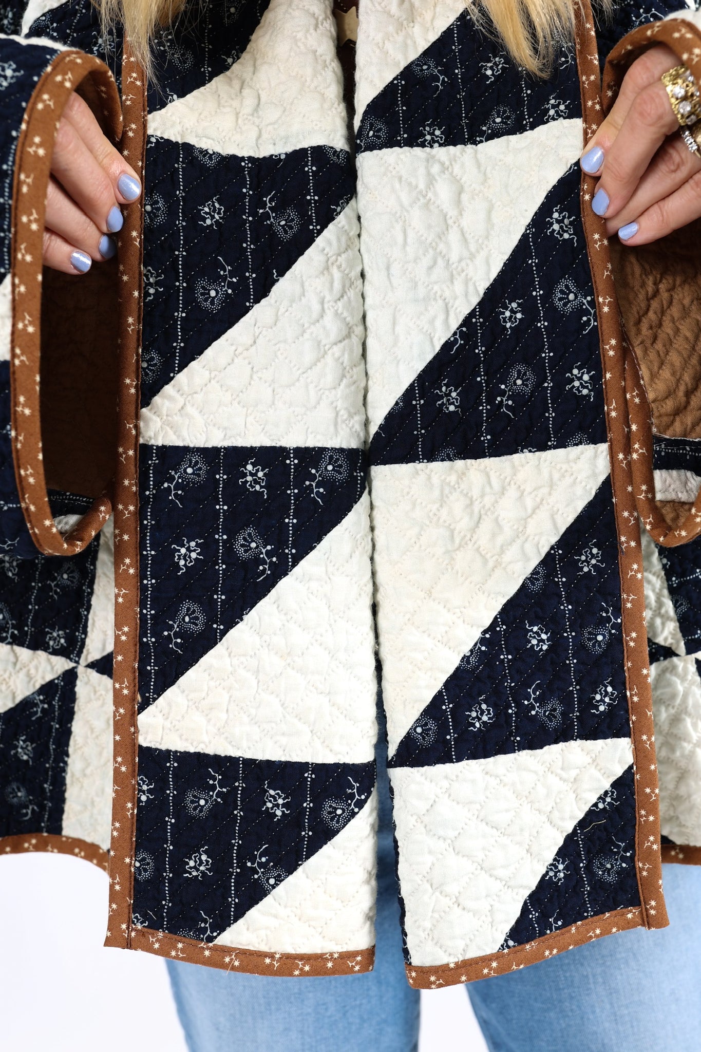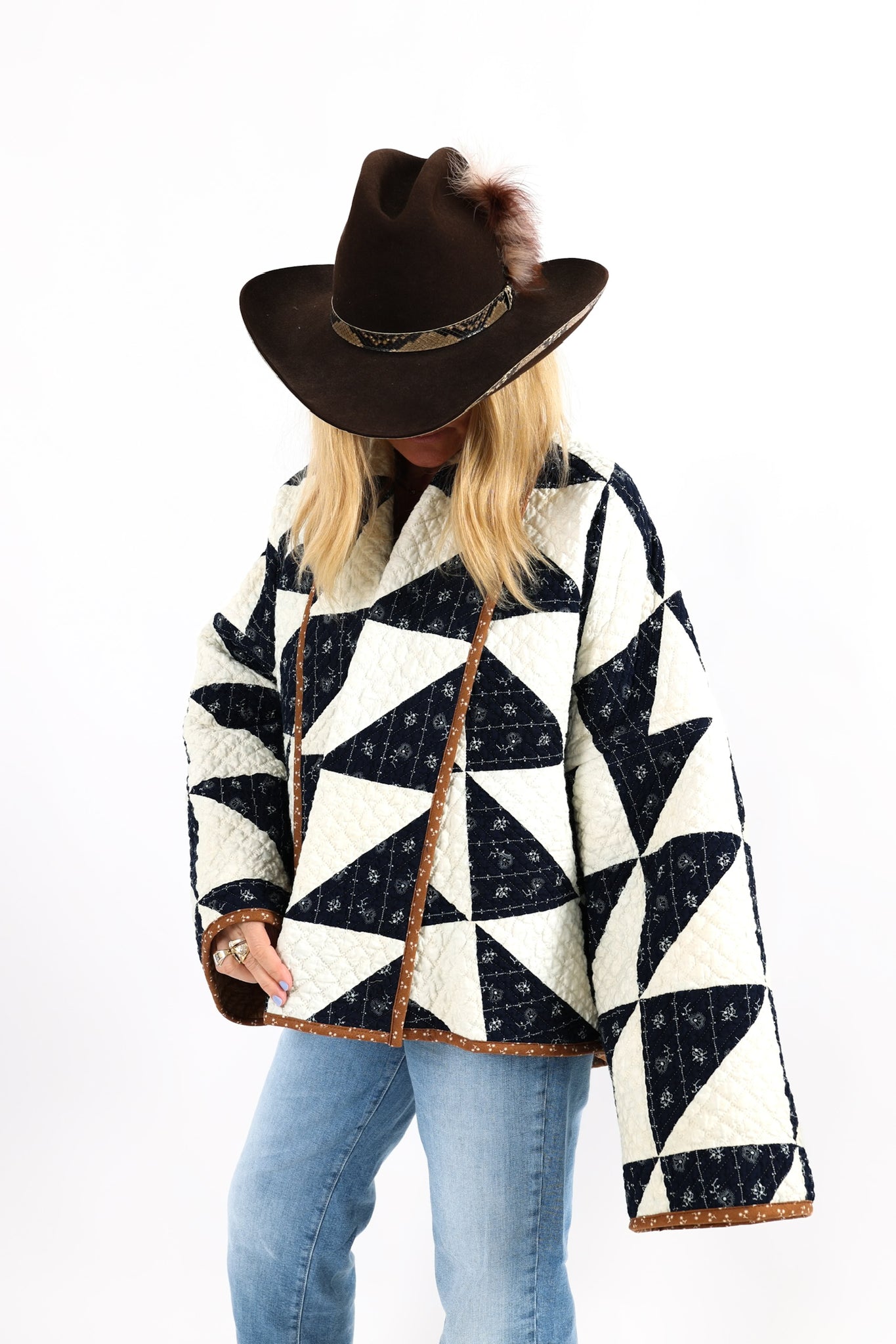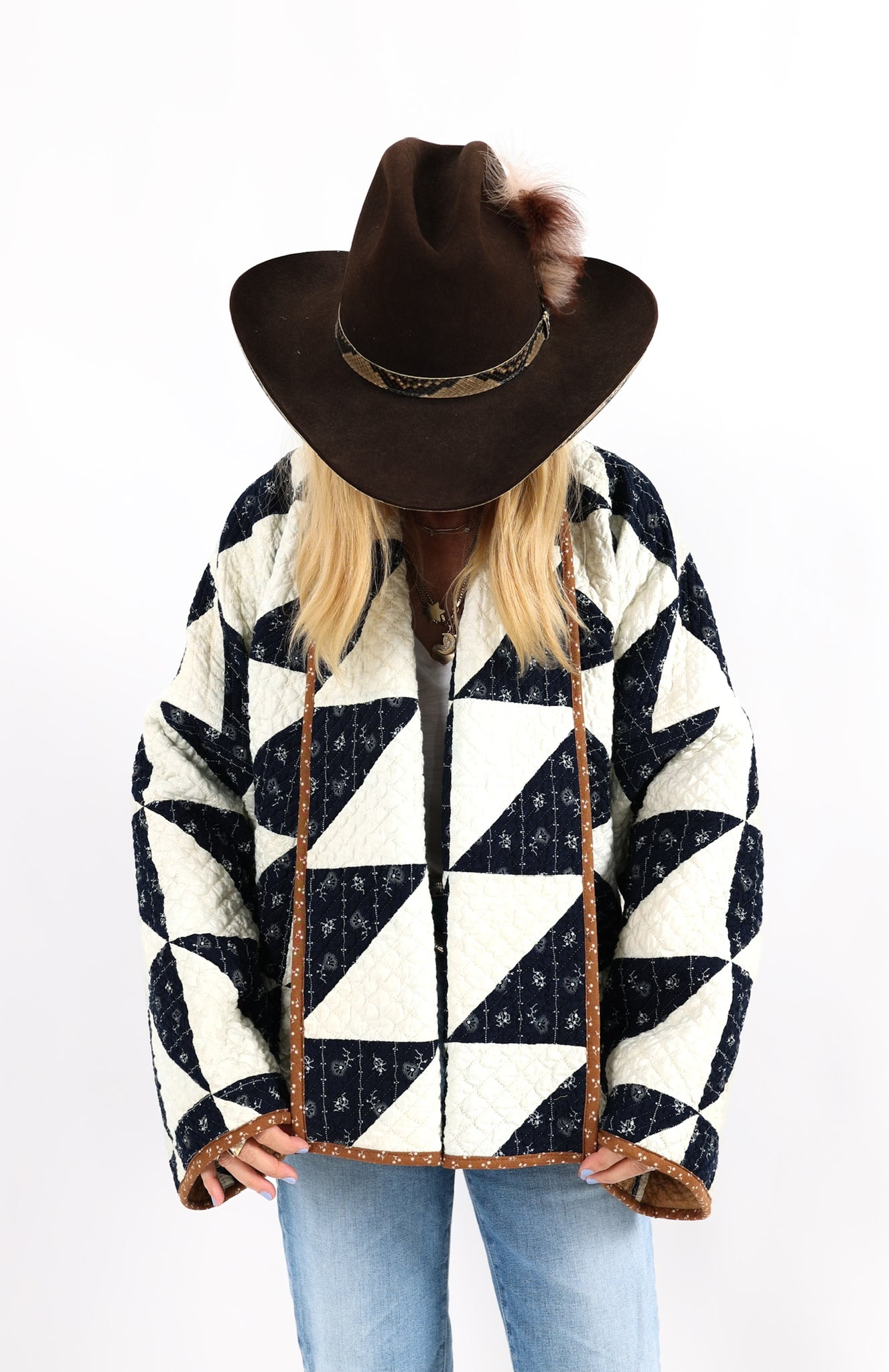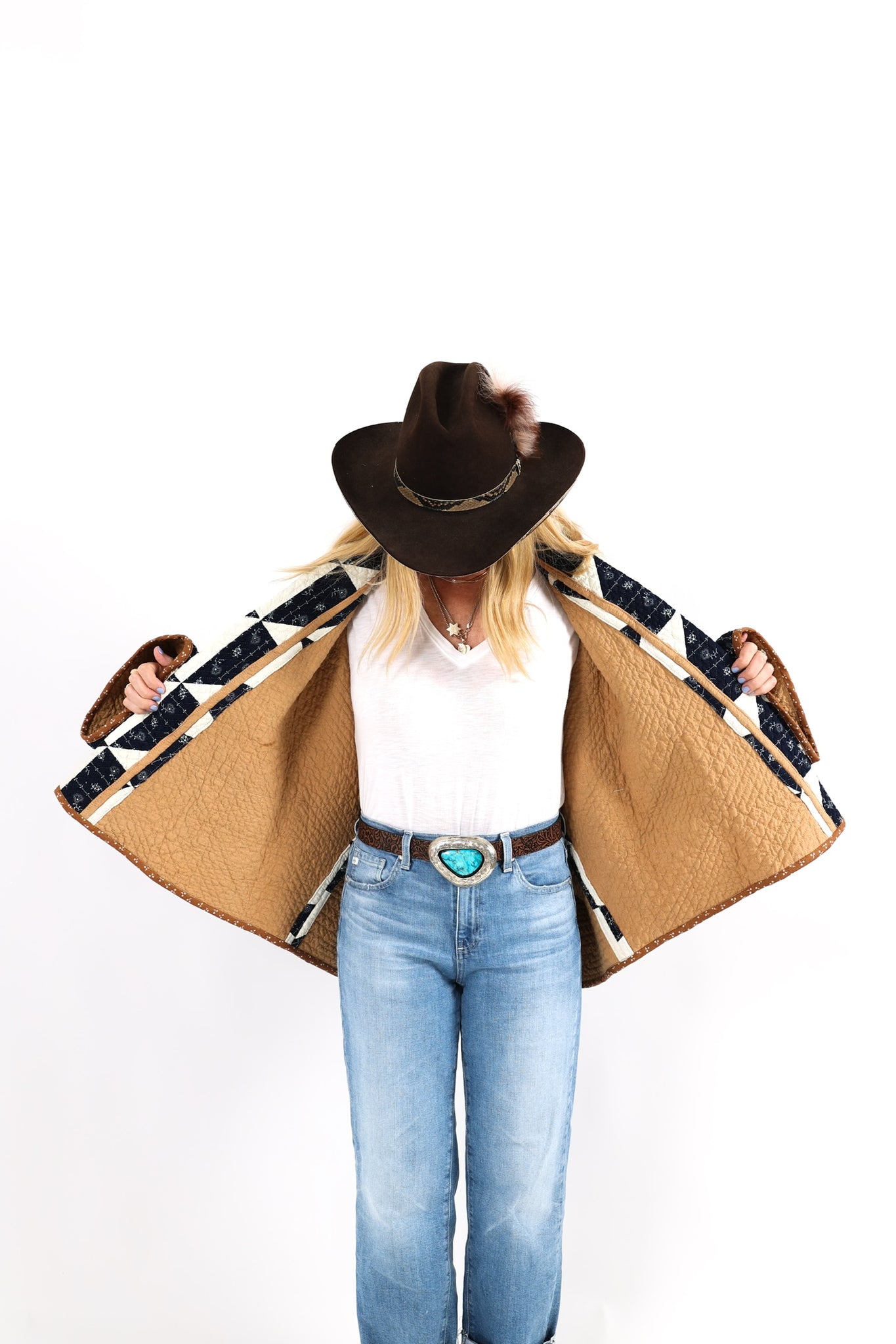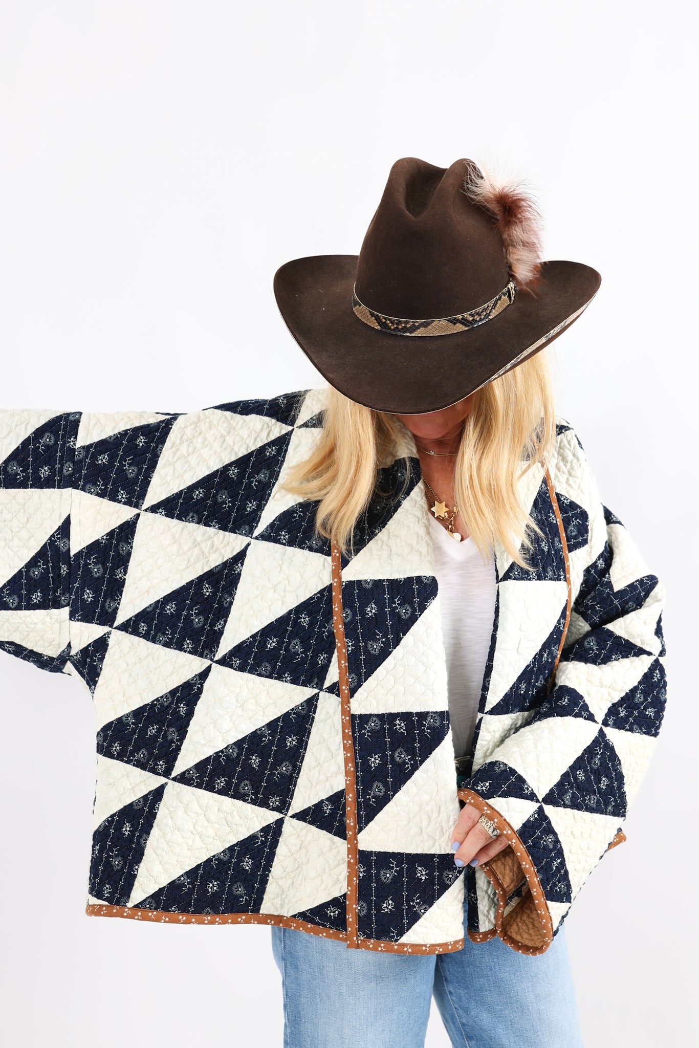 Please note that all of our jackets are made from antique quilts and the fabric reflects this. Our fabrics are sometimes older than 100 years and we believe that makes them perfectly imperfect. This is what makes them a one-of-a-kind piece of art. All of our garments are pre-washed in a special restoration quilt wash. We recommend spot cleaning if necessary.