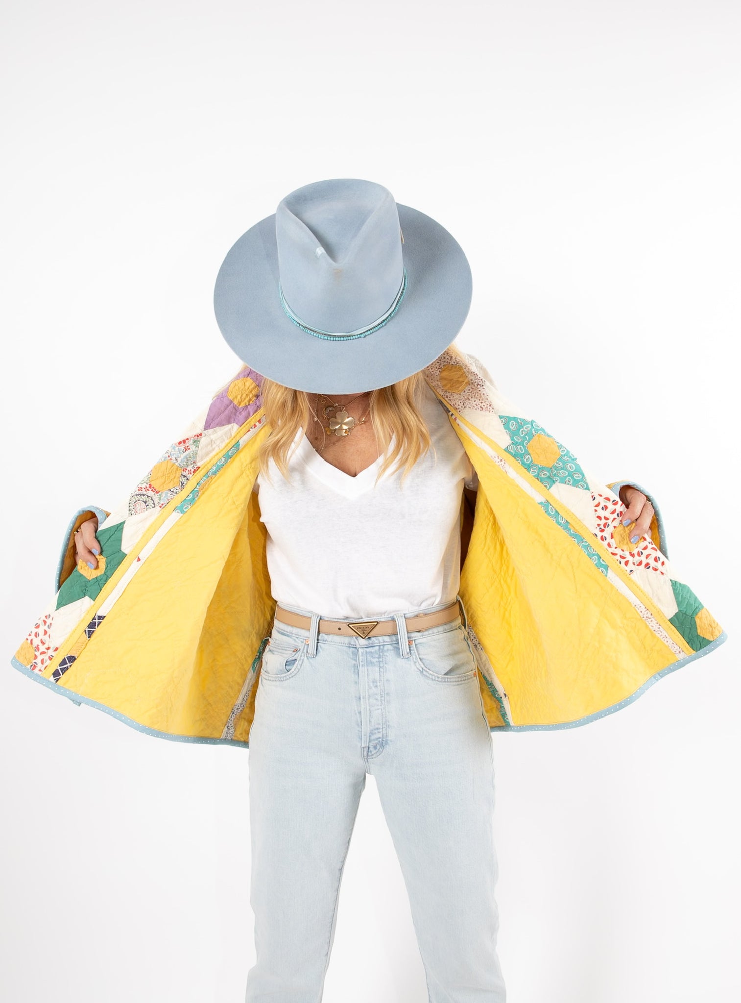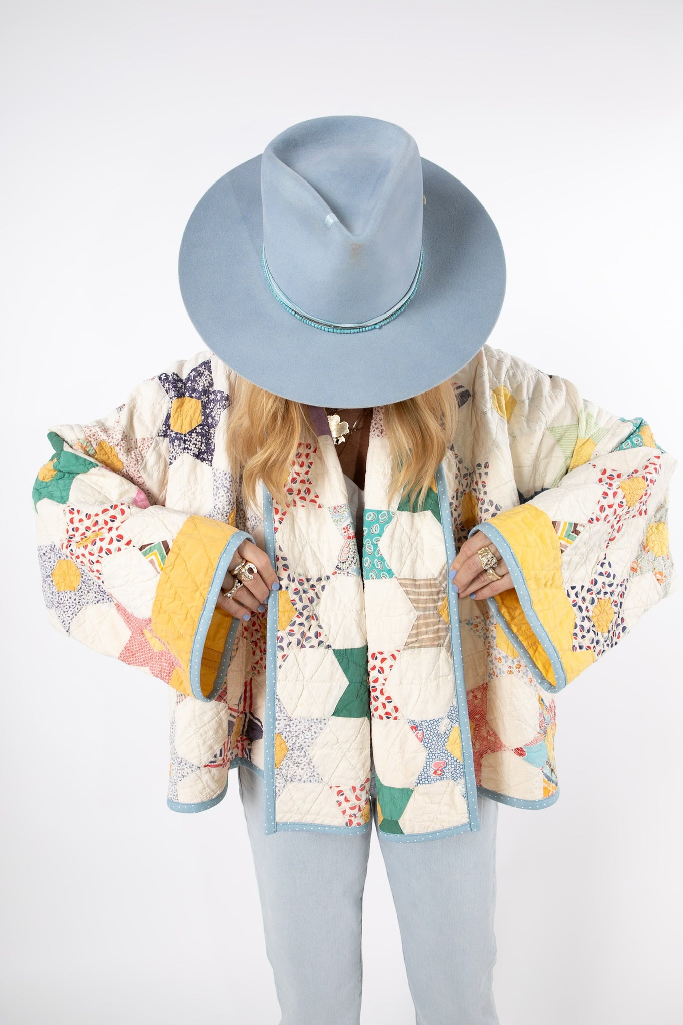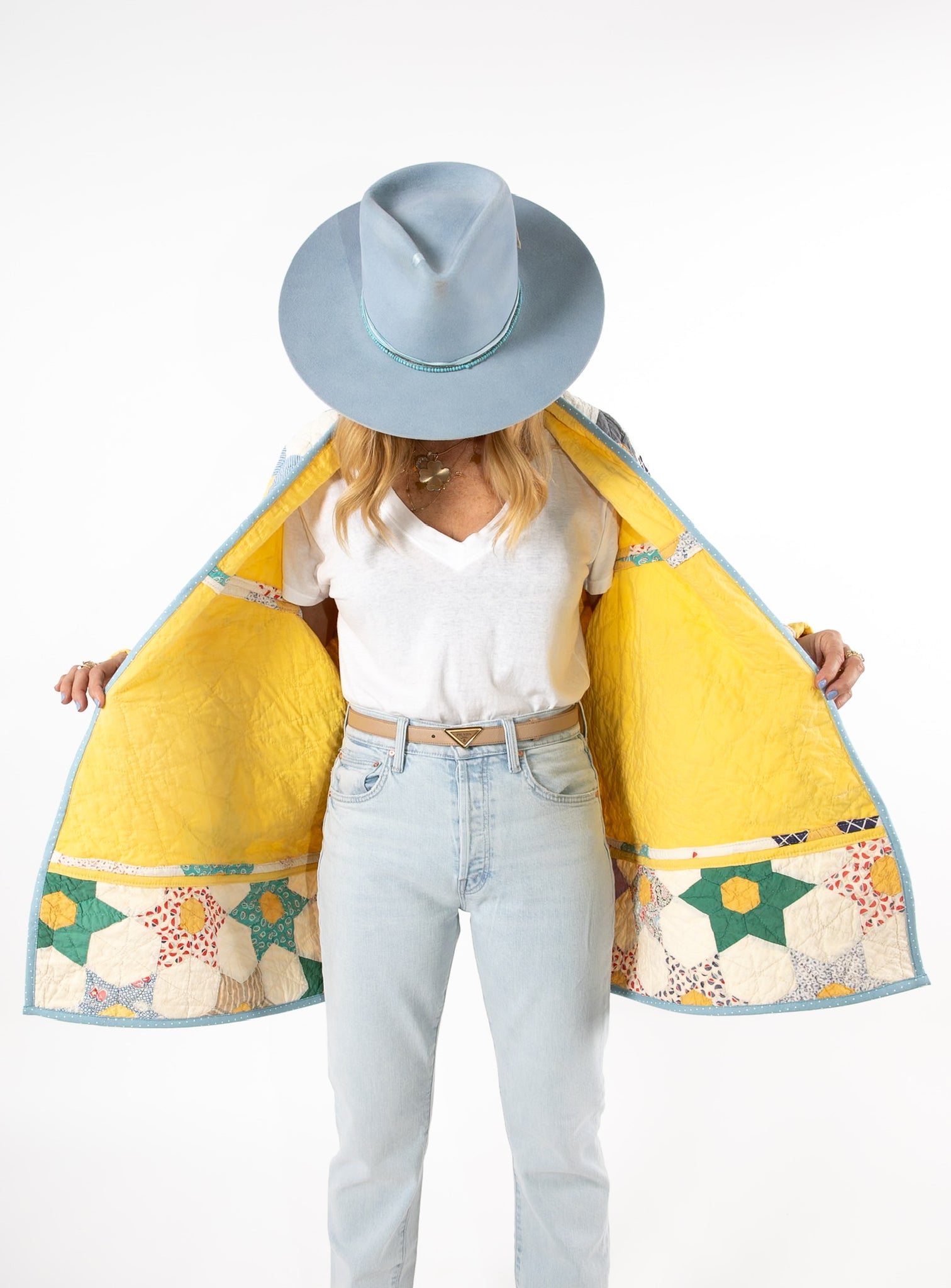 Please note that all of our jackets are made from antique quilts and the fabric reflects this. Our fabrics are sometimes older than 100 years and we believe that makes them perfectly imperfect. This is what makes them a one-of-a-kind piece of art. All of our garments are pre-washed in a special restoration quilt wash. We recommend spot cleaning if necessary.