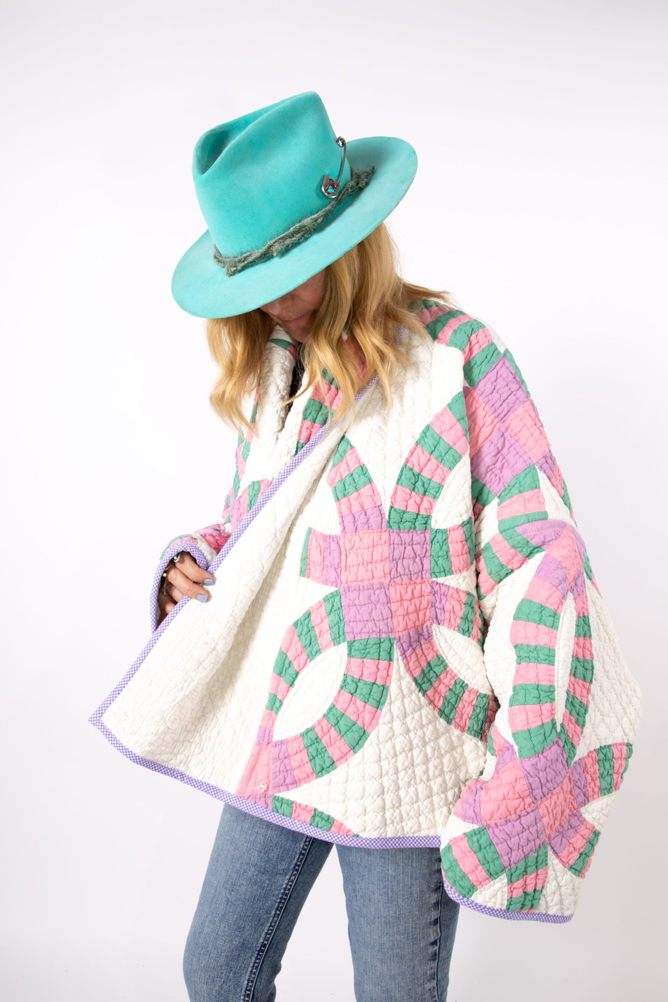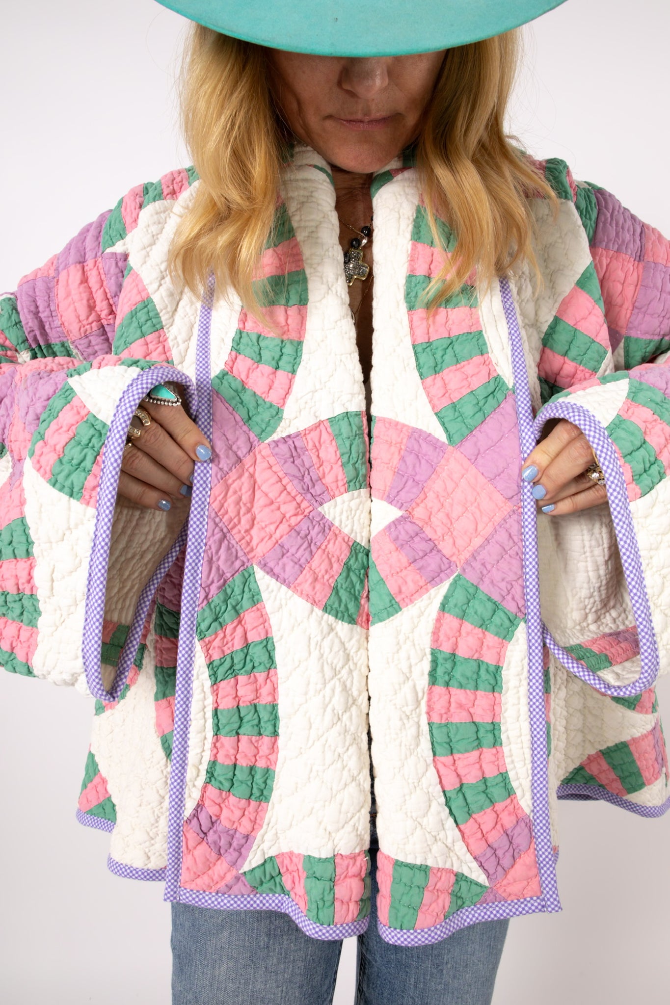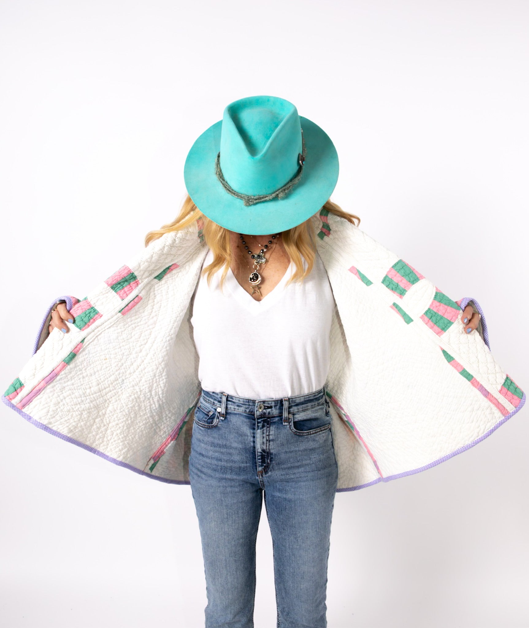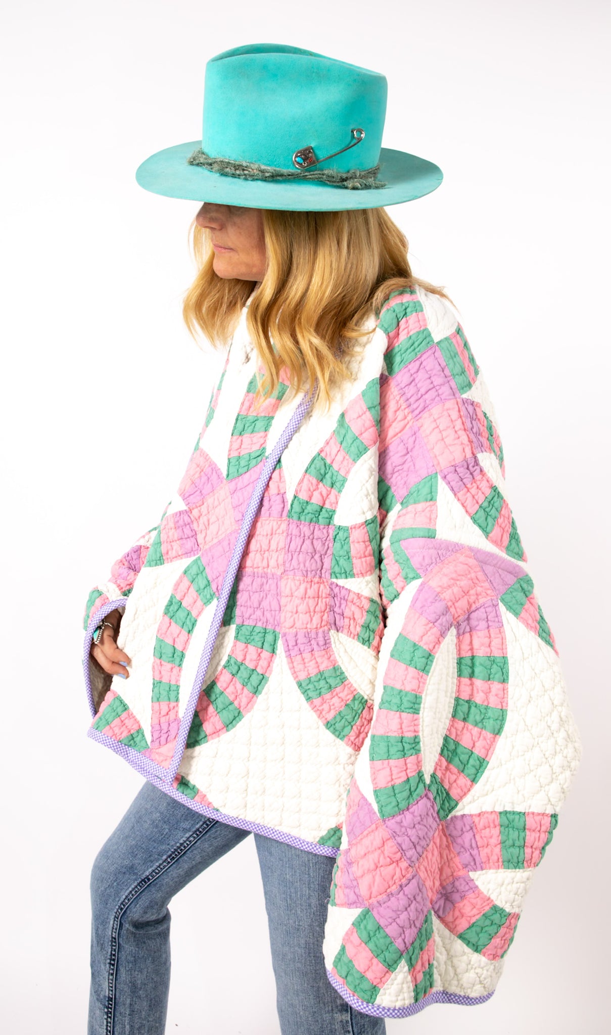 Please note that all of our jackets are made from antique quilts and the fabric reflects this. Our fabrics are sometimes older than 100 years and we believe that makes them perfectly imperfect. This is what makes them a one-of-a-kind piece of art. All of our garments are pre-washed in a special restoration quilt wash. We recommend spot cleaning if necessary.