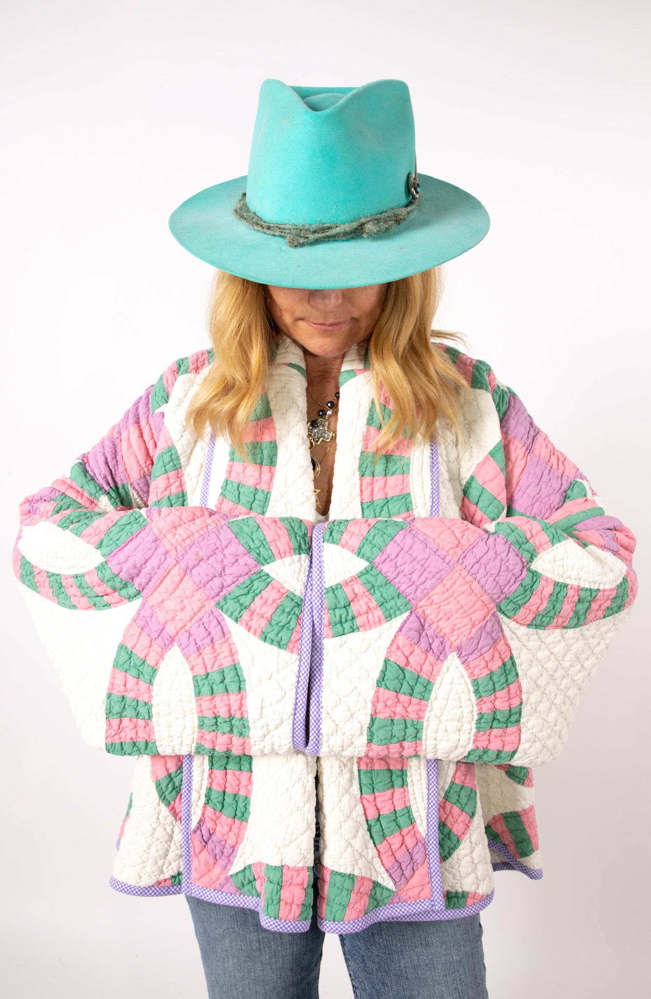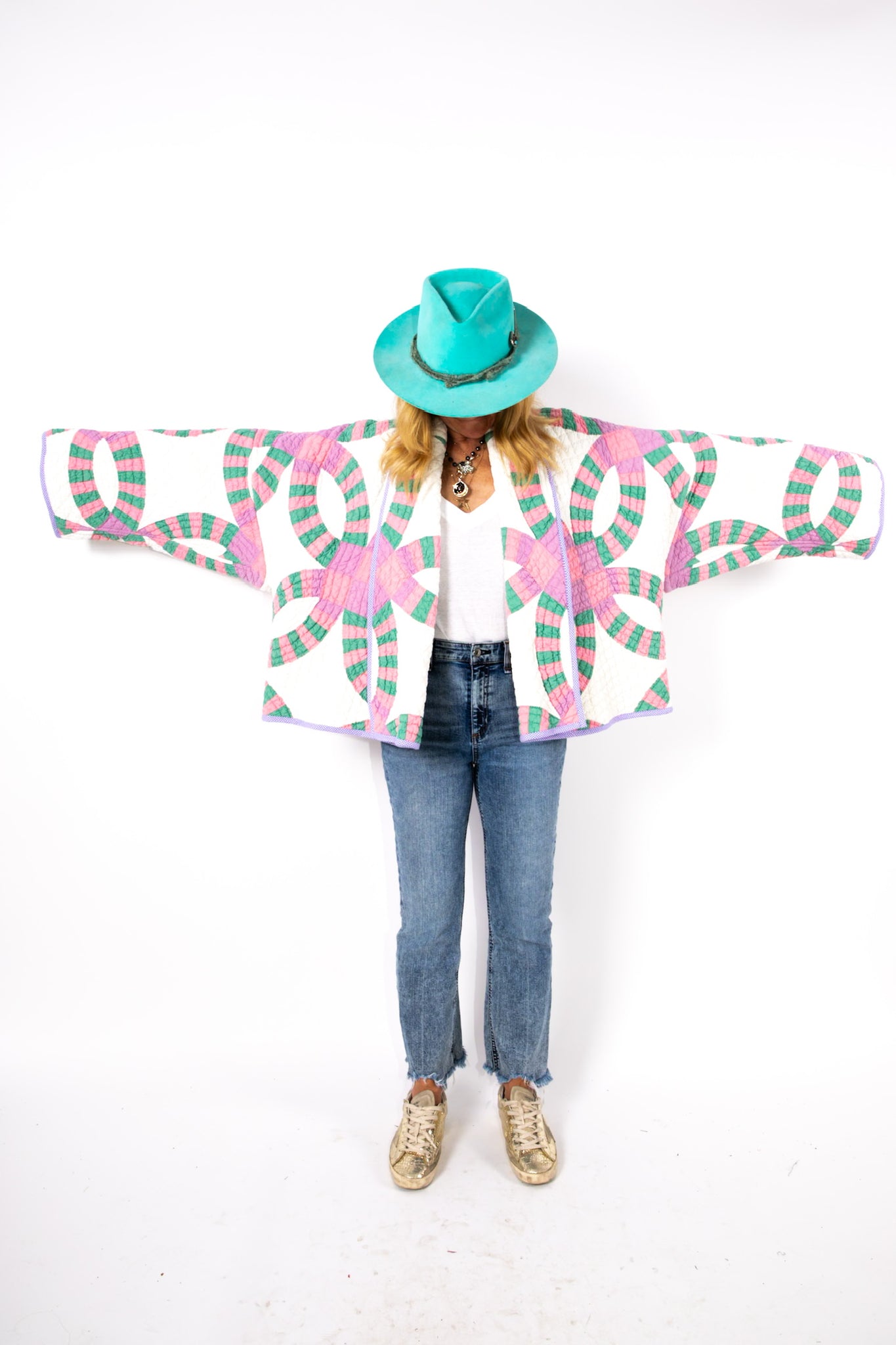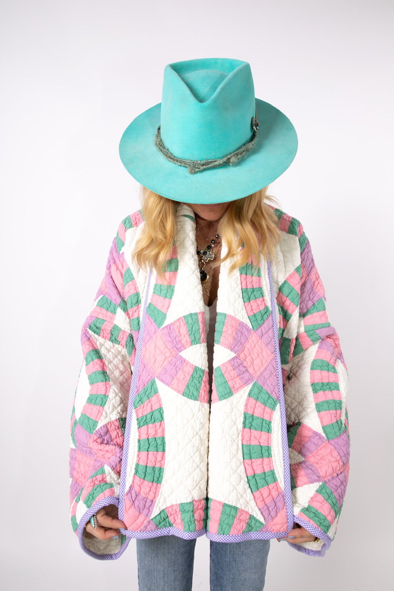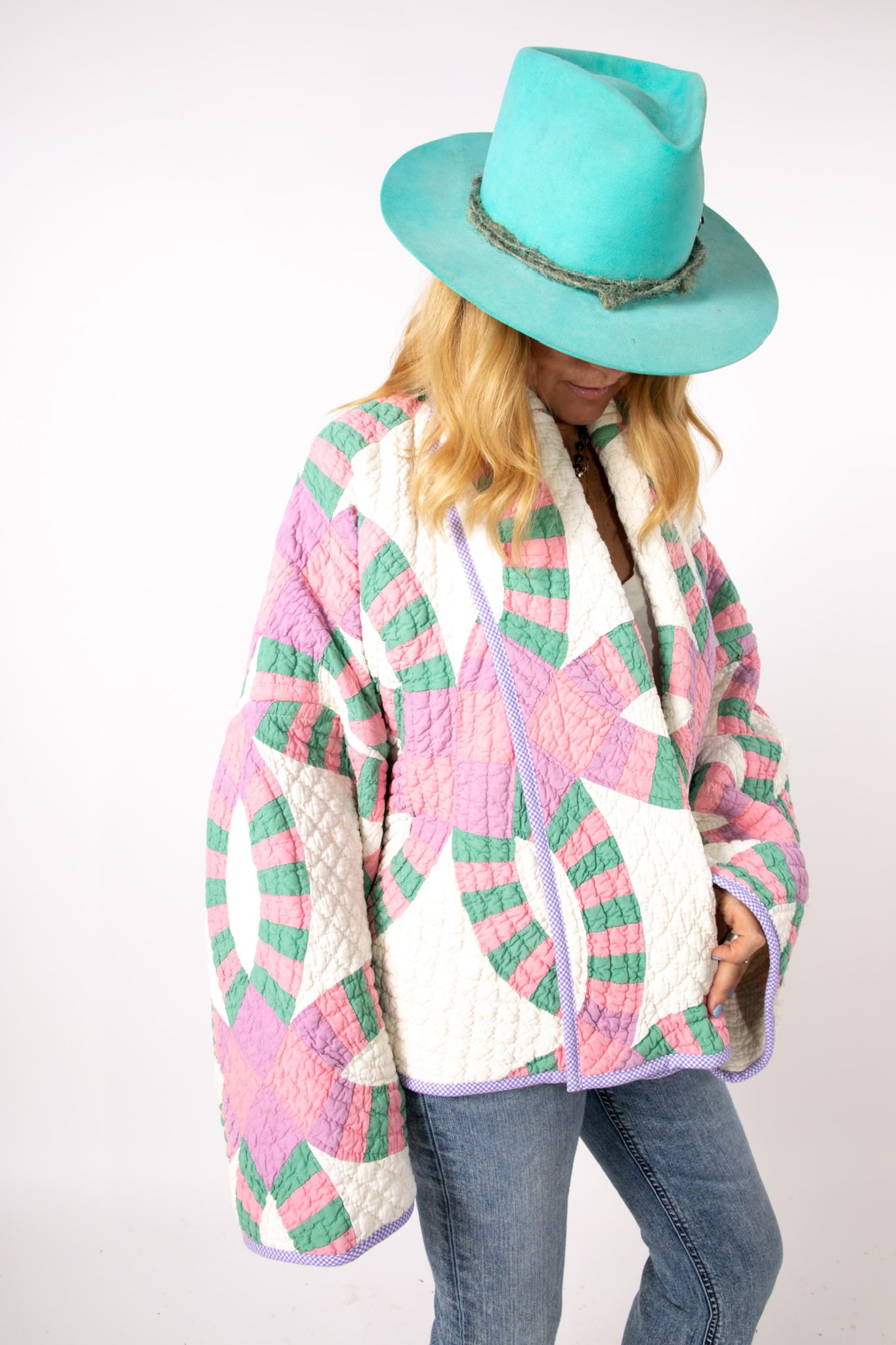 Please note that all of our jackets are made from antique quilts and the fabric reflects this. Our fabrics are sometimes older than 100 years and we believe that makes them perfectly imperfect. This is what makes them a one-of-a-kind piece of art. All of our garments are pre-washed in a special restoration quilt wash. We recommend spot cleaning if necessary.