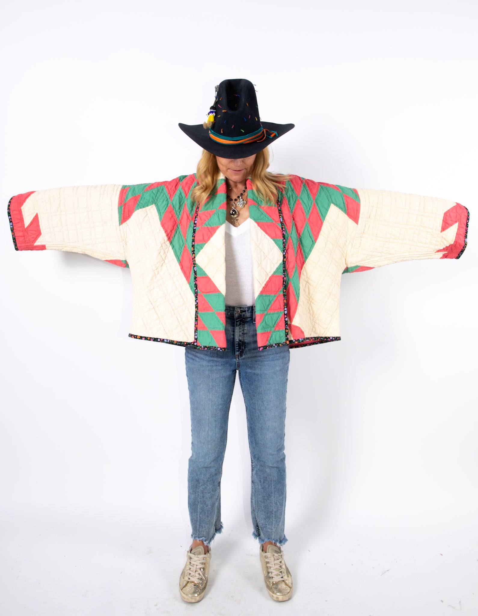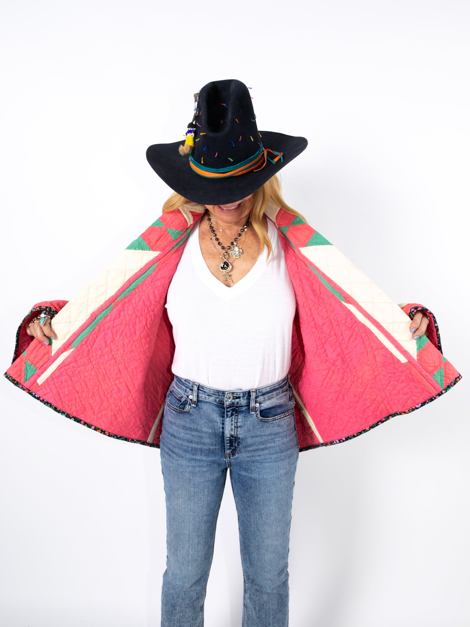 Please note that all of our jackets are made from antique quilts and the fabric reflects this. Our fabrics are sometimes older than 100 years and we believe that makes them perfectly imperfect. This is what makes them a one-of-a-kind piece of art. All of our garments are pre-washed in a special restoration quilt wash. We recommend spot cleaning if necessary.