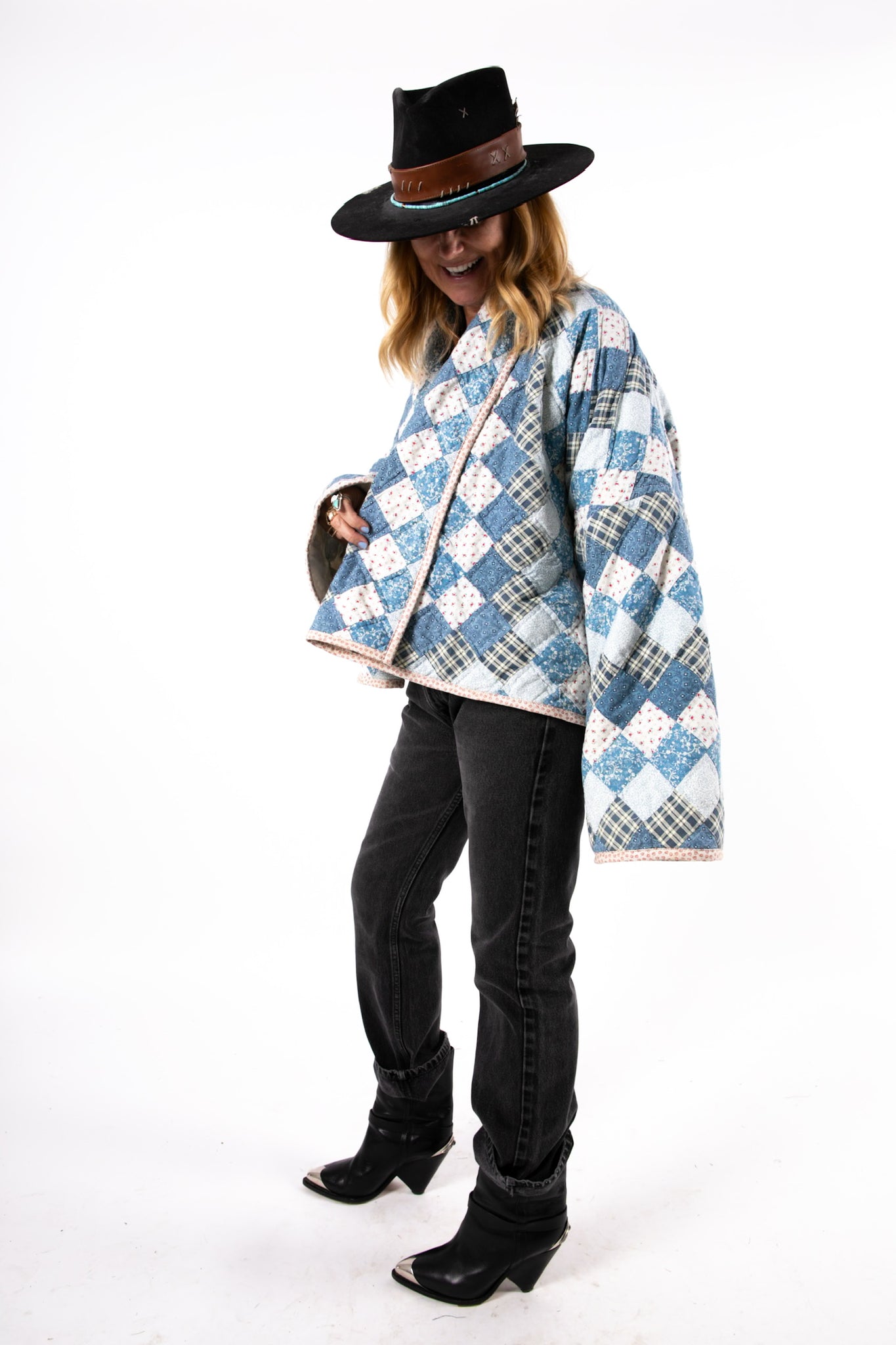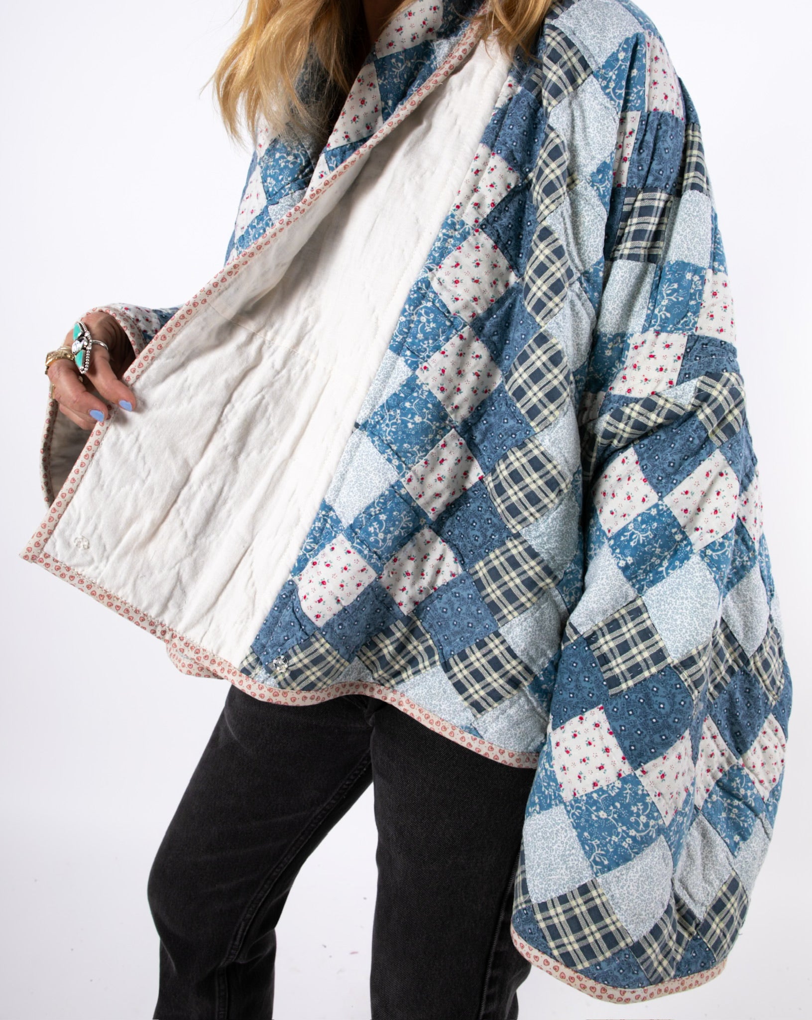 Please note that all of our jackets are made from antique quilts and the fabric reflects this. Our fabrics are sometimes older than 100 years and we believe that makes them perfectly imperfect. This is what makes them a one-of-a-kind piece of art. All of our garments are pre-washed in a special restoration quilt wash. We recommend spot cleaning if necessary.