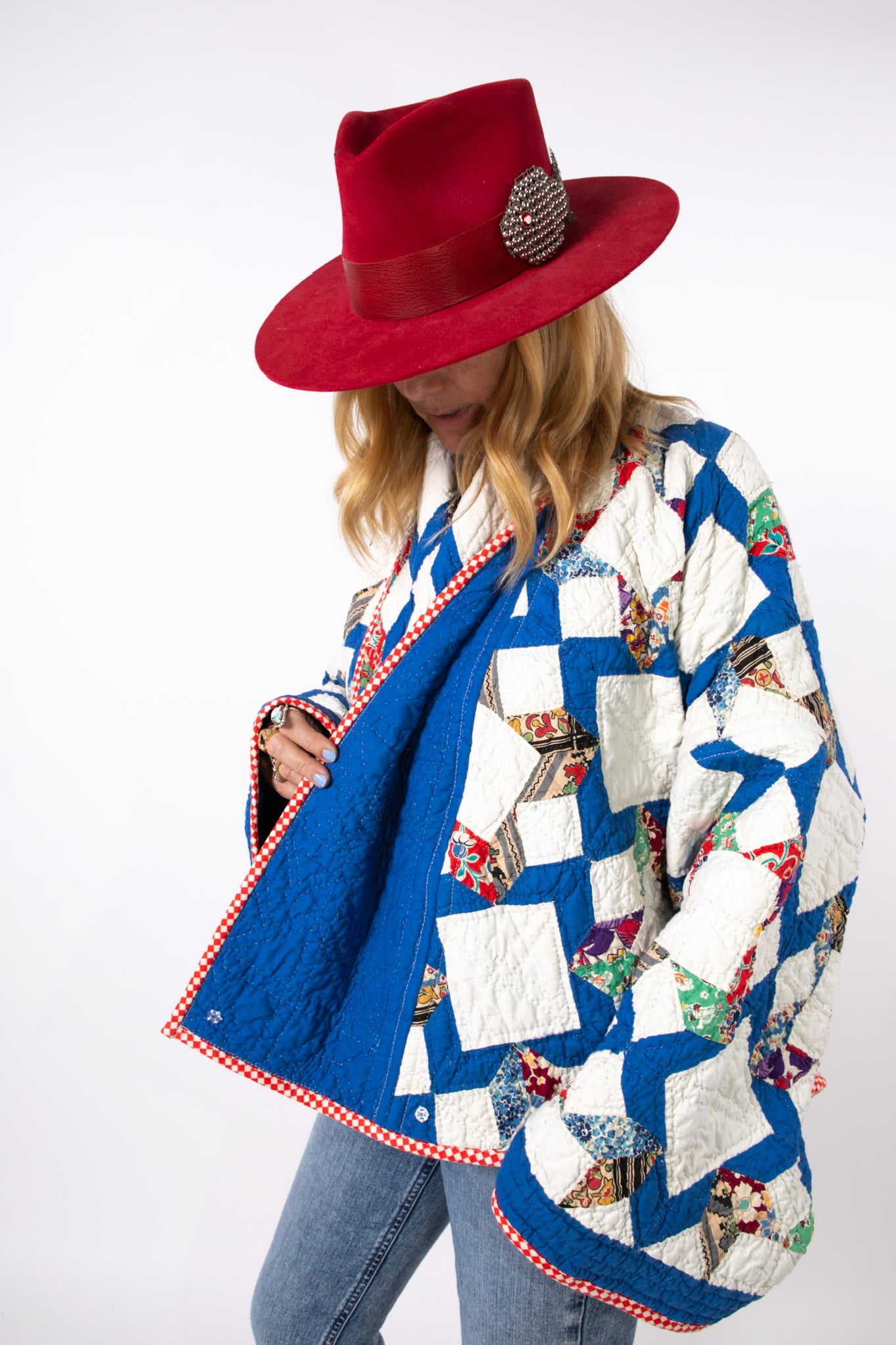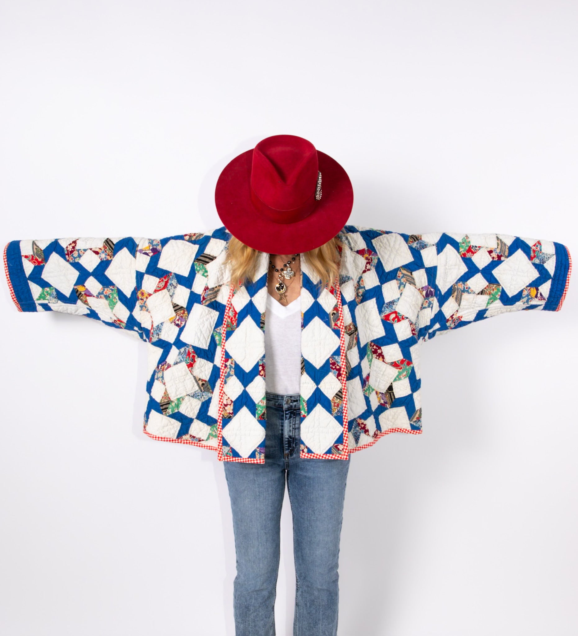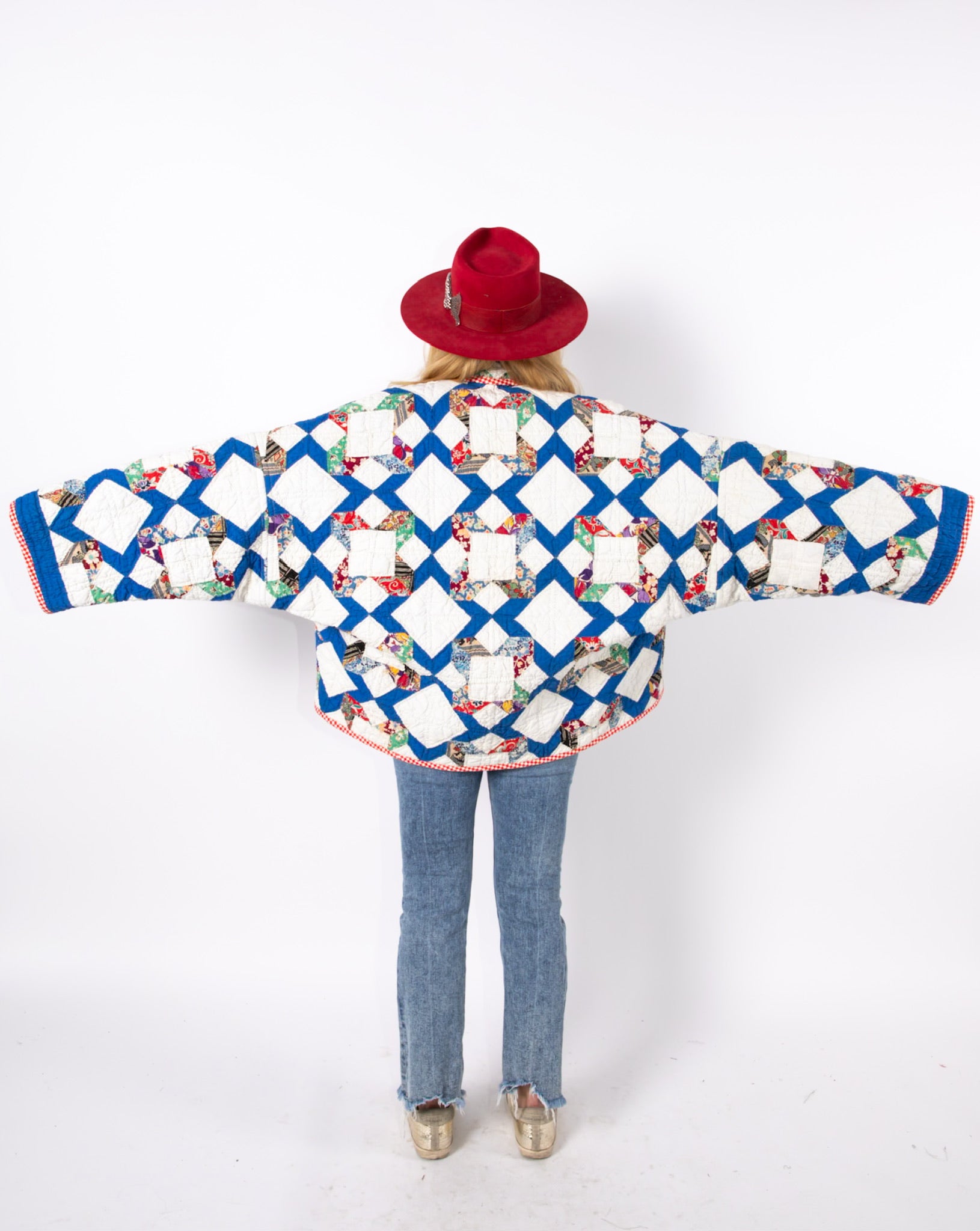 Please note that all of our jackets are made from antique quilts and the fabric reflects this. Our fabrics are sometimes older than 100 years and we believe that makes them perfectly imperfect. This is what makes them a one-of-a-kind piece of art. All of our garments are pre-washed in a special restoration quilt wash. We recommend spot cleaning if necessary.