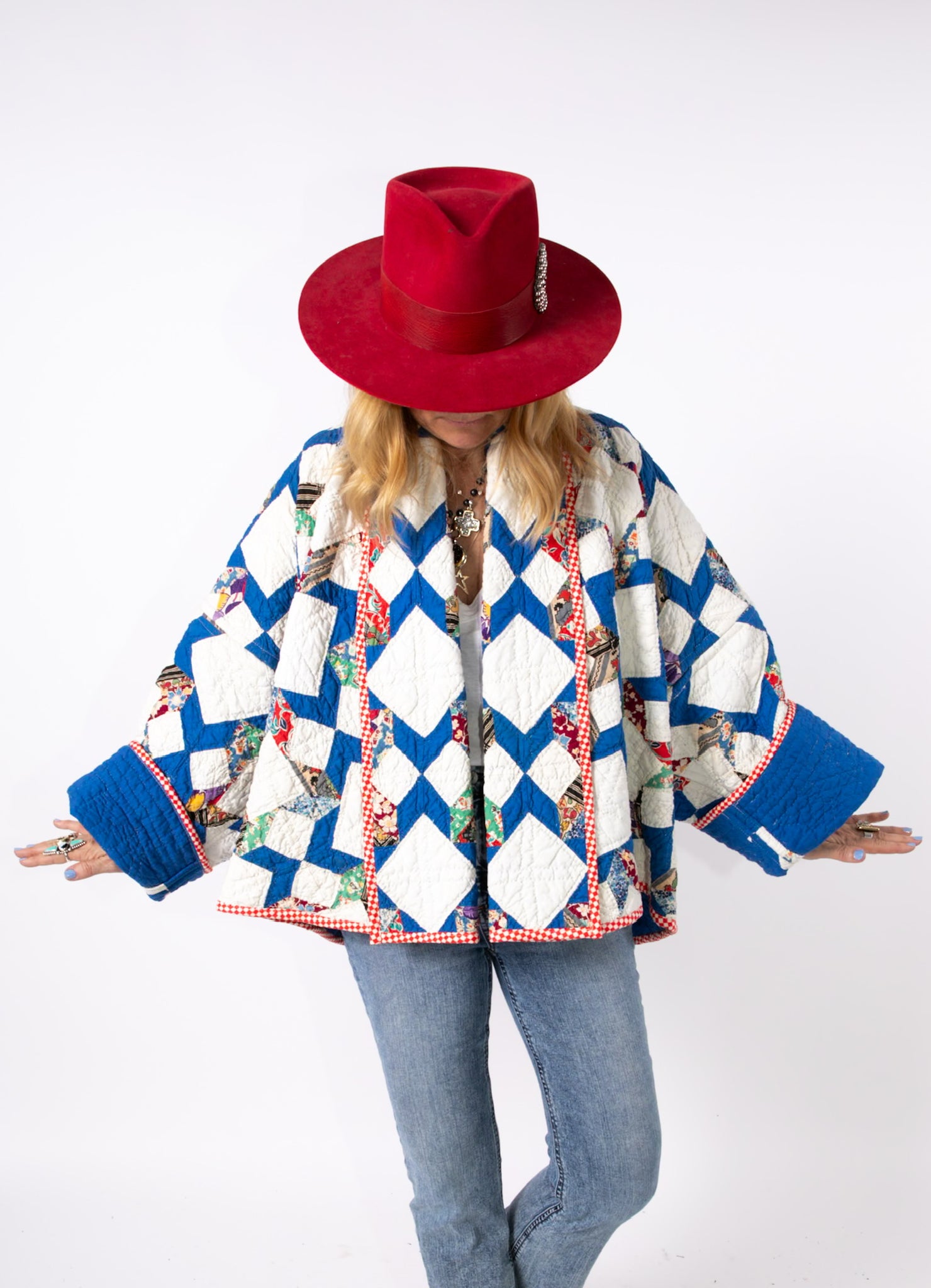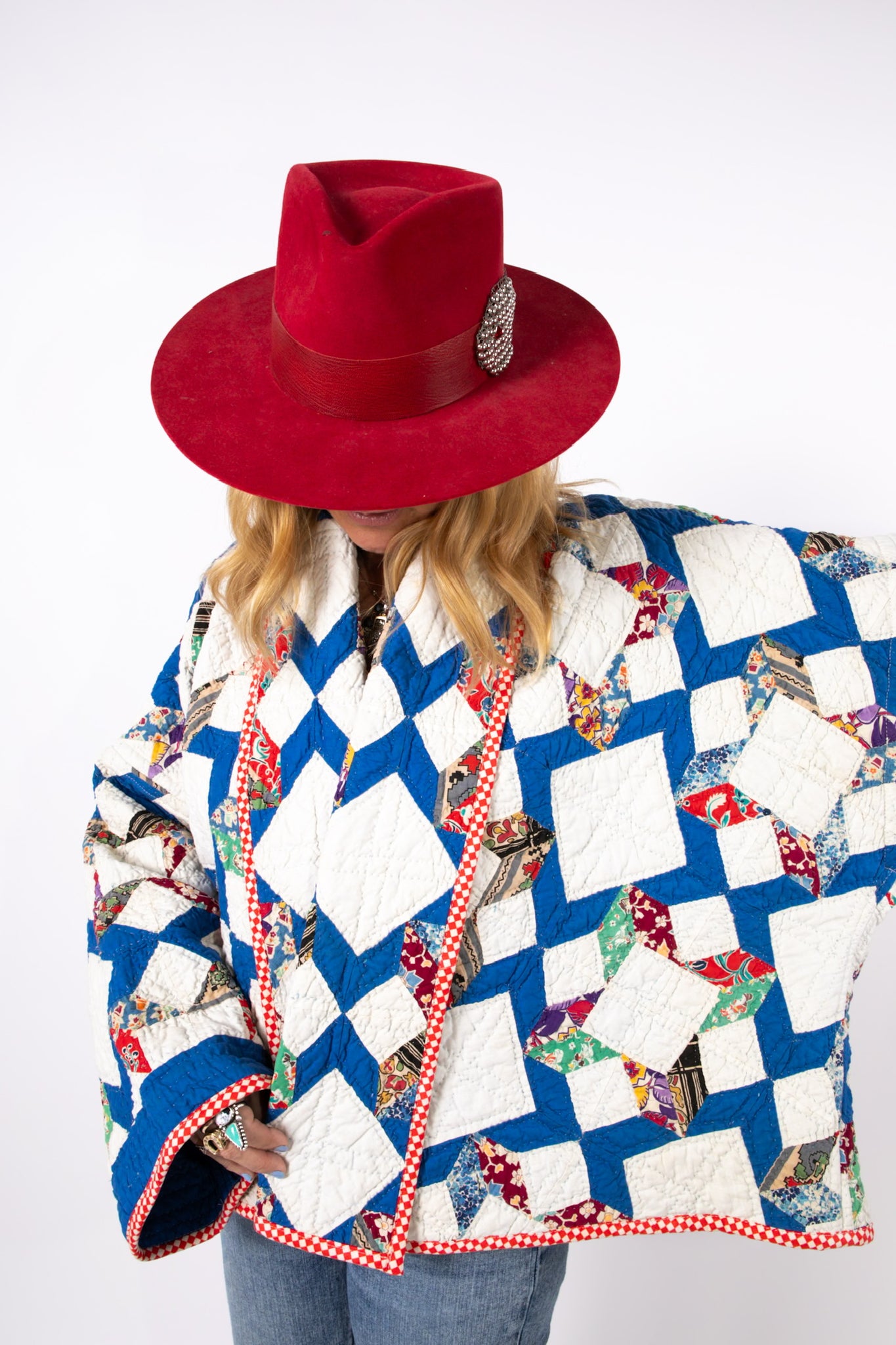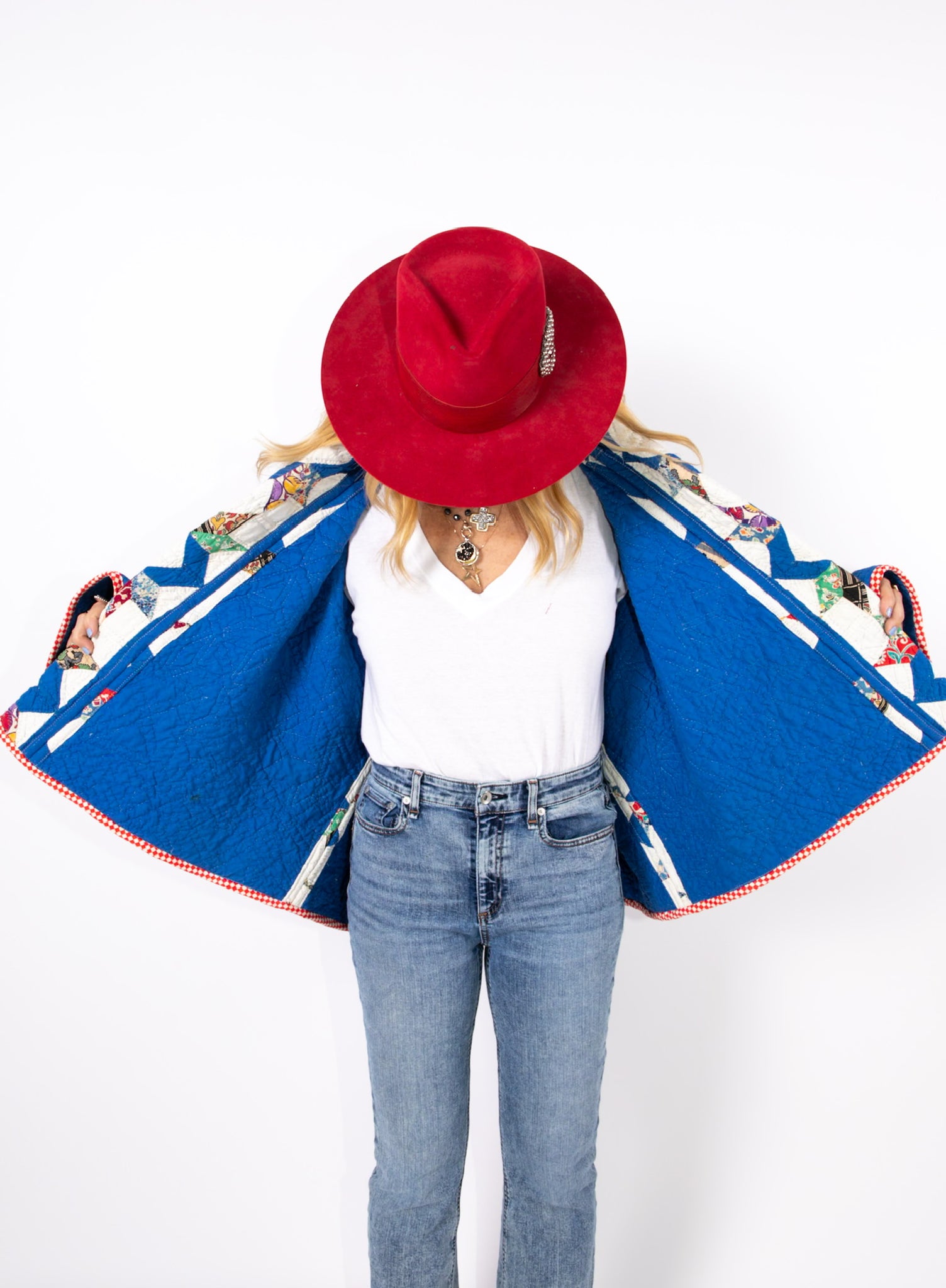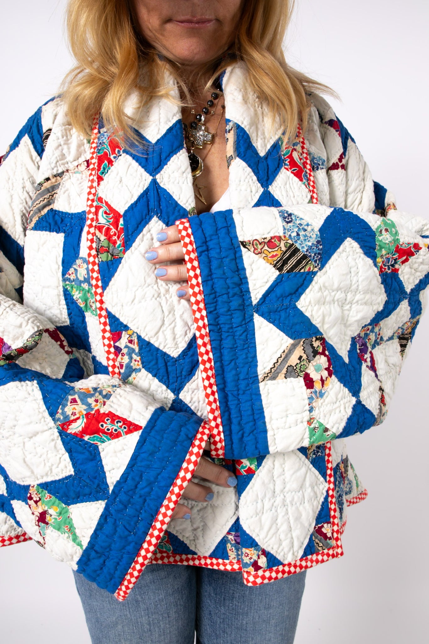 Please note that all of our jackets are made from antique quilts and the fabric reflects this. Our fabrics are sometimes older than 100 years and we believe that makes them perfectly imperfect. This is what makes them a one-of-a-kind piece of art. All of our garments are pre-washed in a special restoration quilt wash. We recommend spot cleaning if necessary.