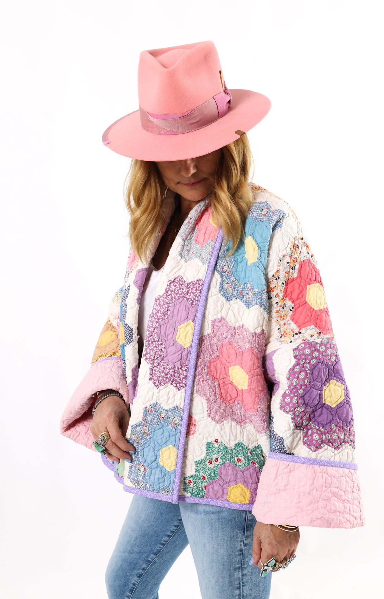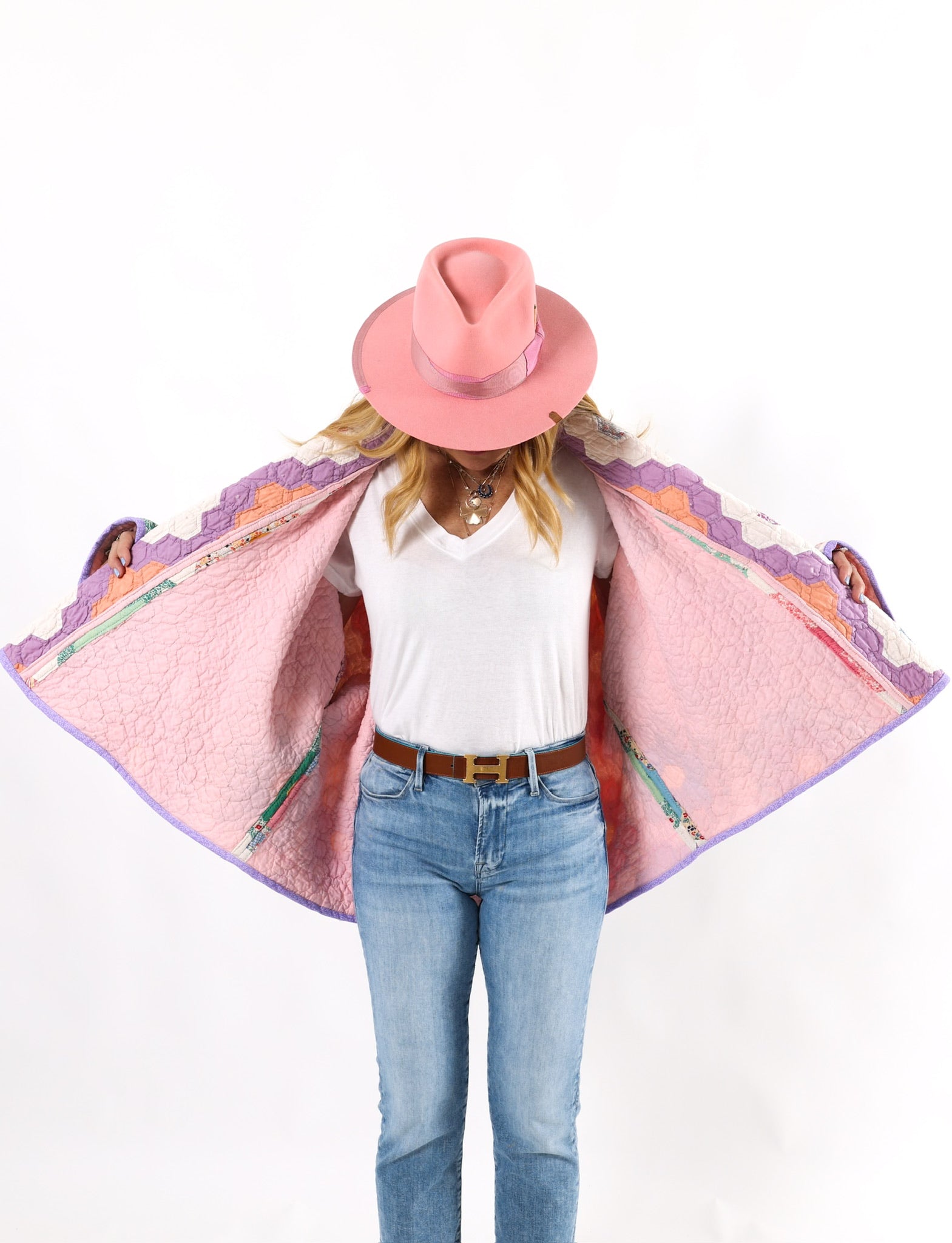 Please note that all of our jackets are made from antique quilts and the fabric reflects this. Our fabrics are sometimes older than 100 years and we believe that makes them perfectly imperfect. This is what makes them a one-of-a-kind piece of art. All of our garments are pre-washed in a special restoration quilt wash. We recommend spot cleaning if necessary.