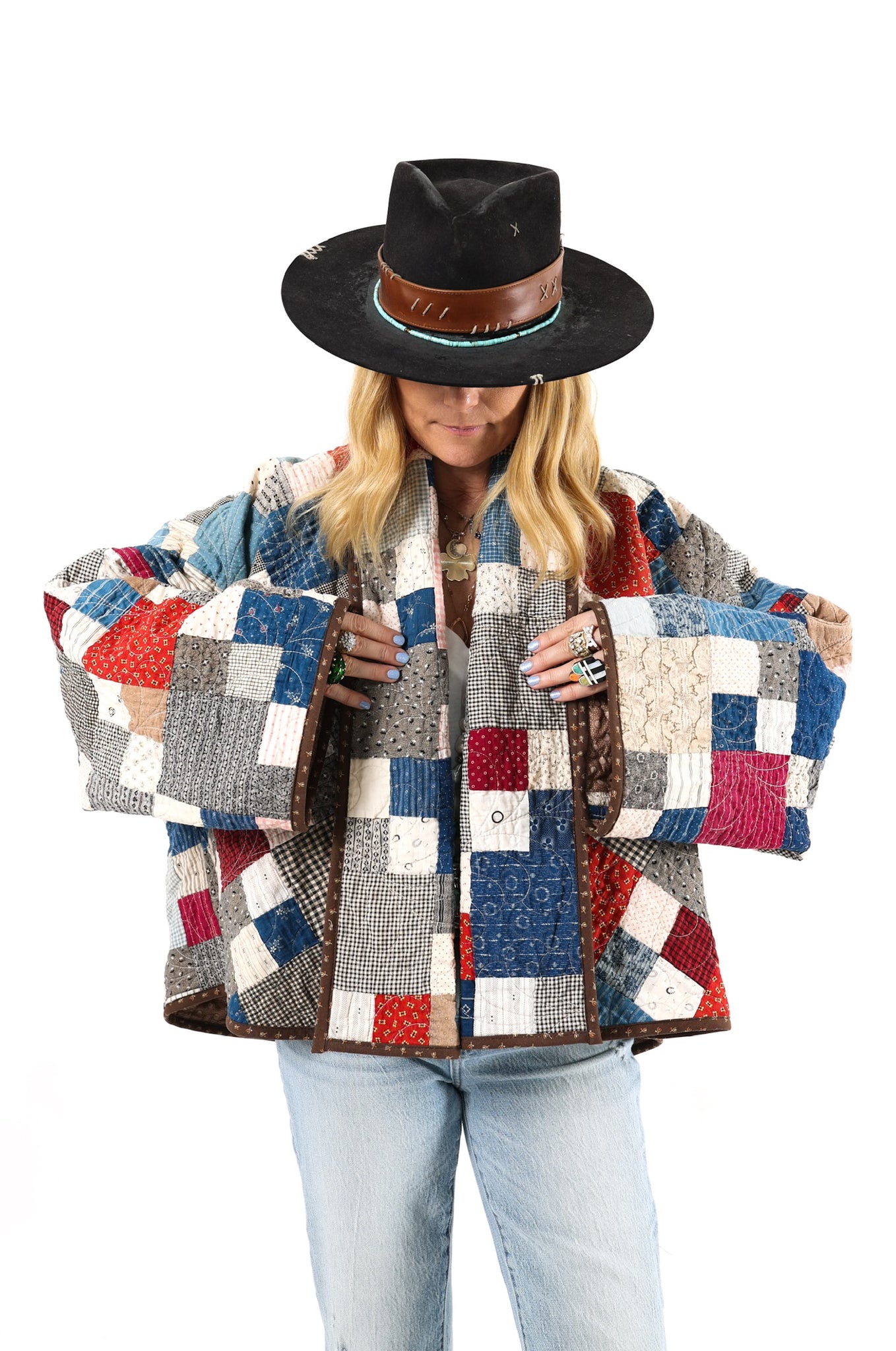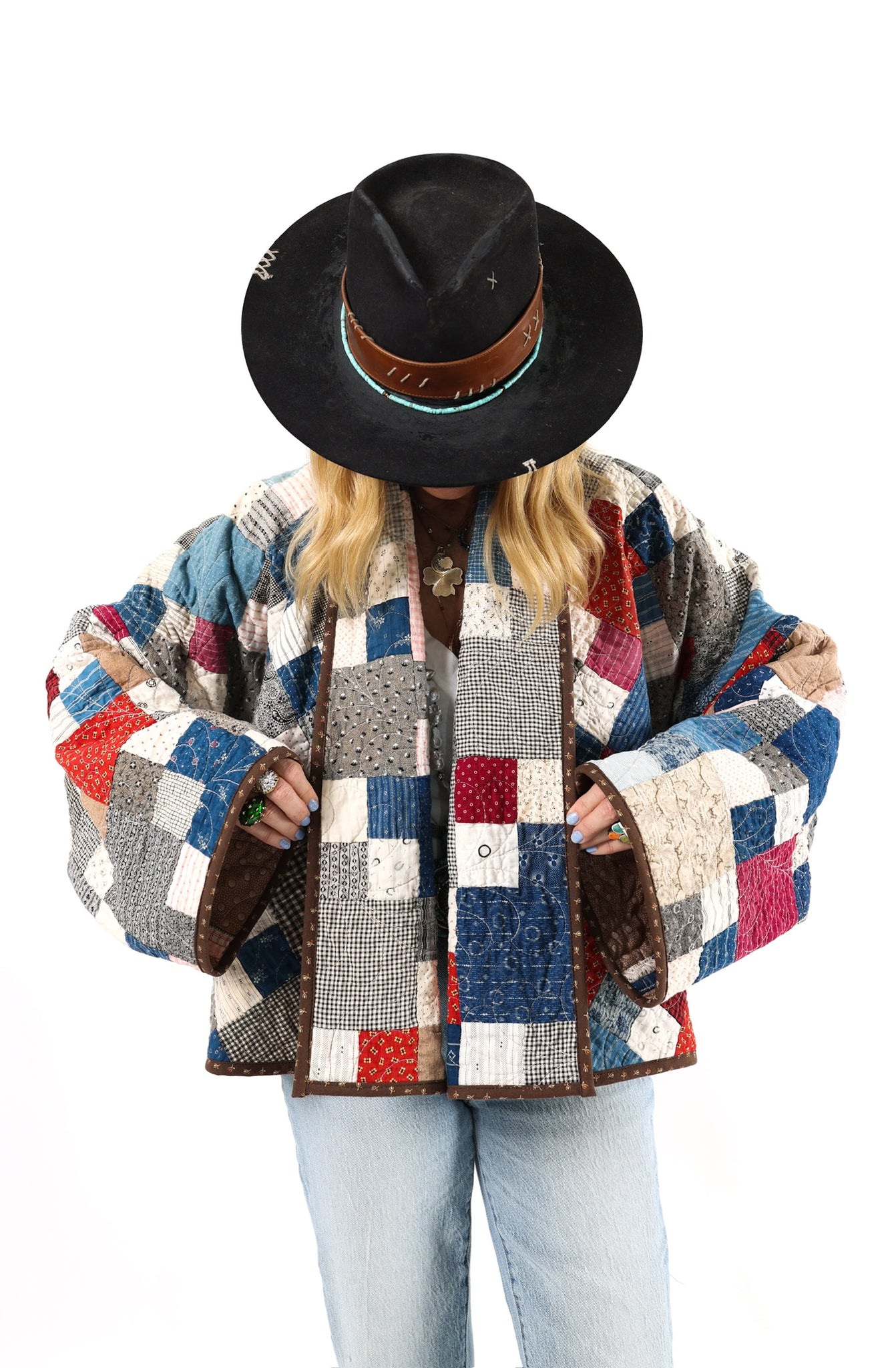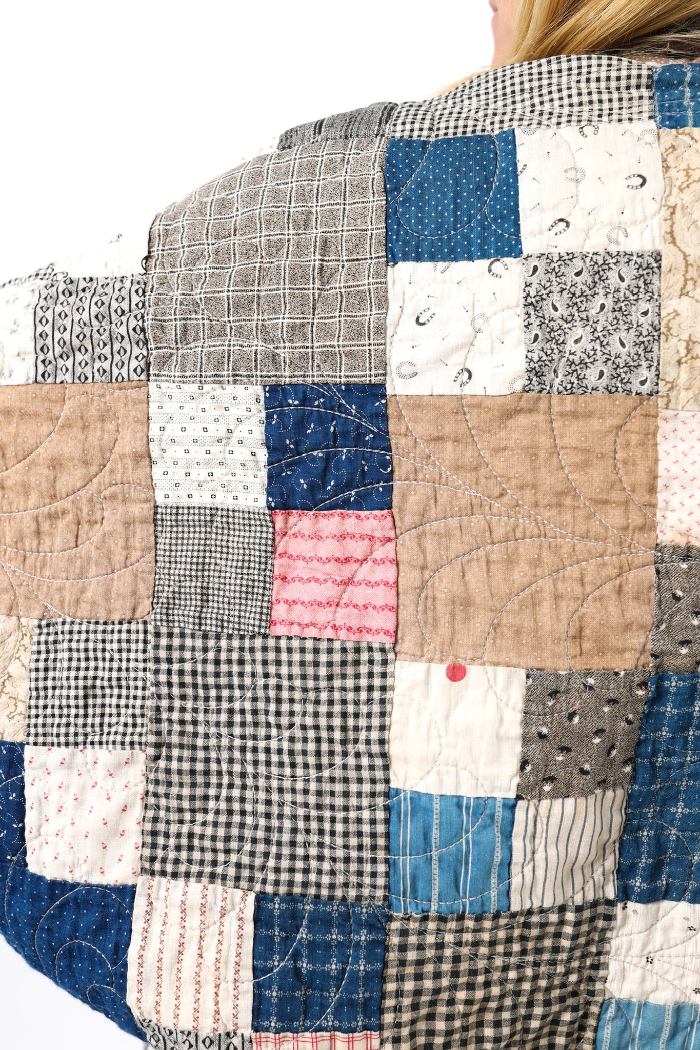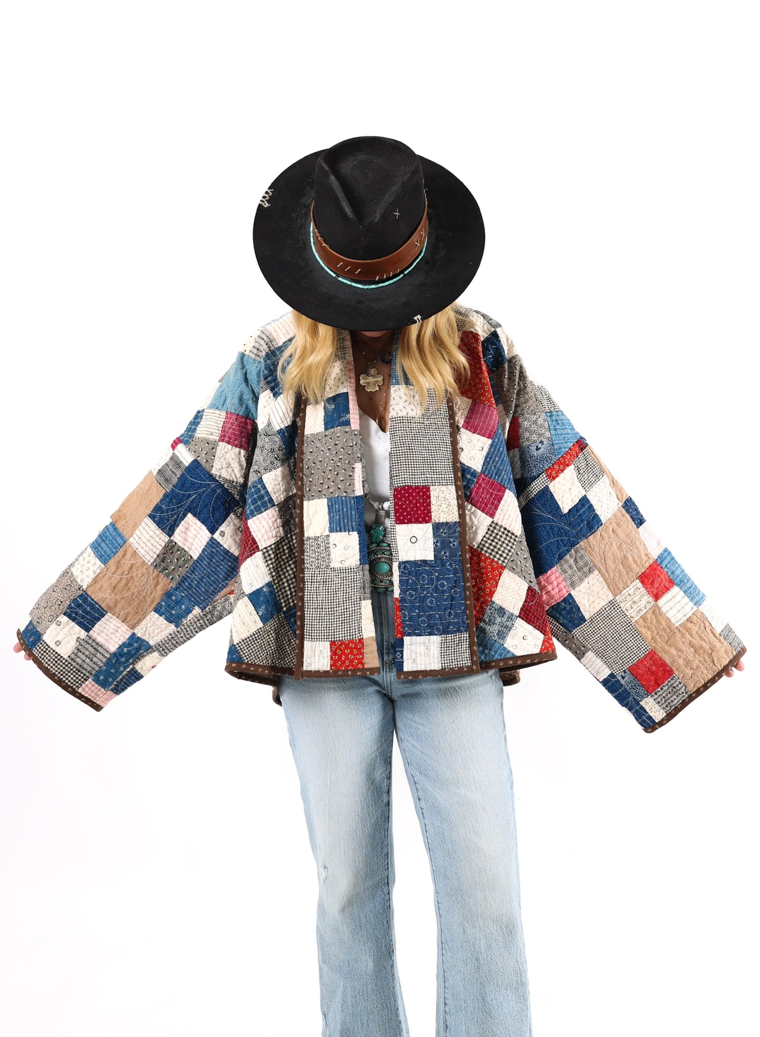 Please note that all of our jackets are made from antique quilts and the fabric reflects this. Our fabrics are sometimes older than 100 years and we believe that makes them perfectly imperfect. This is what makes them a one-of-a-kind piece of art. All of our garments are pre-washed in a special restoration quilt wash. We recommend spot cleaning if necessary.