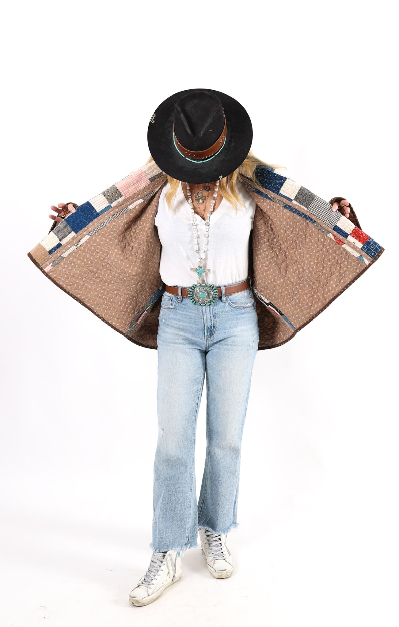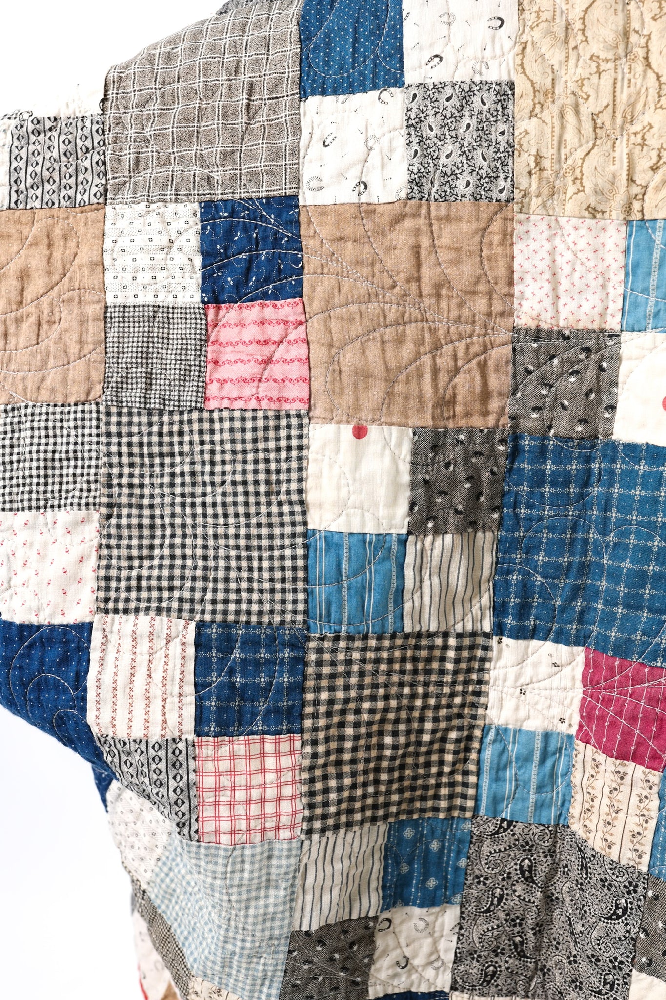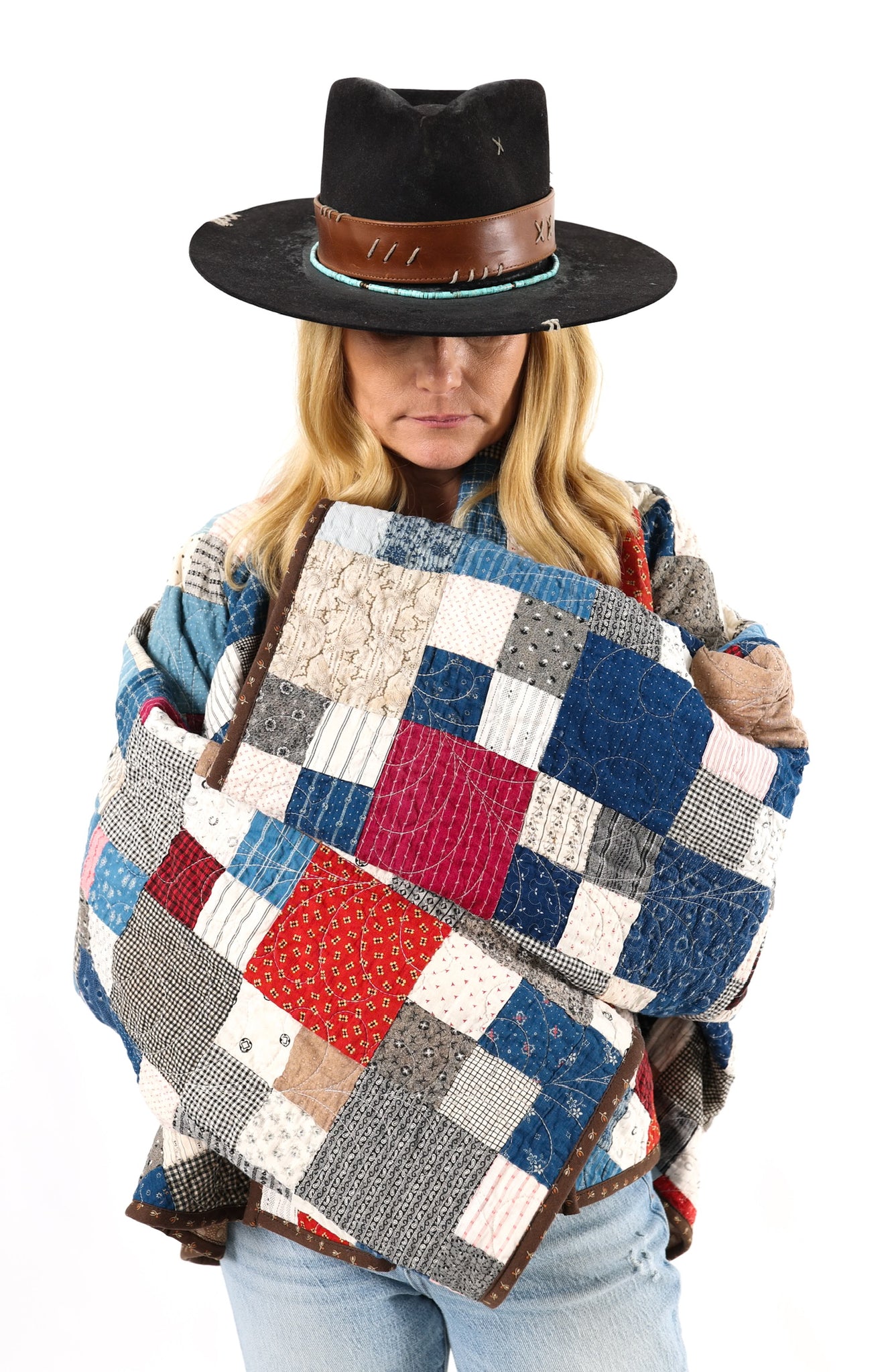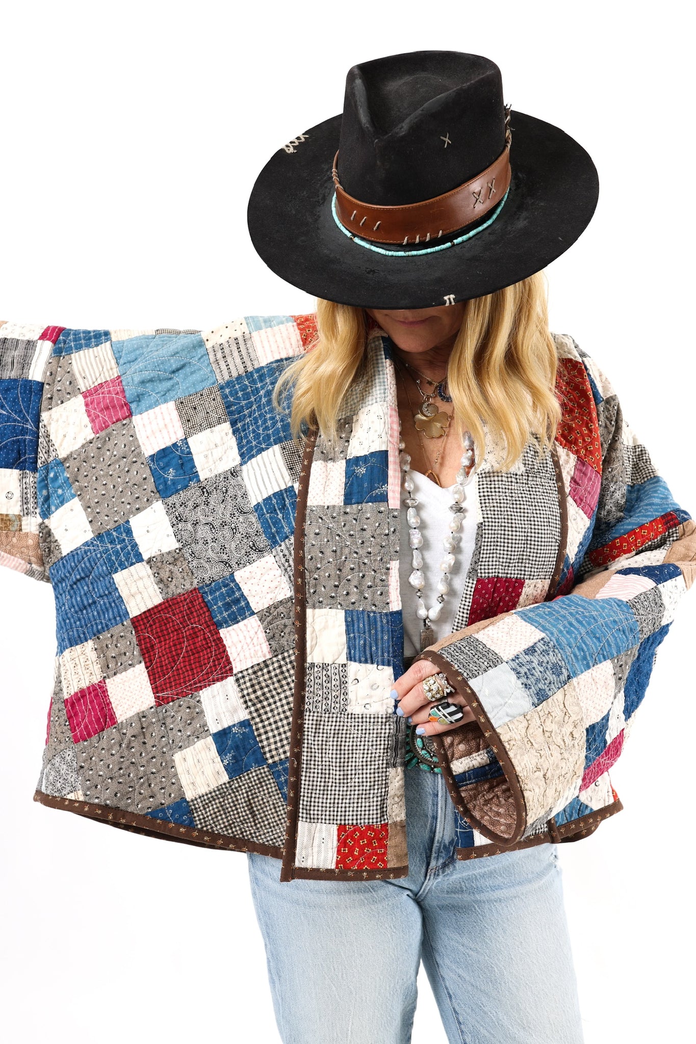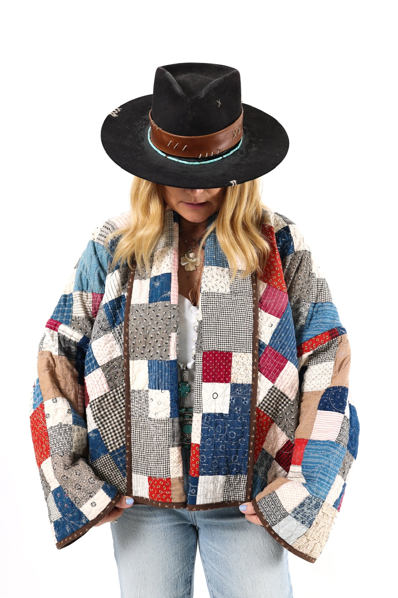 Please note that all of our jackets are made from antique quilts and the fabric reflects this. Our fabrics are sometimes older than 100 years and we believe that makes them perfectly imperfect. This is what makes them a one-of-a-kind piece of art. All of our garments are pre-washed in a special restoration quilt wash. We recommend spot cleaning if necessary.