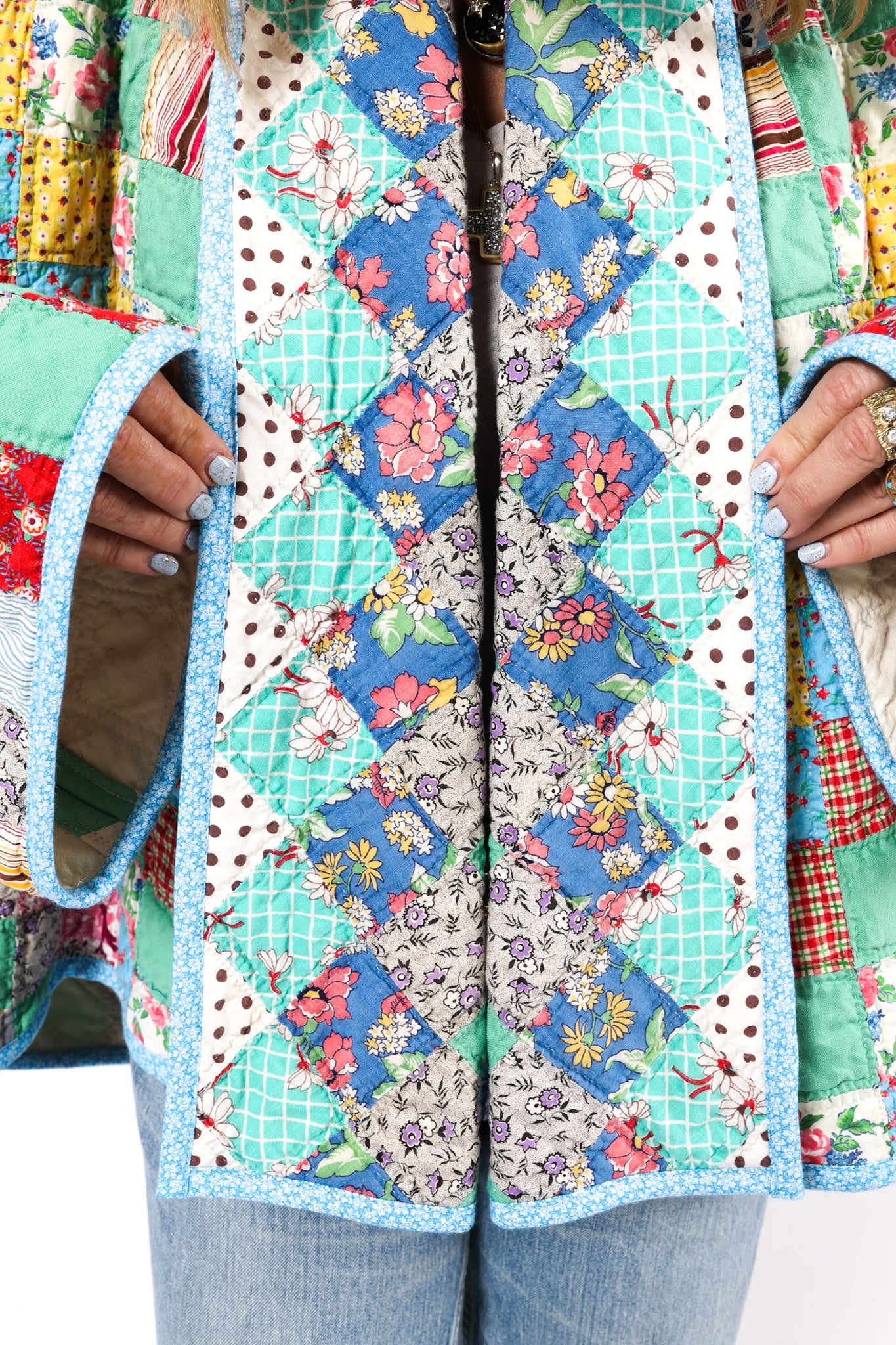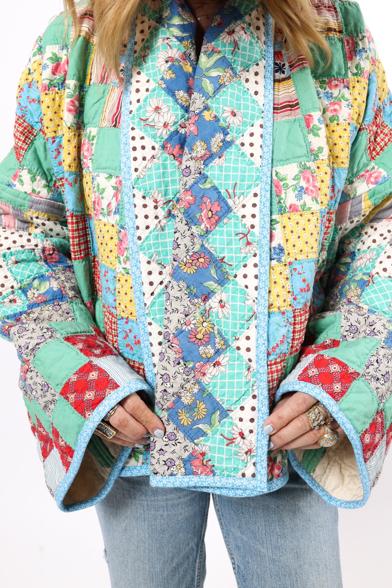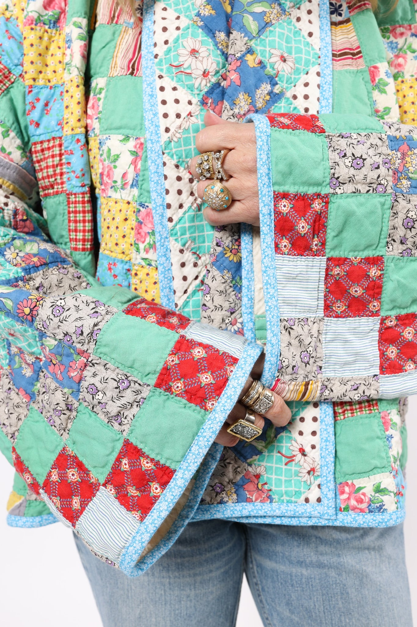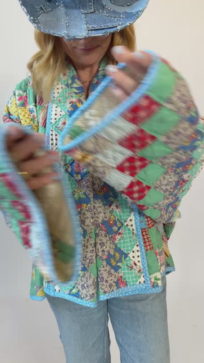 Please note that most of our jackets are made from antique quilts and the fabrics reflect this. Some fabrics can be older than 100 years and we believe that makes them perfectly imperfect. This is what makes them a one-of-a-kind piece of art. All of our garments are pre-washed in a special restoration quilt wash. We recommend spot cleaning if necessary.