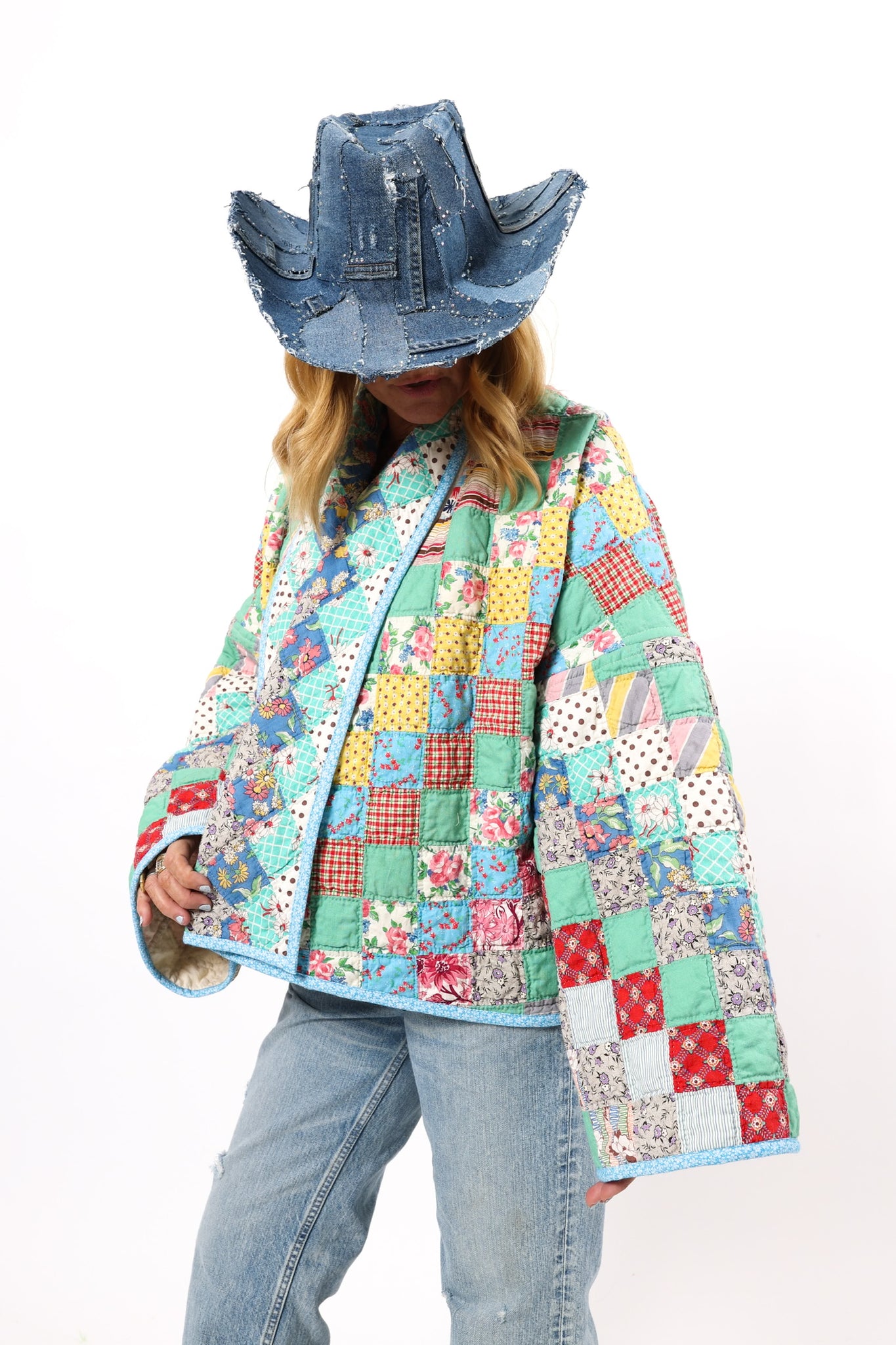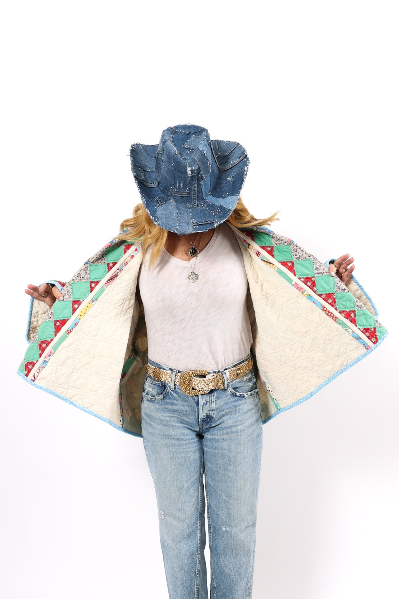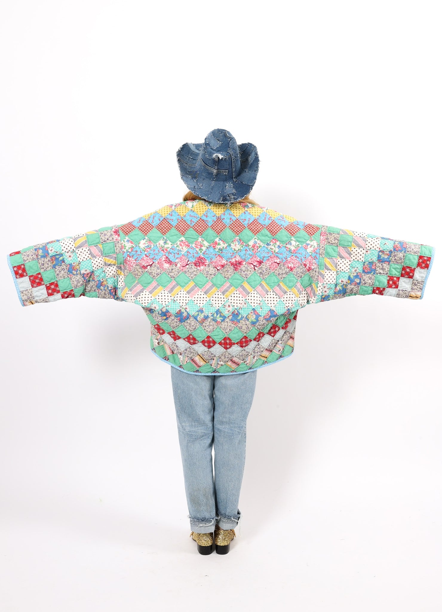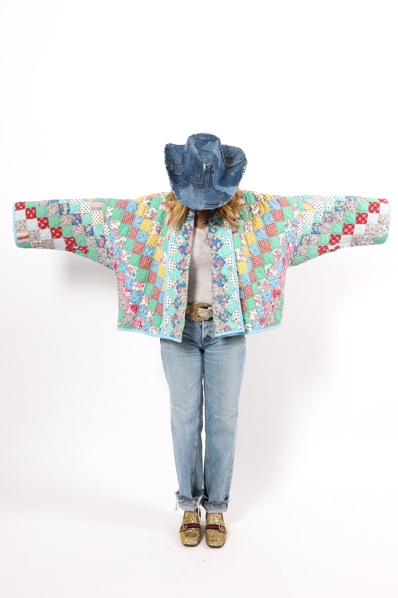 Please note that most of our jackets are made from antique quilts and the fabrics reflect this. Some fabrics can be older than 100 years and we believe that makes them perfectly imperfect. This is what makes them a one-of-a-kind piece of art. All of our garments are pre-washed in a special restoration quilt wash. We recommend spot cleaning if necessary.