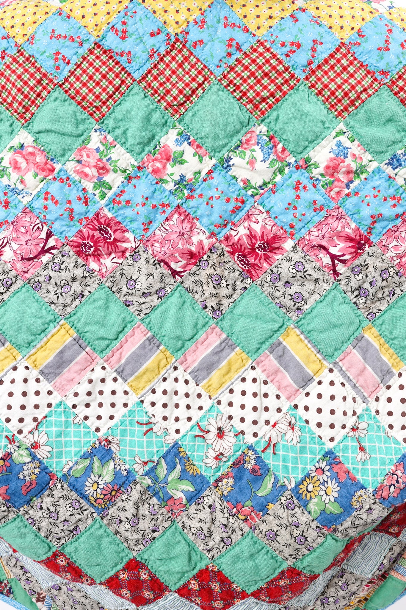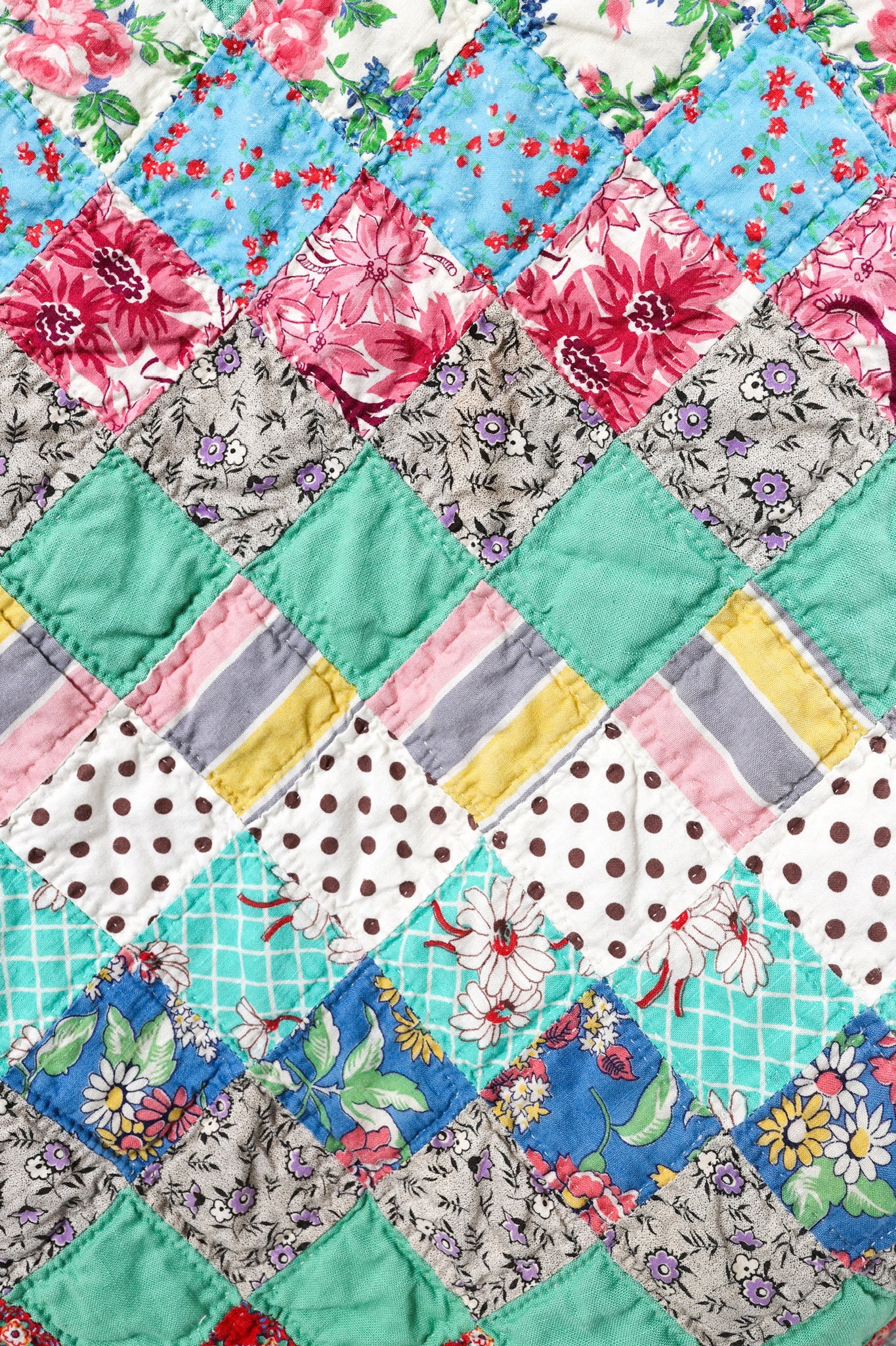 This is an antique American quilt made circa 1930s to 1950s. It is a traditional Trip Around the World quilt pattern. The quilt has been hand quilted and hand sewn which is a labor of love and a lost art! The quilt is filled with beautiful novelty fabrics. The maker backed this quilt with a cotton muslin fabric. In our opinion, the jacket is very thin, very soft, made with luxe cotton, and drapes beautifully. This piece has very little loft (puffiness). The quilt is in great condition! If you have further questions, please direct message us and we are happy to send you a video.