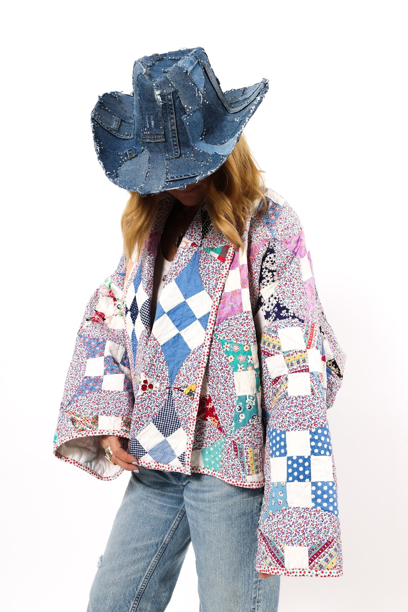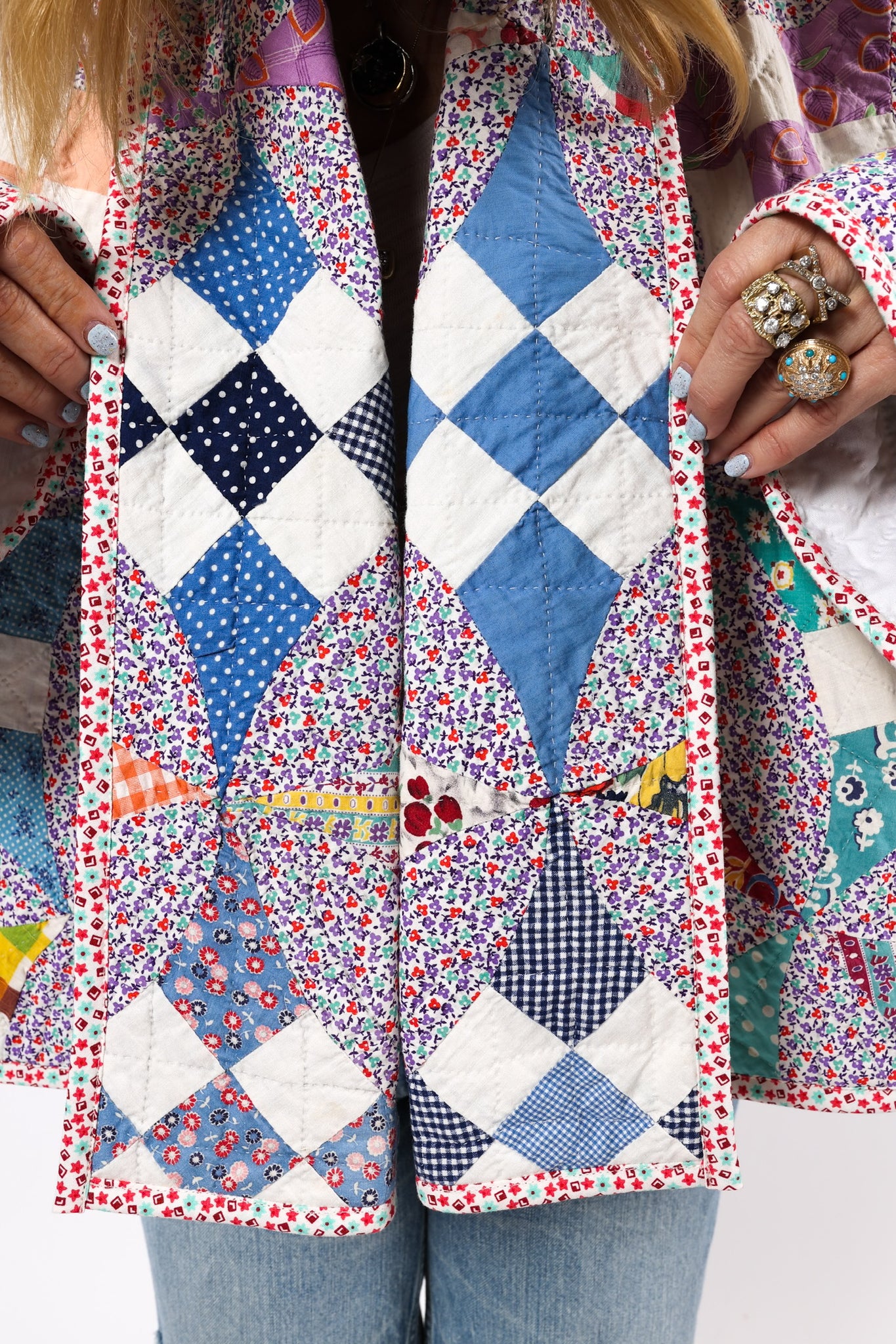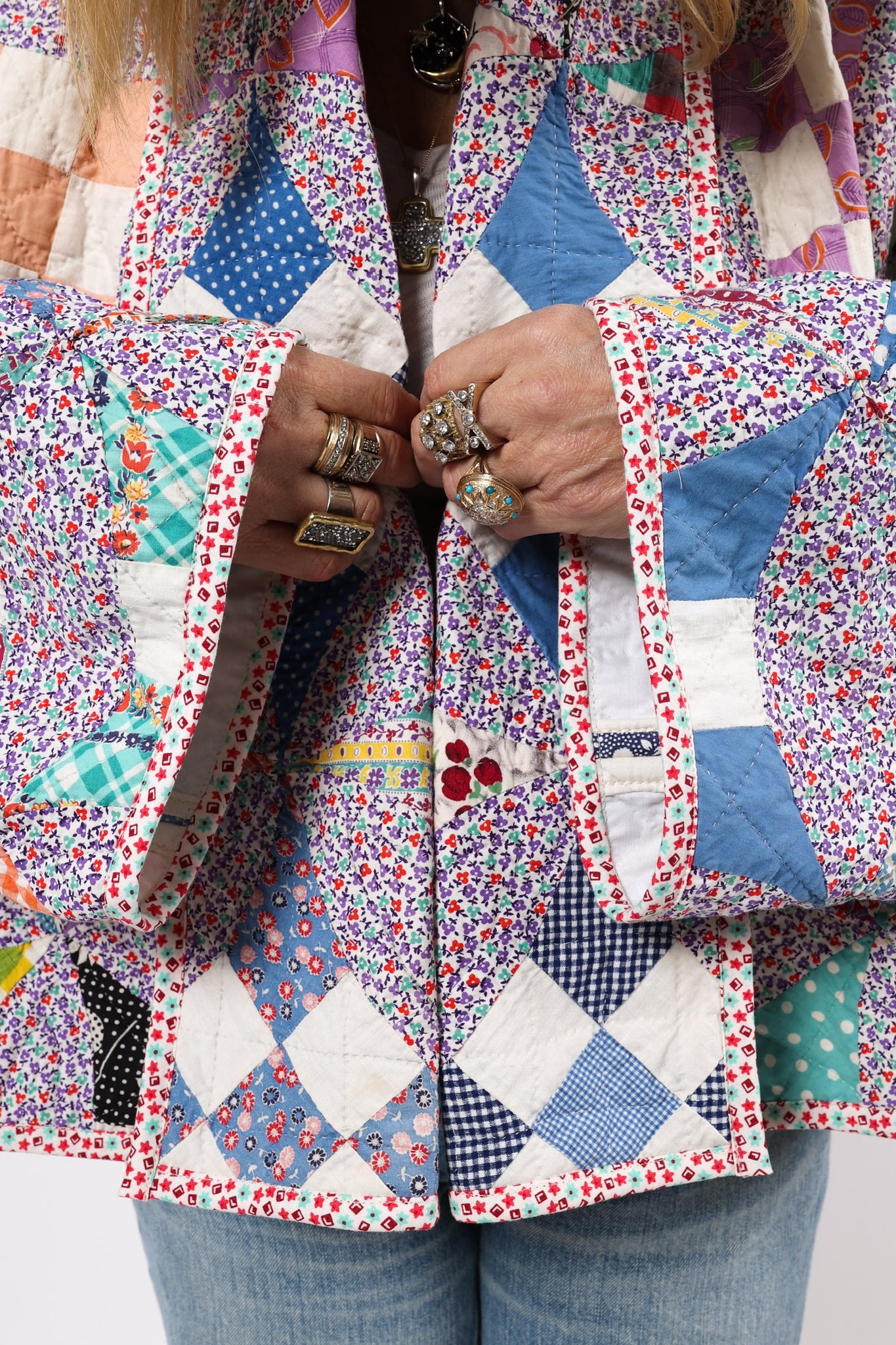 Please note that most of our jackets are made from antique quilts and the fabrics reflect this. Some fabrics can be older than 100 years and we believe that makes them perfectly imperfect. This is what makes them a one-of-a-kind piece of art. All of our garments are pre-washed in a special restoration quilt wash. We recommend spot cleaning if necessary.