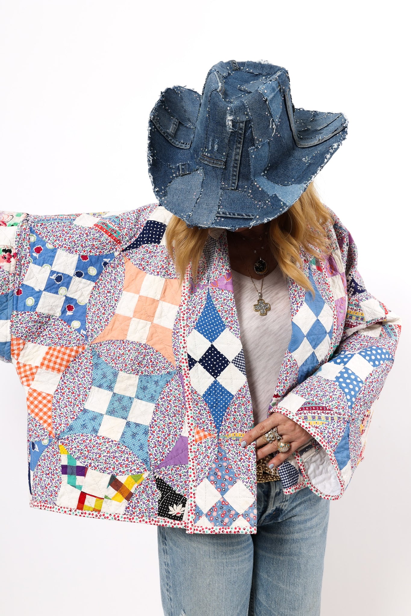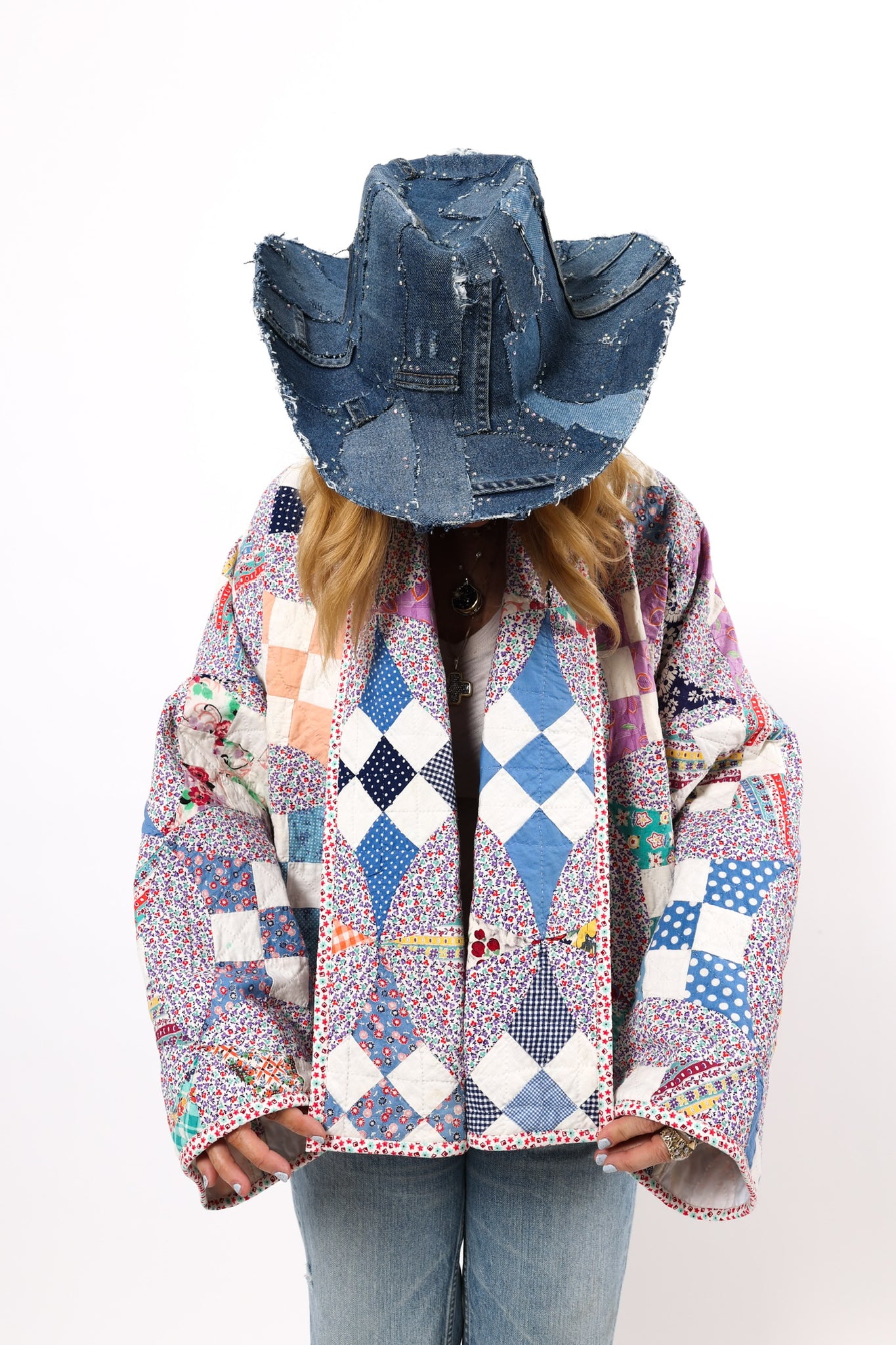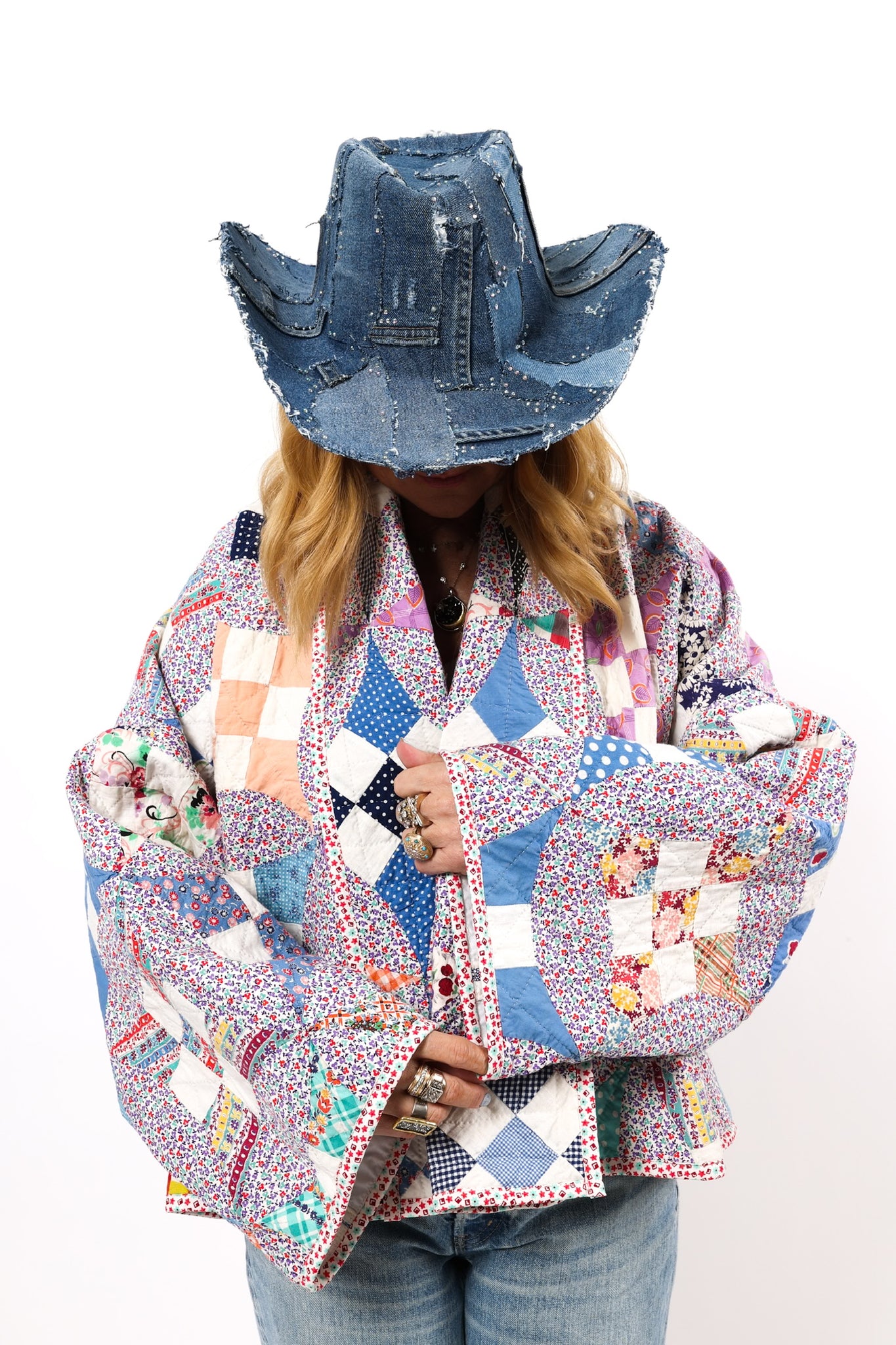 Please note that most of our jackets are made from antique quilts and the fabrics reflect this. Some fabrics can be older than 100 years and we believe that makes them perfectly imperfect. This is what makes them a one-of-a-kind piece of art. All of our garments are pre-washed in a special restoration quilt wash. We recommend spot cleaning if necessary.
