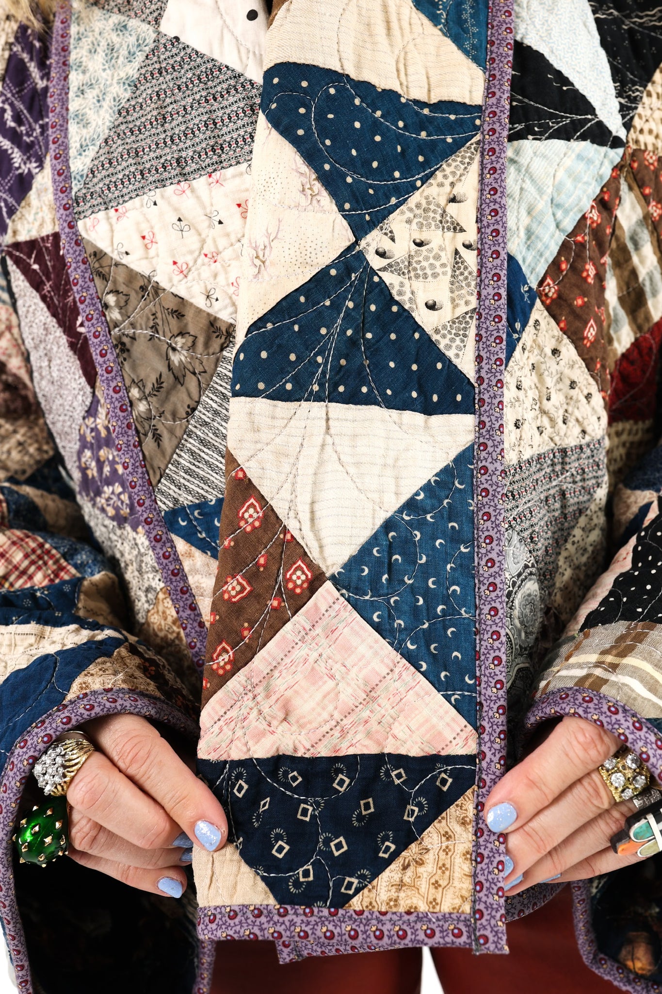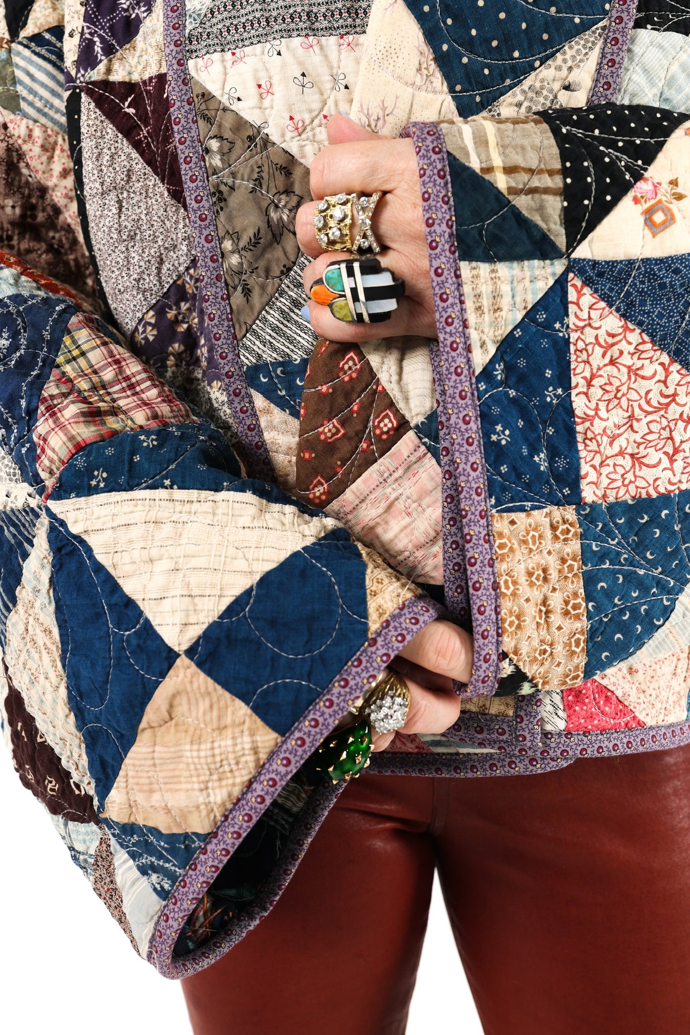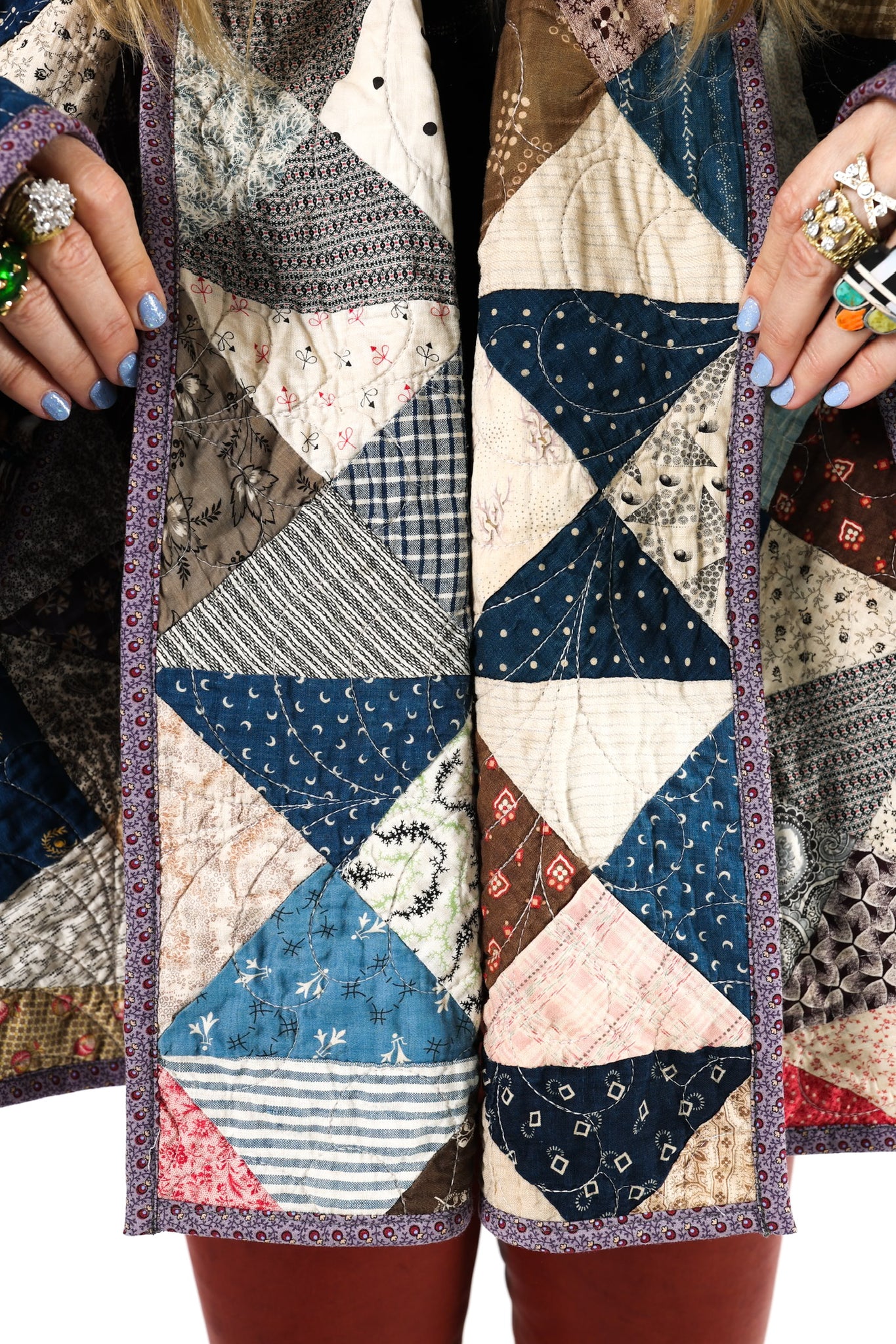 Please note that all of our jackets are made from antique quilts and the fabric reflects this. Our fabrics are sometimes older than 100 years and we believe that makes them perfectly imperfect. This is what makes them a one-of-a-kind piece of art. All of our garments are pre-washed in a special restoration quilt wash. We recommend spot cleaning if necessary.