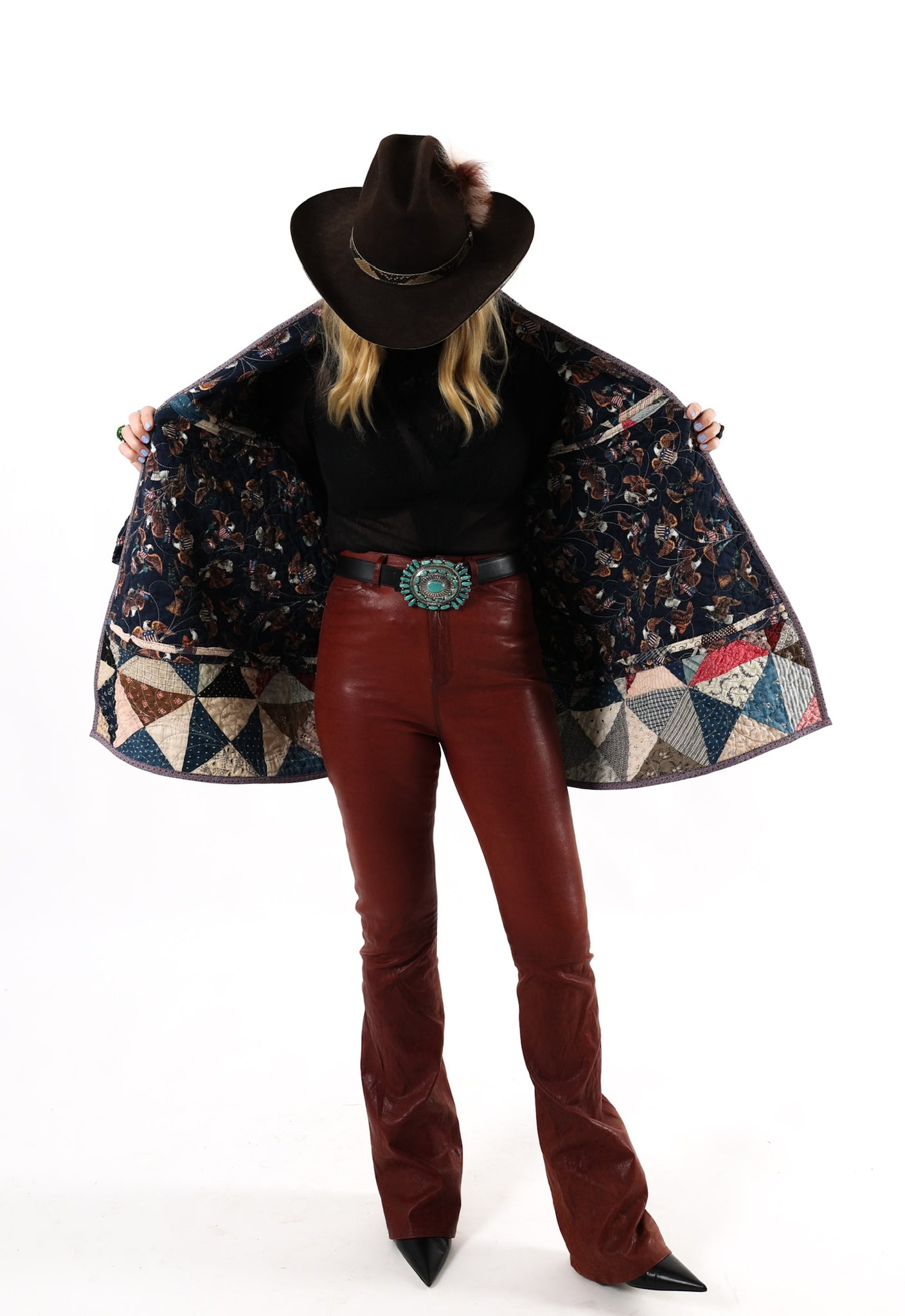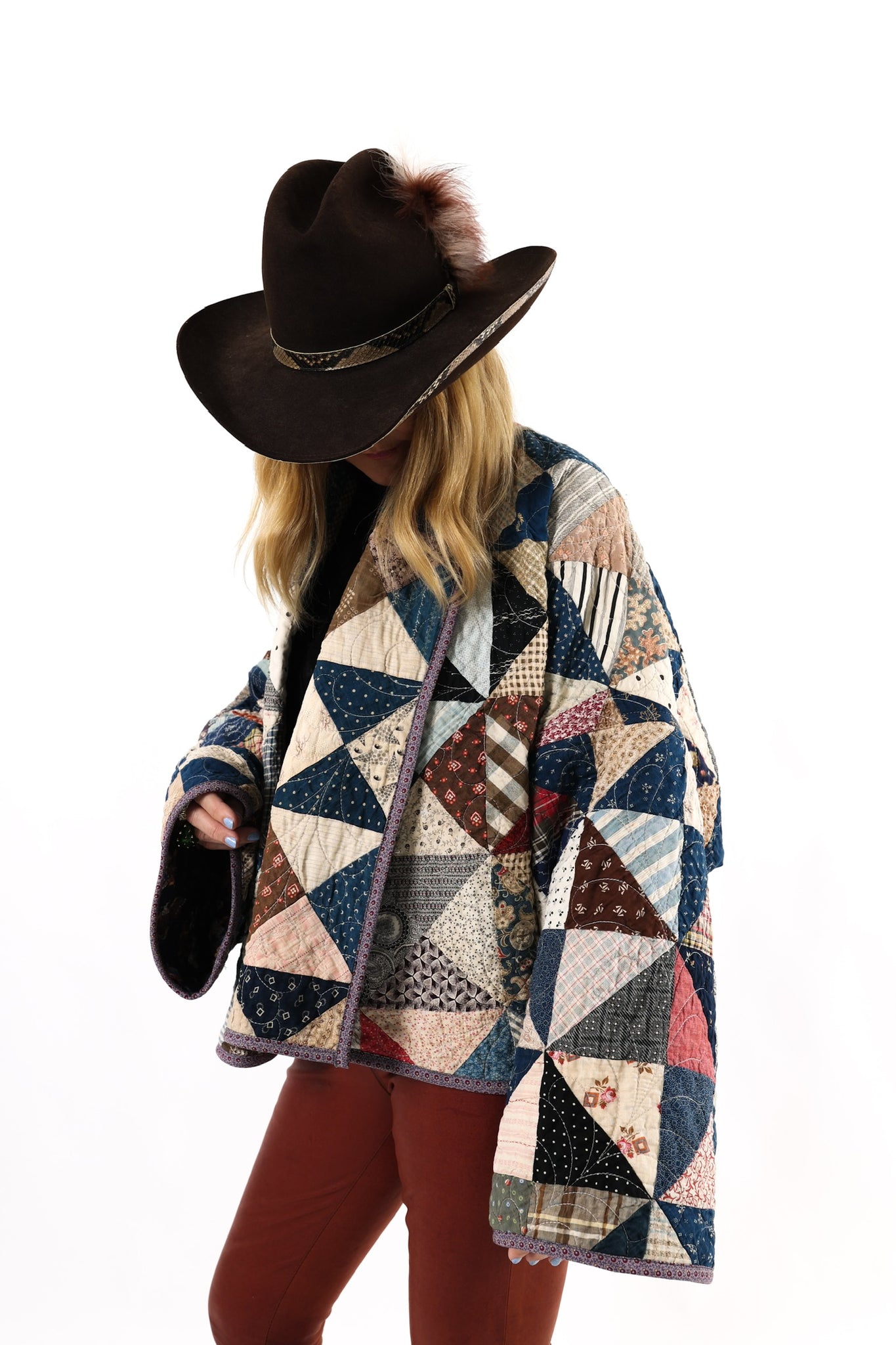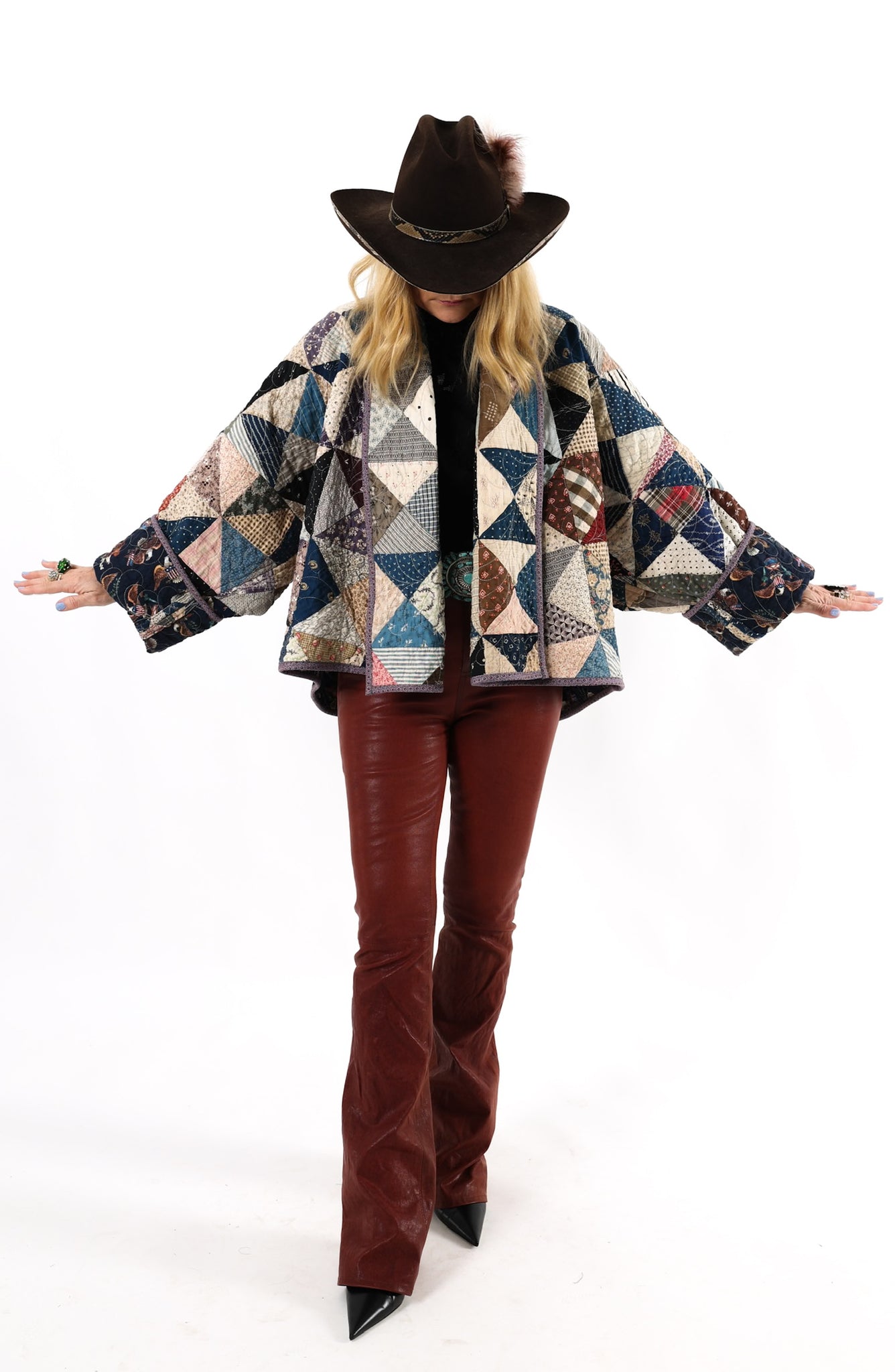 Please note that all of our jackets are made from antique quilts and the fabric reflects this. Our fabrics are sometimes older than 100 years and we believe that makes them perfectly imperfect. This is what makes them a one-of-a-kind piece of art. All of our garments are pre-washed in a special restoration quilt wash. We recommend spot cleaning if necessary.