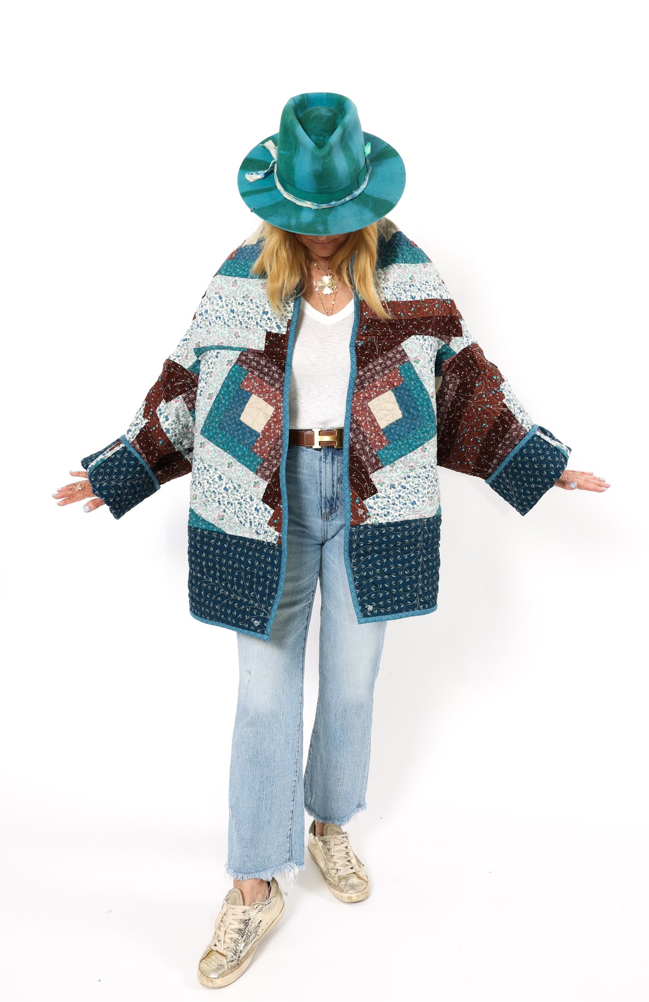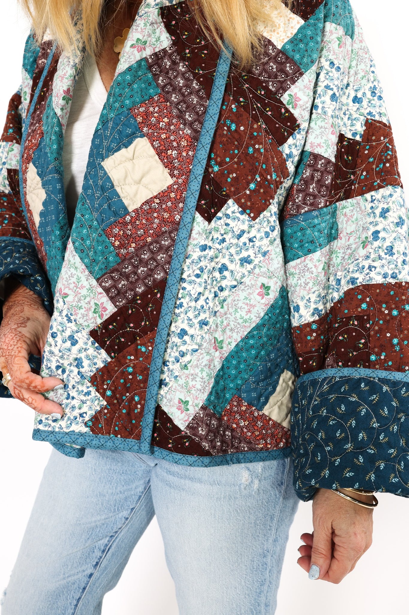 Please note that most of our jackets are made from antique quilts and the fabrics reflect this. Some fabrics can be older than 100 years and we believe that makes them perfectly imperfect. This is what makes them a one-of-a-kind piece of art. All of our garments are pre-washed in a special restoration quilt wash. We recommend spot cleaning if necessary.