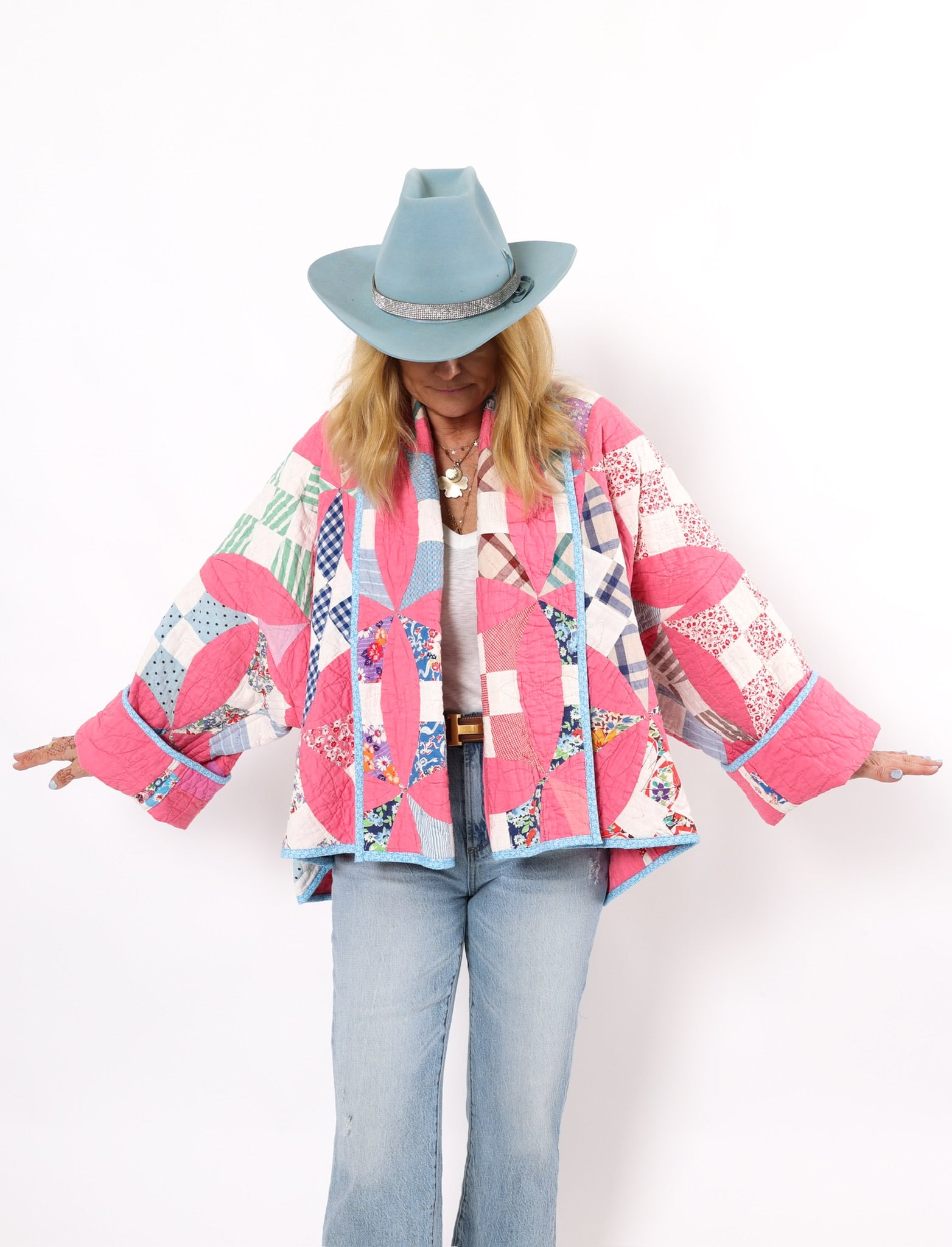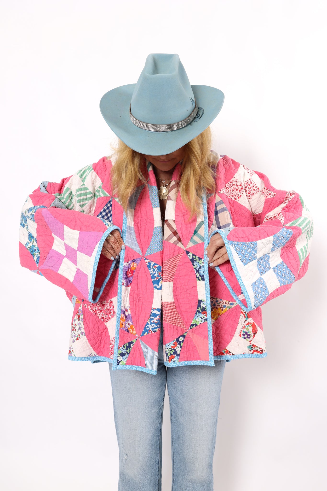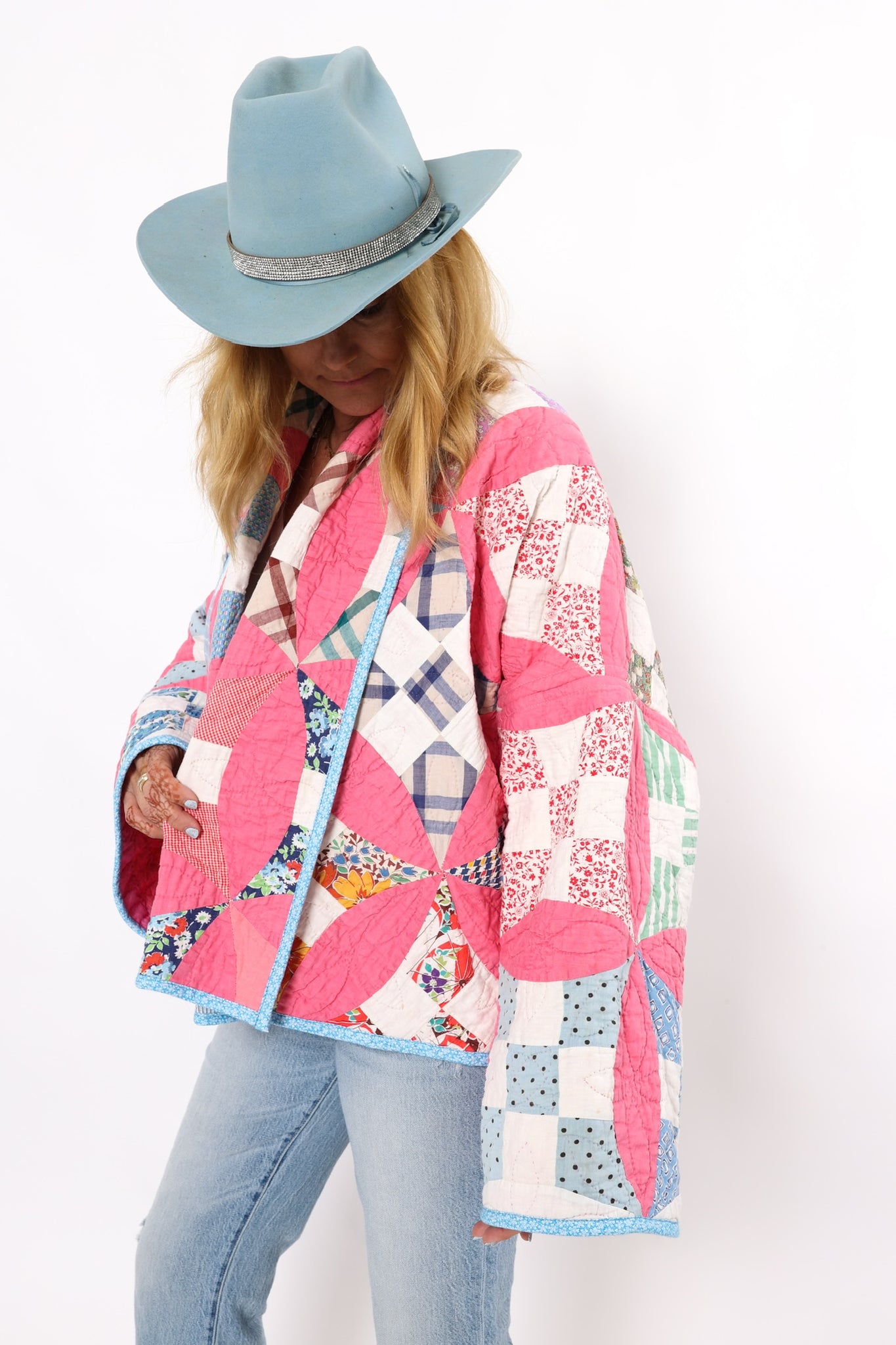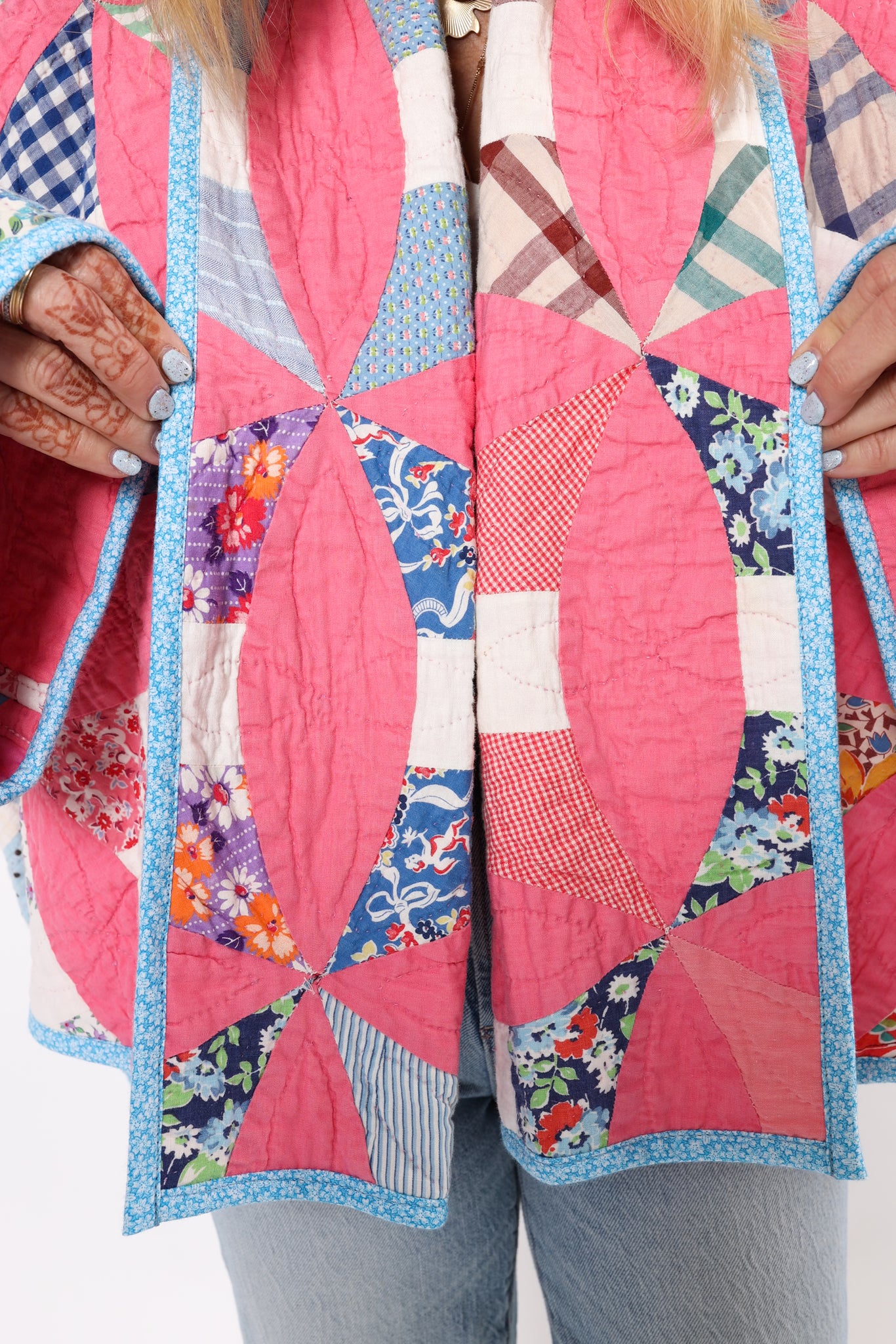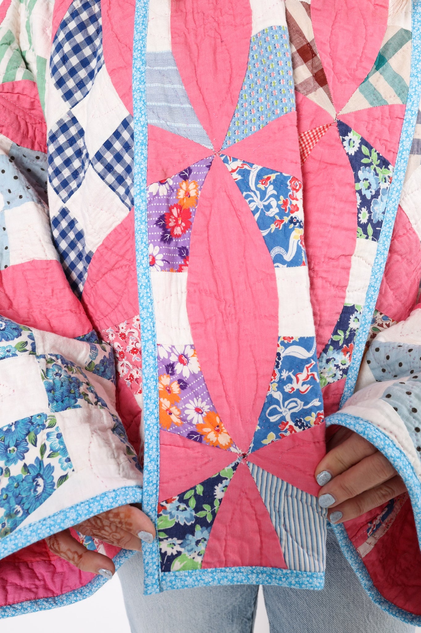 Please note that most of our jackets are made from antique quilts and the fabrics reflect this. Some fabrics can be older than 100 years and we believe that makes them perfectly imperfect. This is what makes them a one-of-a-kind piece of art. All of our garments are pre-washed in a special restoration quilt wash. We recommend spot cleaning if necessary.