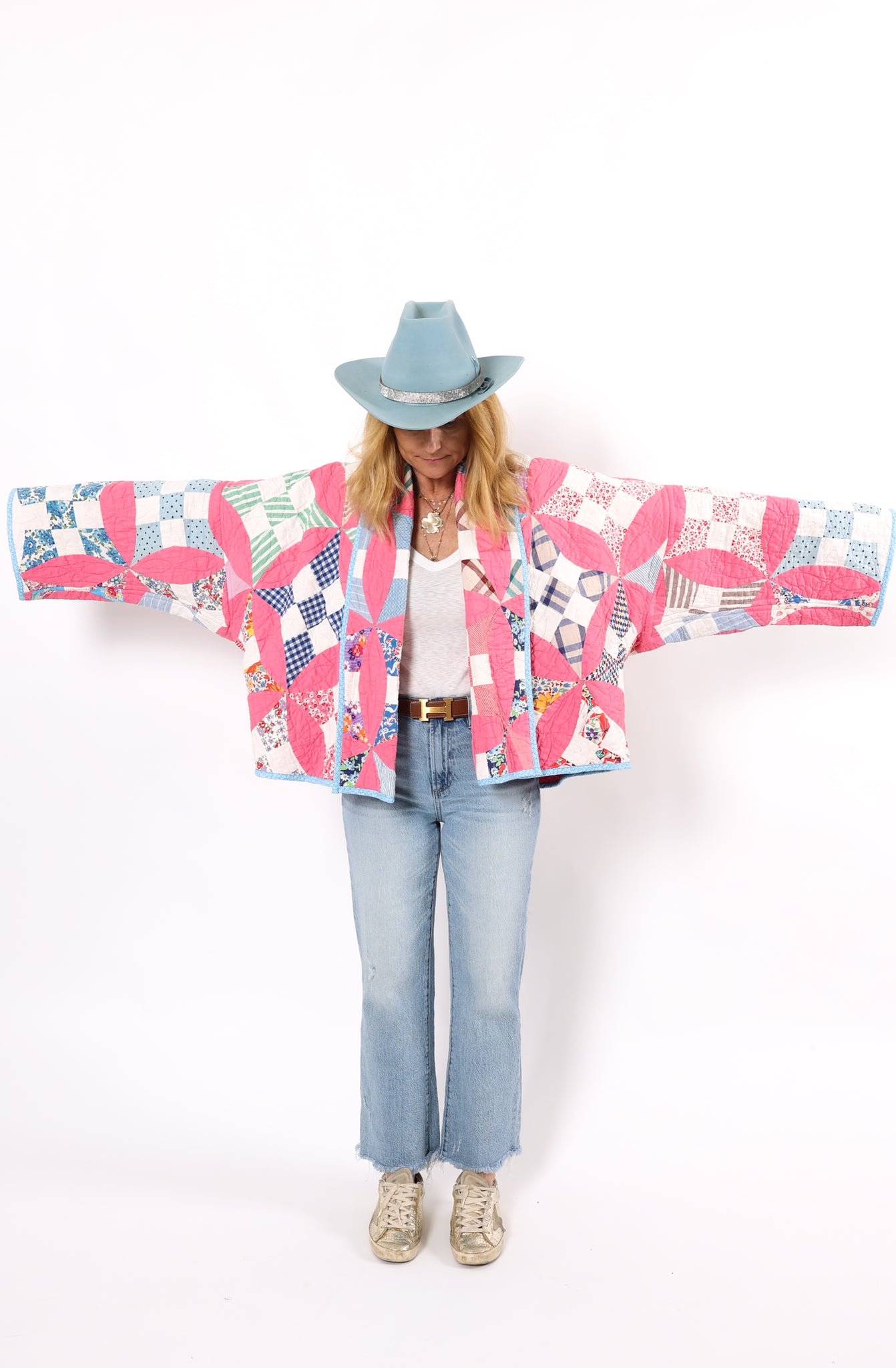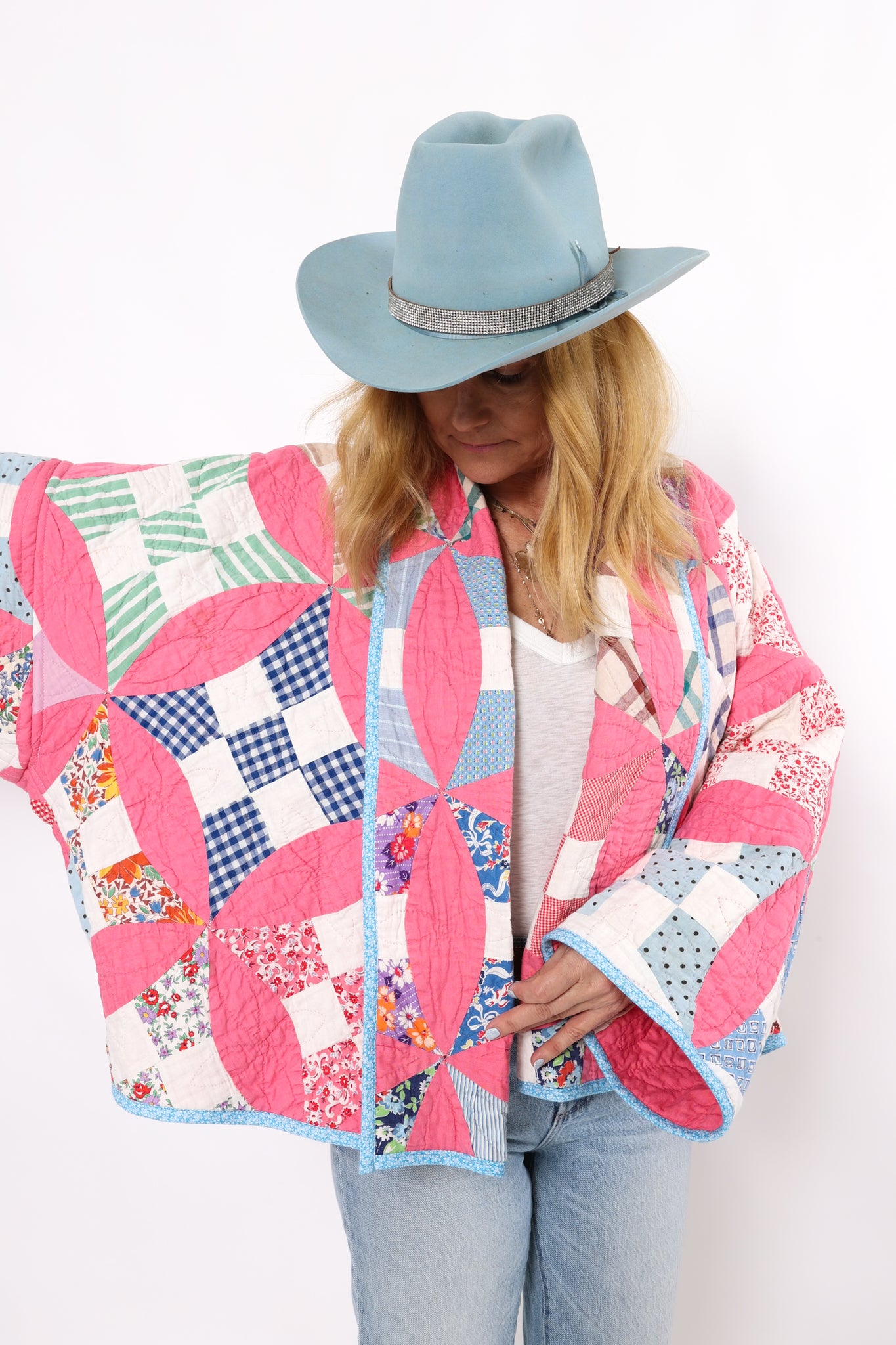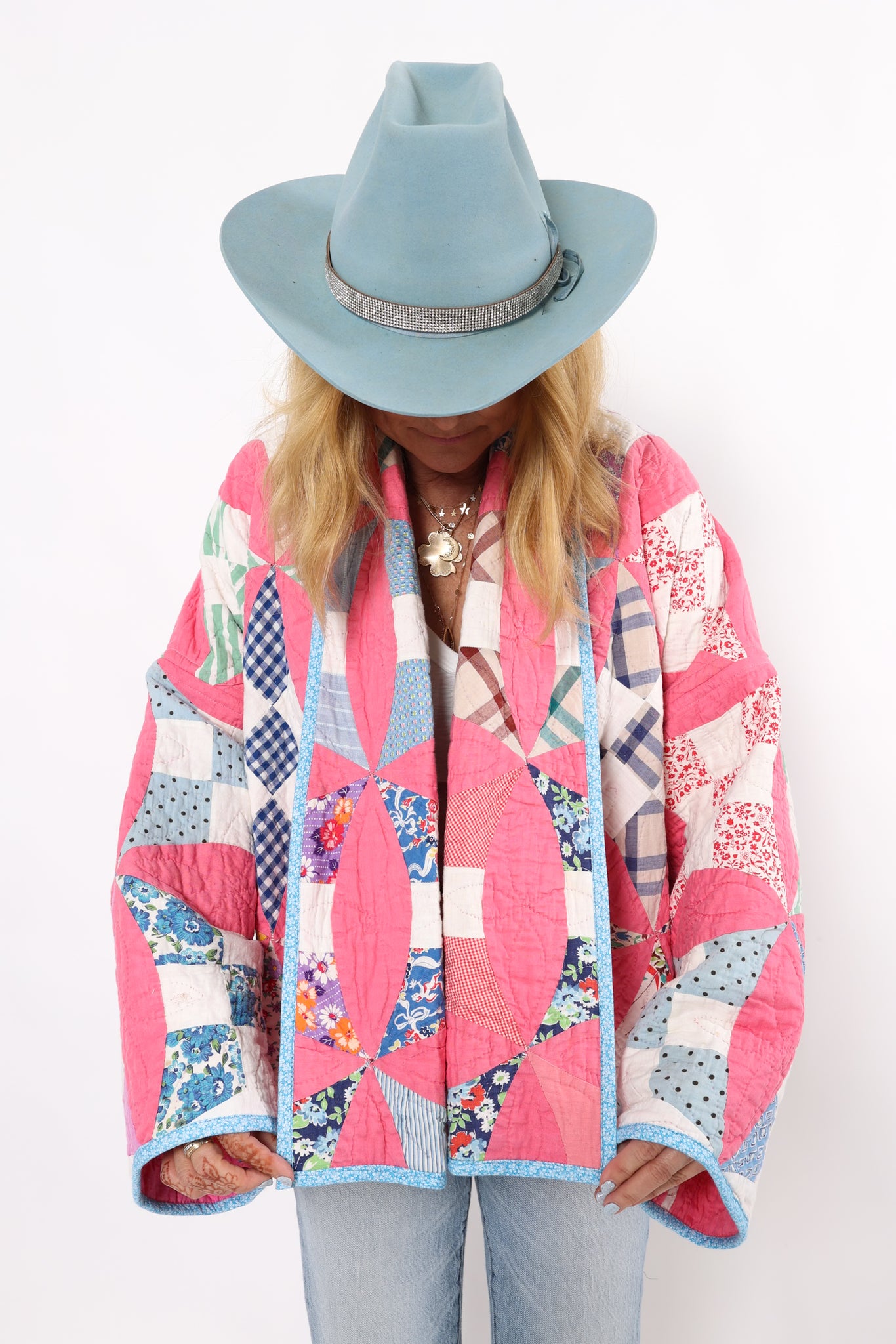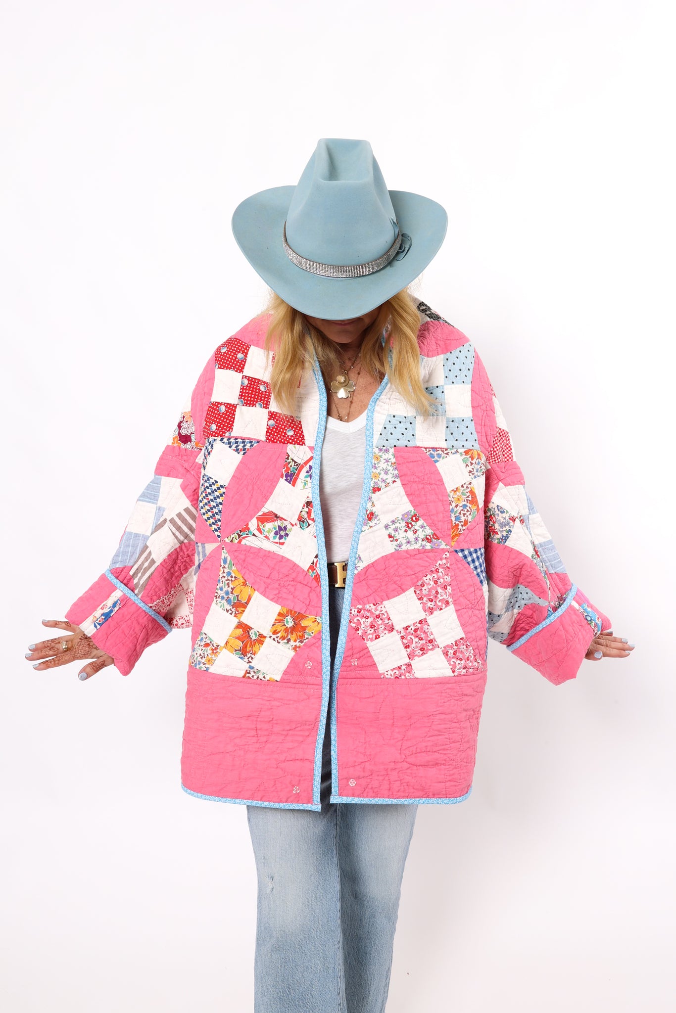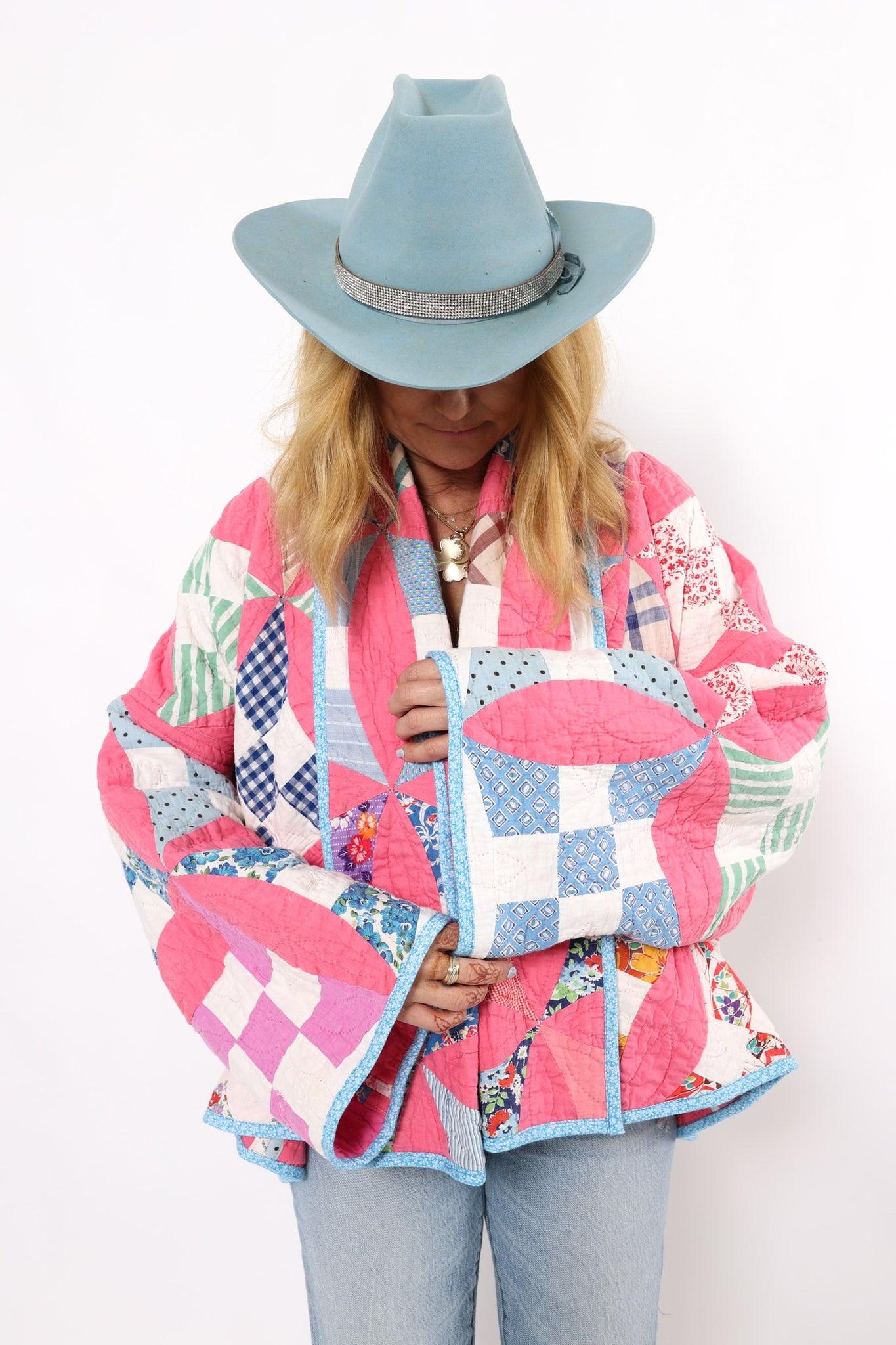 Please note that most of our jackets are made from antique quilts and the fabrics reflect this. Some fabrics can be older than 100 years and we believe that makes them perfectly imperfect. This is what makes them a one-of-a-kind piece of art. All of our garments are pre-washed in a special restoration quilt wash. We recommend spot cleaning if necessary.