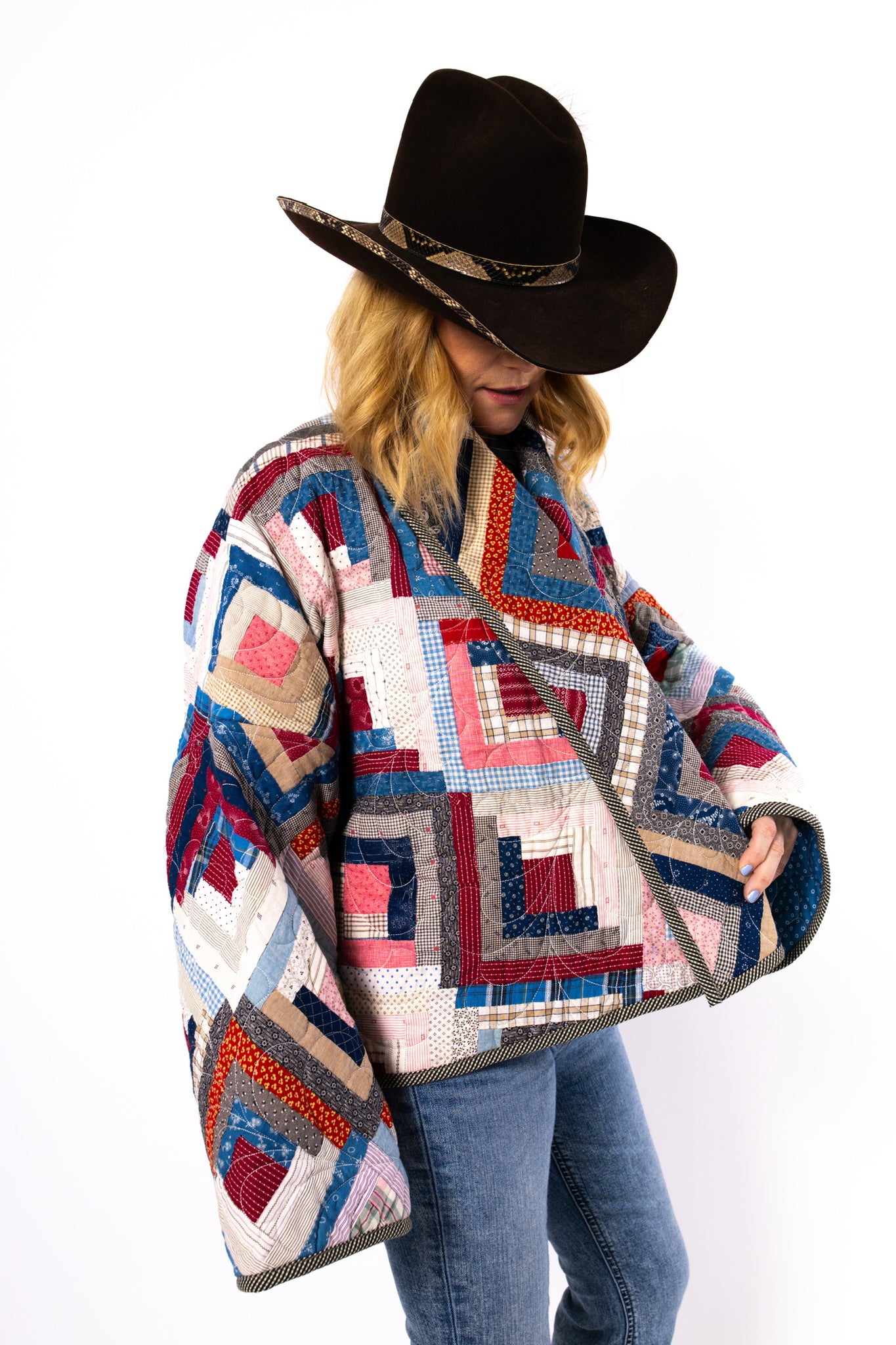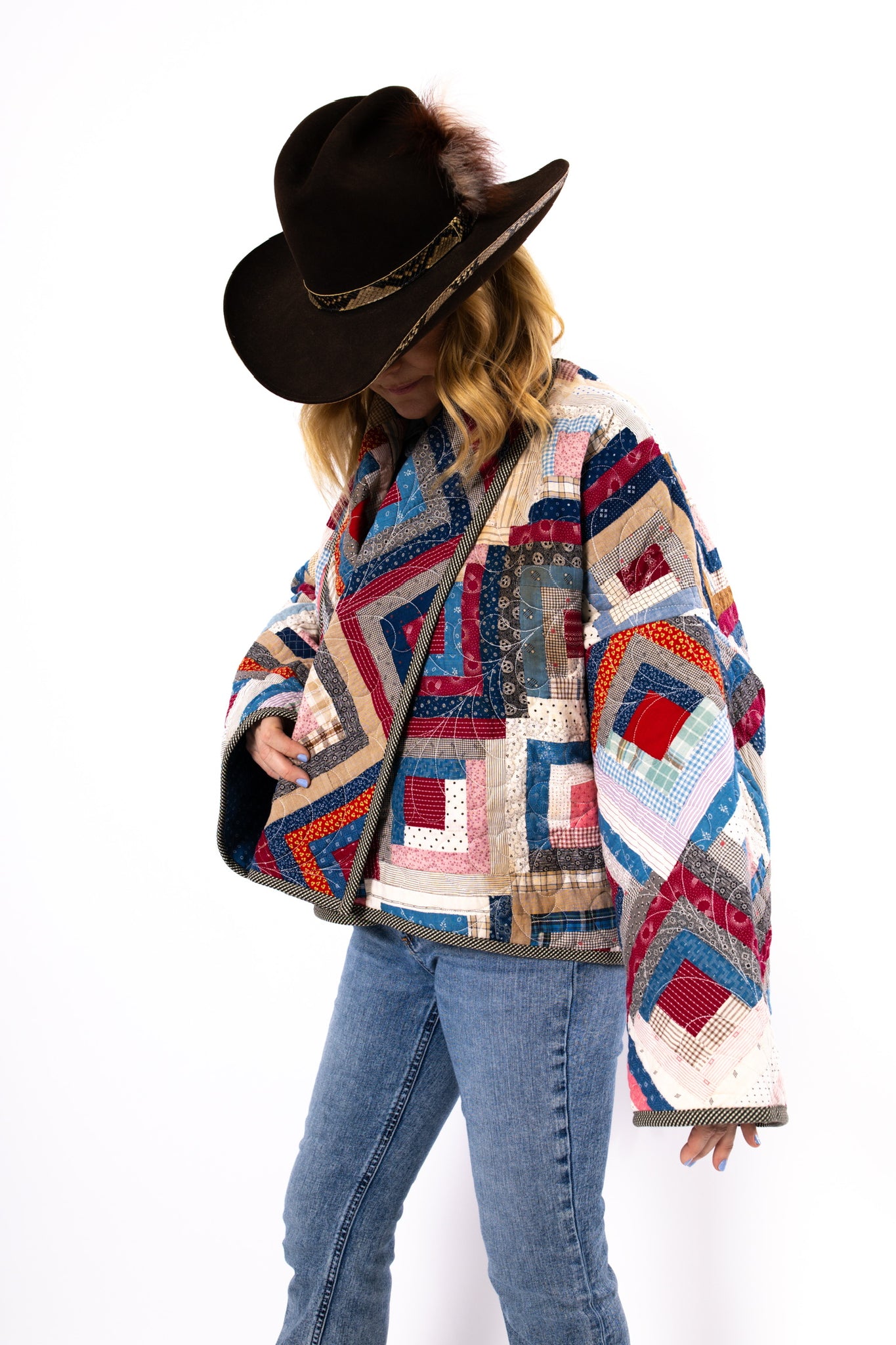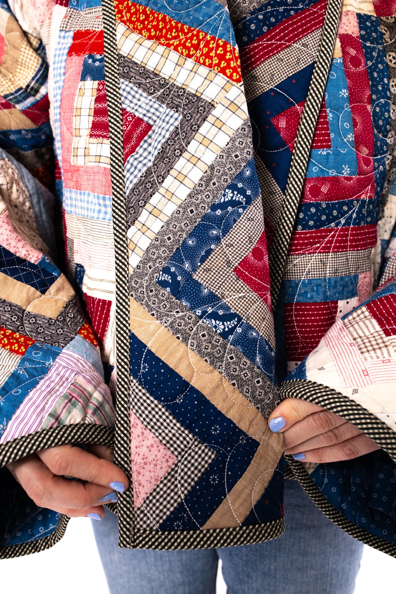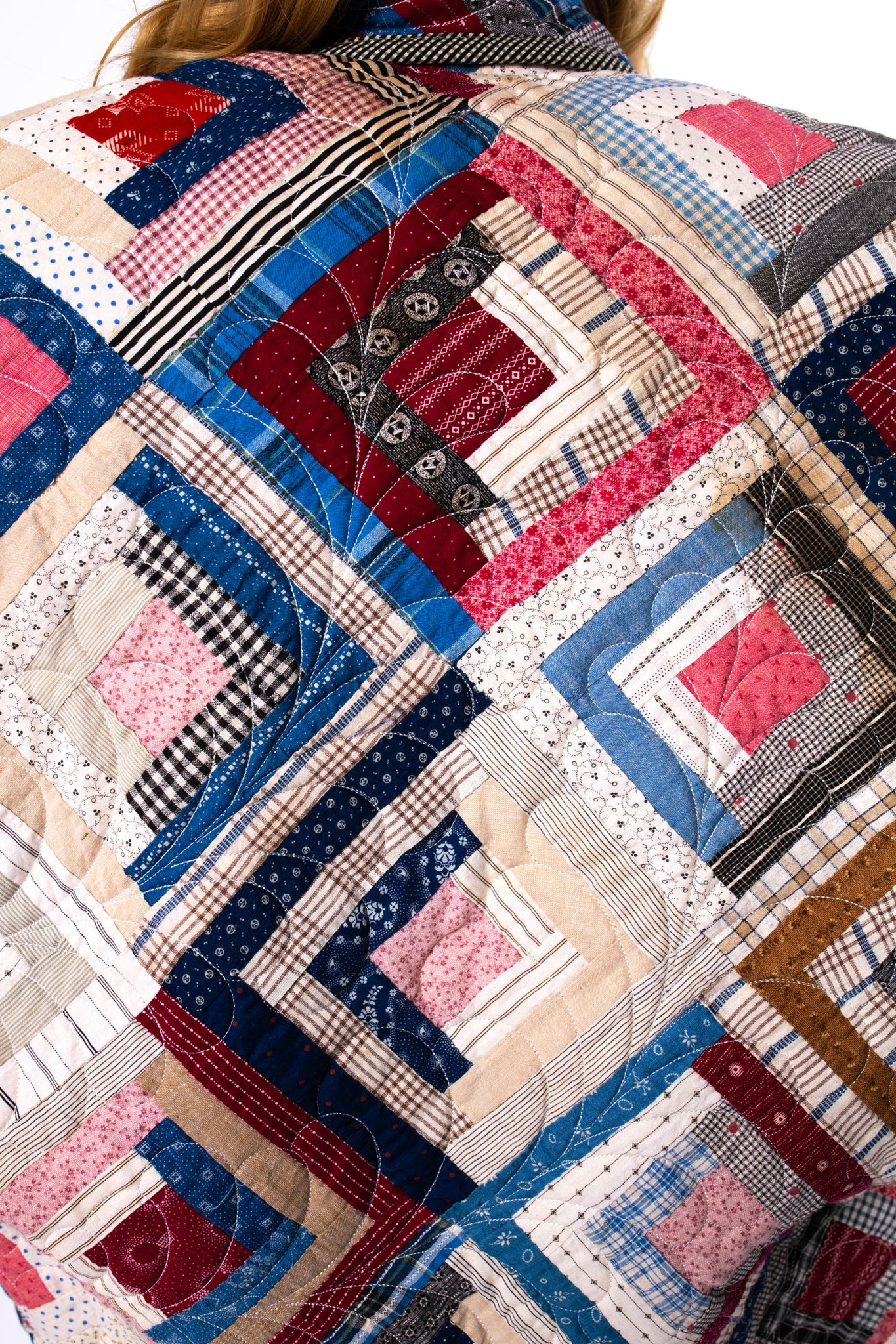 Please note that most of our jackets are made from antique quilts and the fabrics reflect this. Some fabrics can be older than 100 years and we believe that makes them perfectly imperfect. This is what makes them a one-of-a-kind piece of art. All of our garments are pre-washed in a special restoration quilt wash. We recommend spot cleaning if necessary.