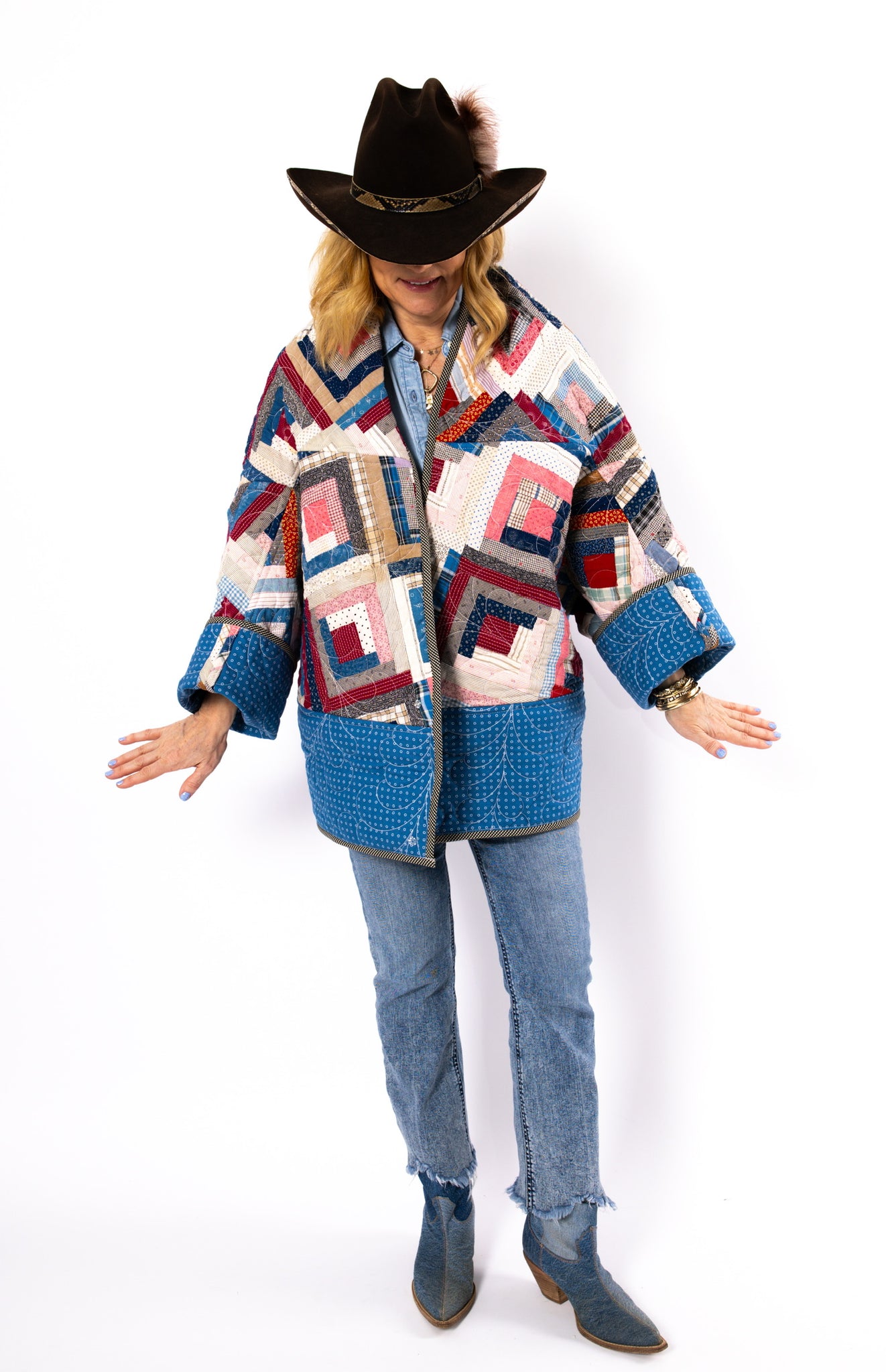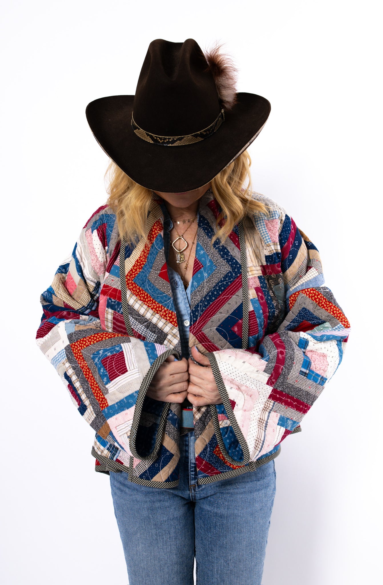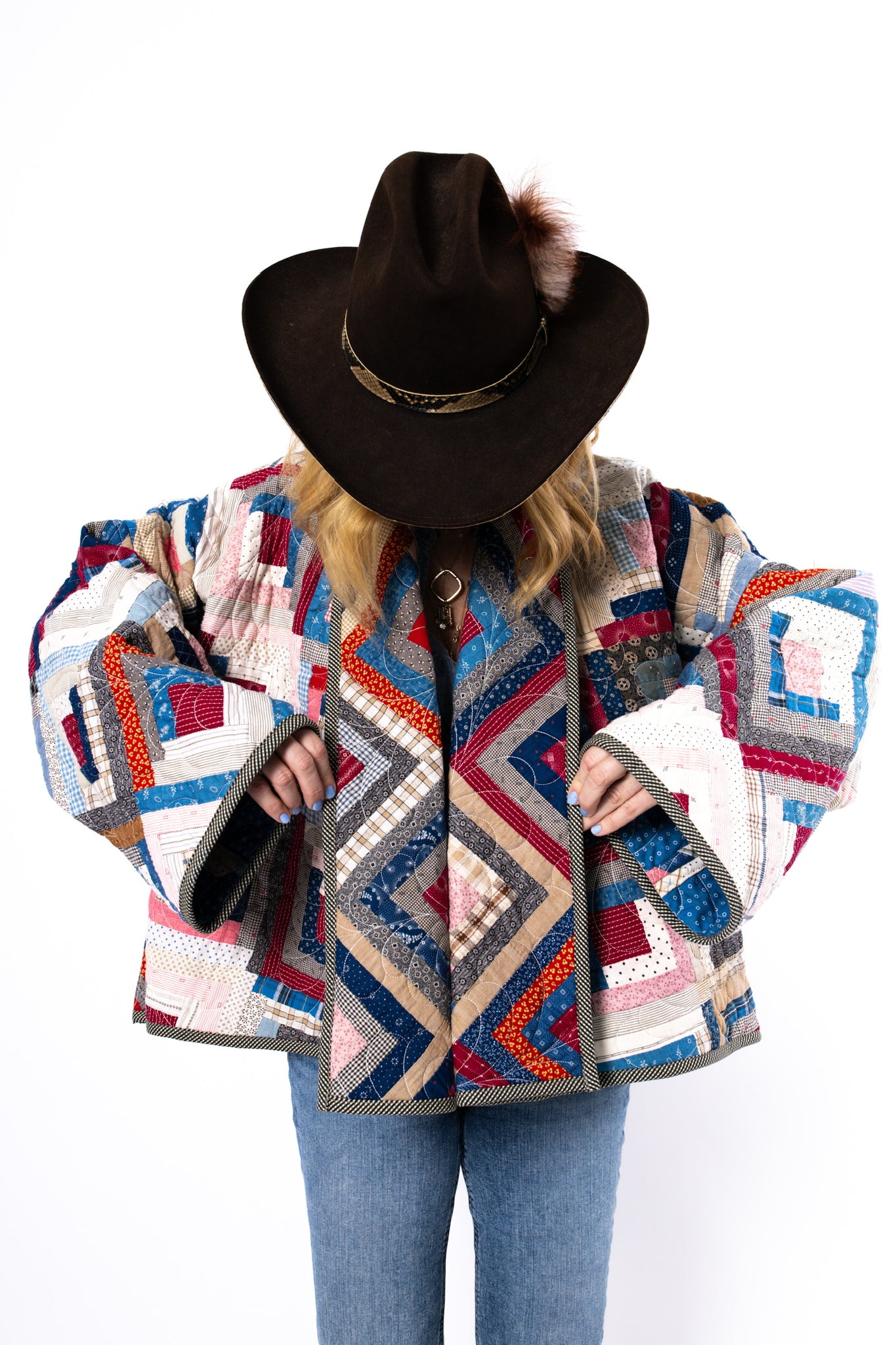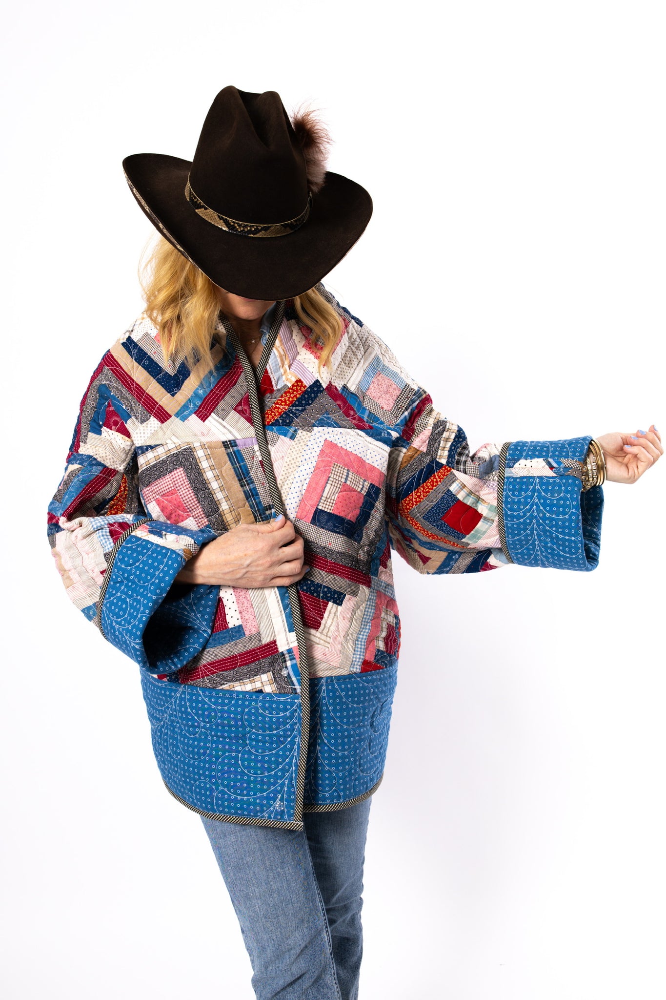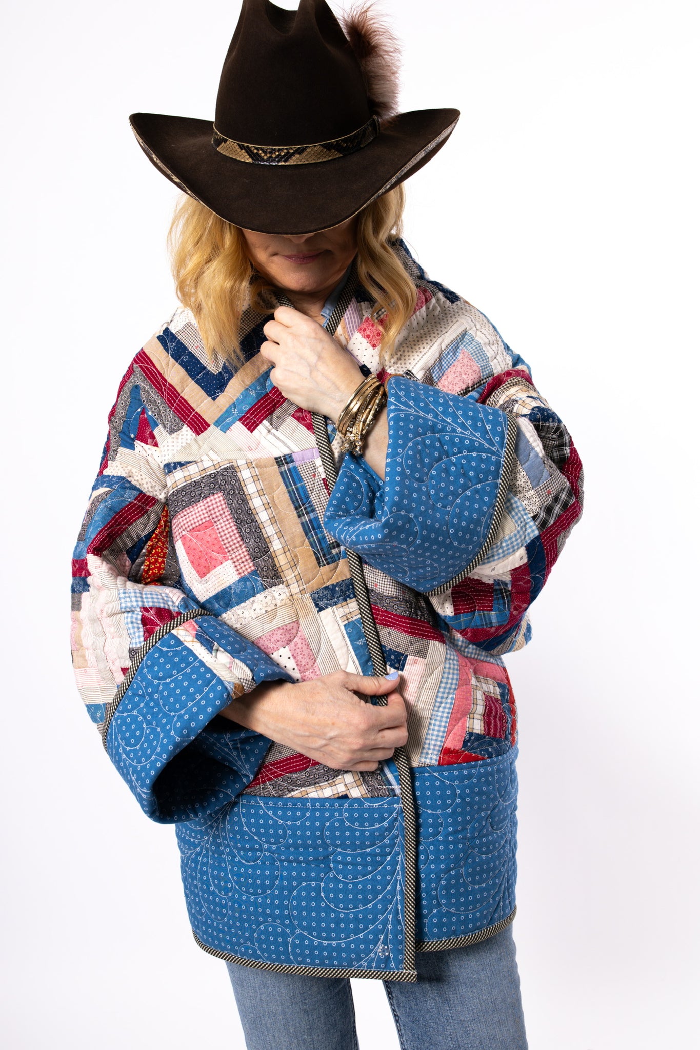 Please note that most of our jackets are made from antique quilts and the fabrics reflect this. Some fabrics can be older than 100 years and we believe that makes them perfectly imperfect. This is what makes them a one-of-a-kind piece of art. All of our garments are pre-washed in a special restoration quilt wash. We recommend spot cleaning if necessary.