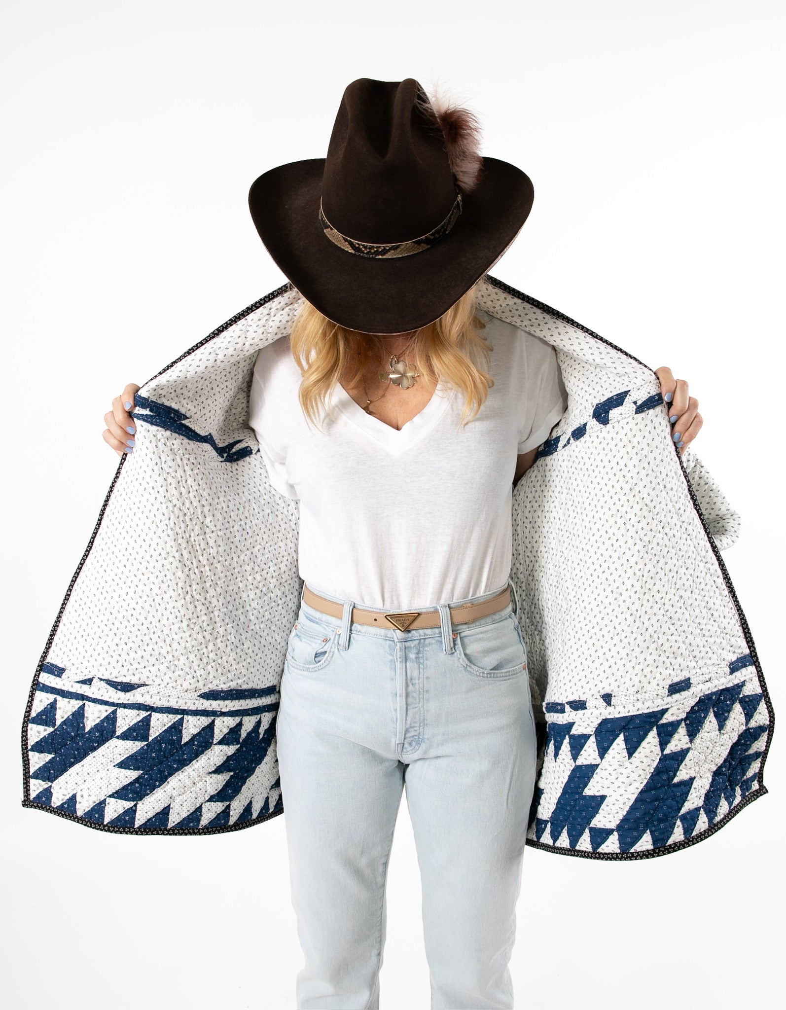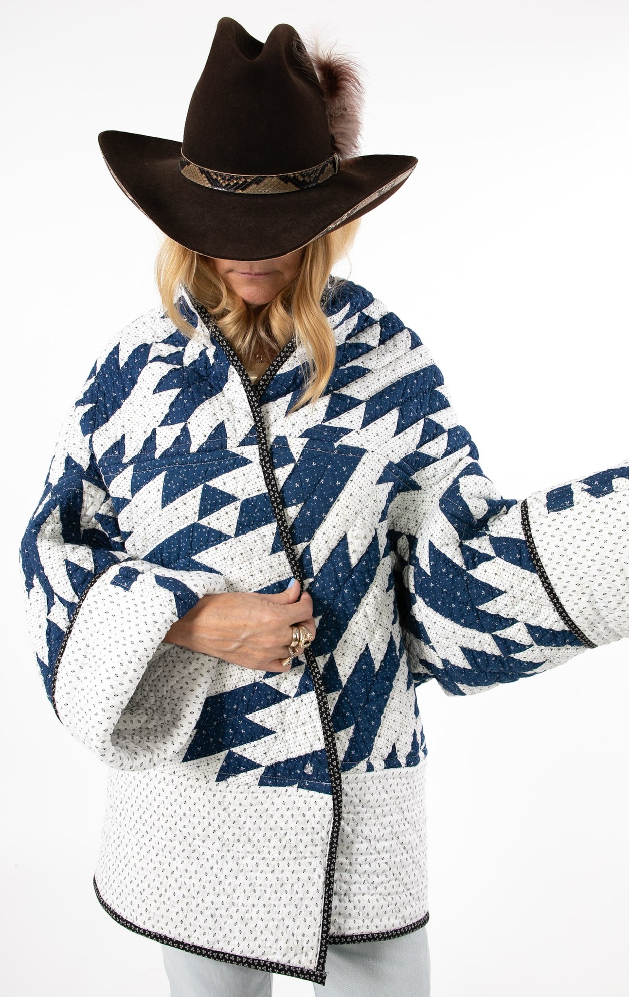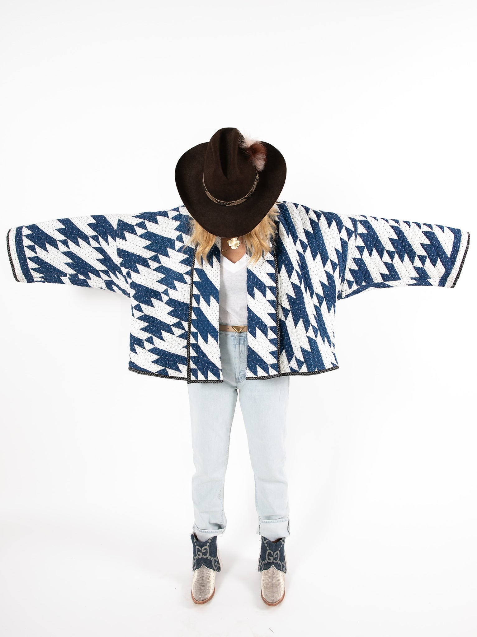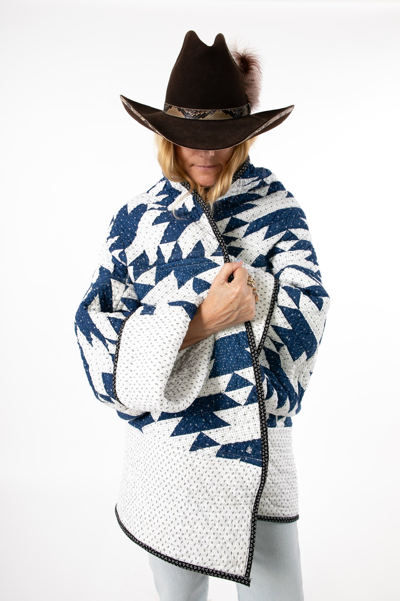 Please note that all of our jackets are made from antique quilts and the fabric reflects this. Our fabrics are sometimes older than 100 years and we believe that makes them perfectly imperfect. This is what makes them a one-of-a-kind piece of art. All of our garments are pre-washed in a special restoration quilt wash. We recommend spot cleaning if necessary.