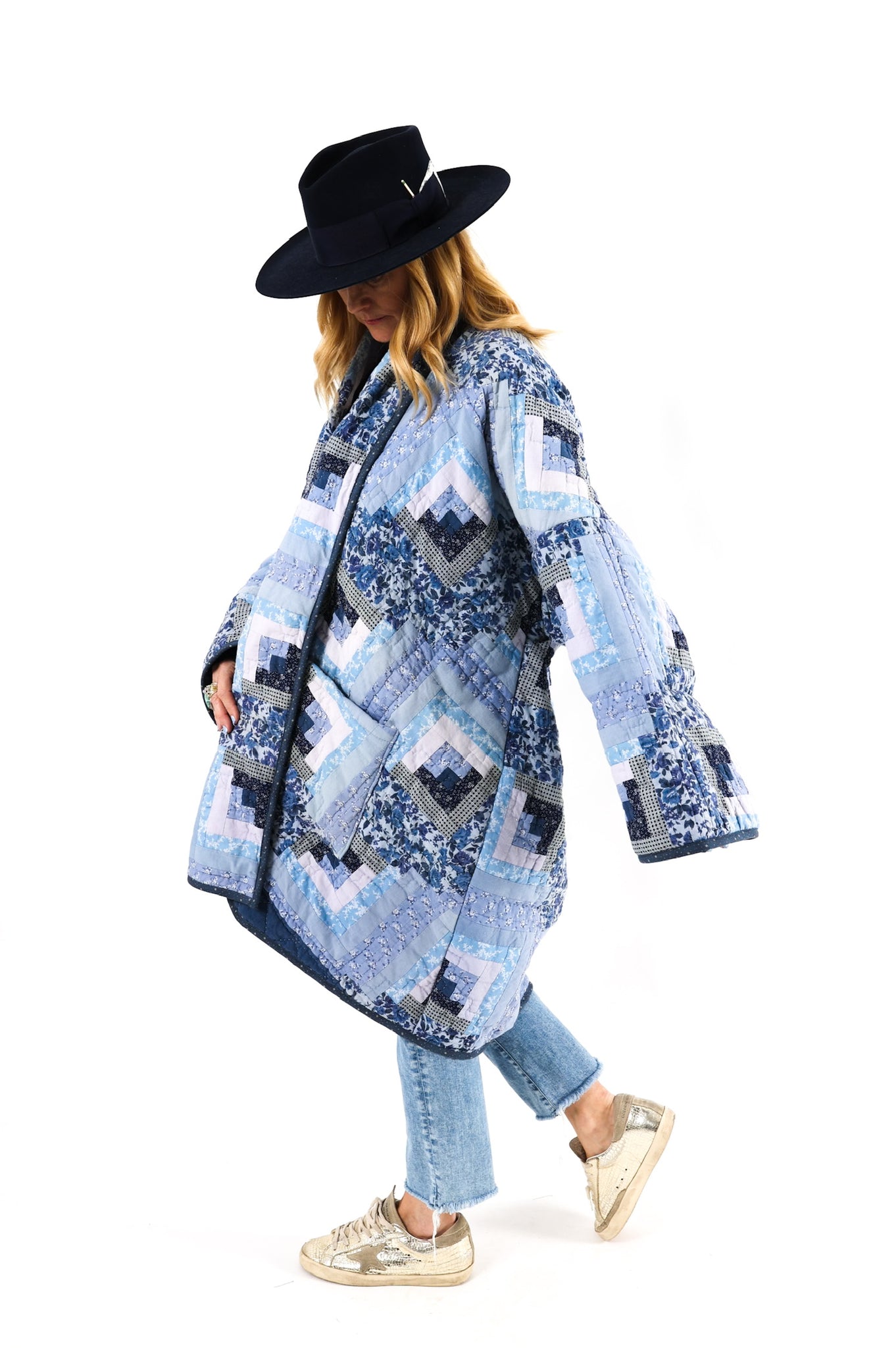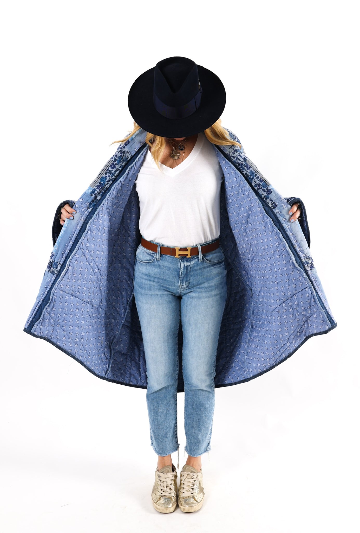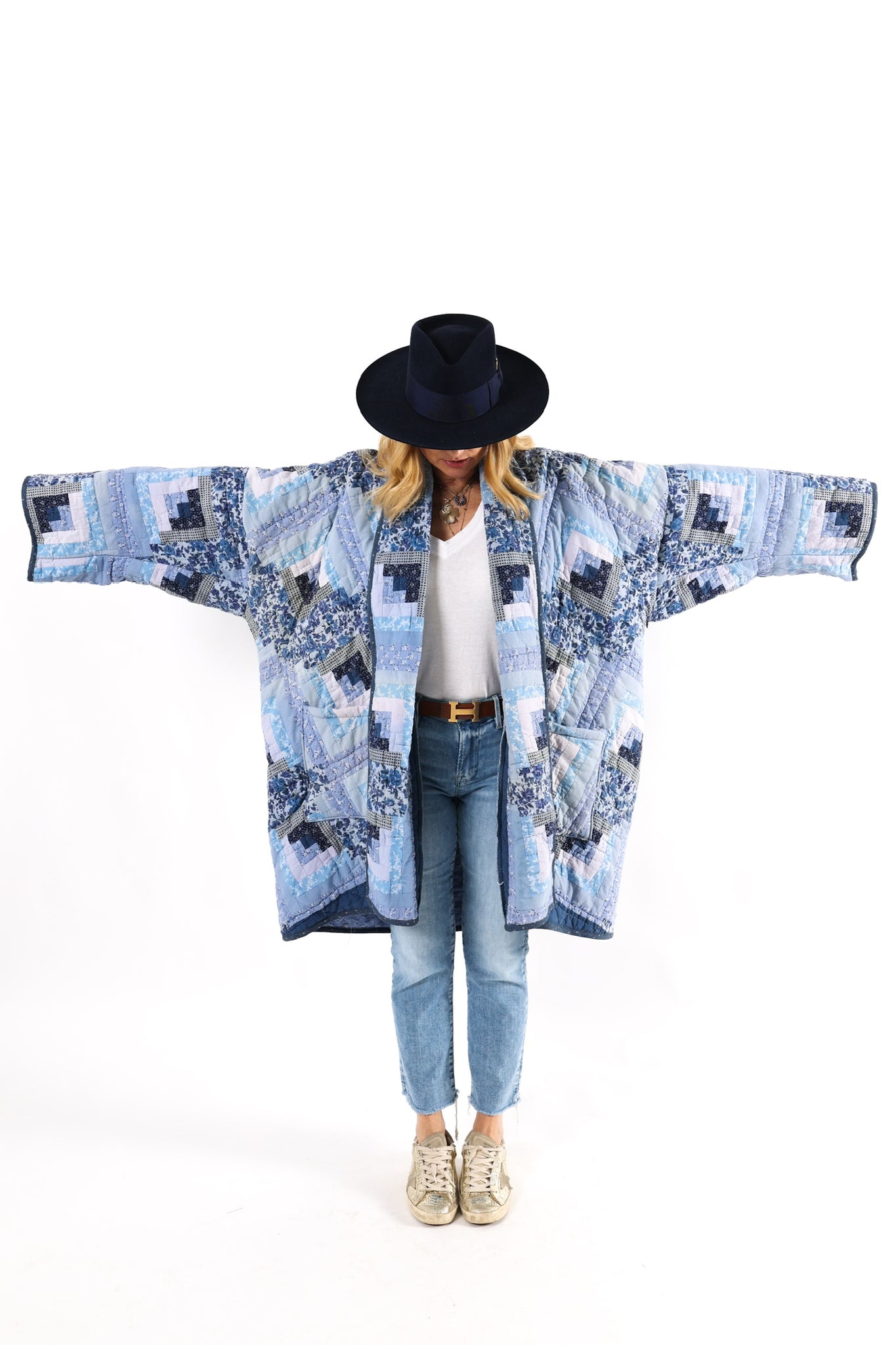 Please note that all of our jackets are made from antique quilts and the fabric reflects this. Our fabrics are sometimes older than 100 years and we believe that makes them perfectly imperfect. This is what makes them a one-of-a-kind piece of art. All of our garments are pre-washed in a special restoration quilt wash. We recommend spot cleaning if necessary.