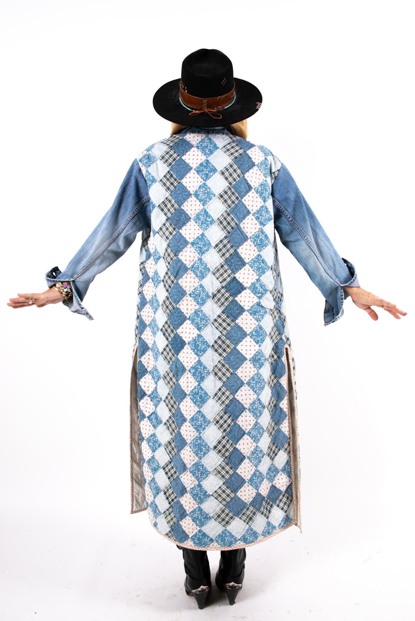 Please note that all of our jackets are made from antique quilts and the fabric reflects this. Our fabrics are sometimes older than 100 years old and are perfectly worn. We believe this is what makes them special and is part of their charm. All of our garments are pre-washed in special restoration quilt wash. We recommend only spot cleaning if necessary.