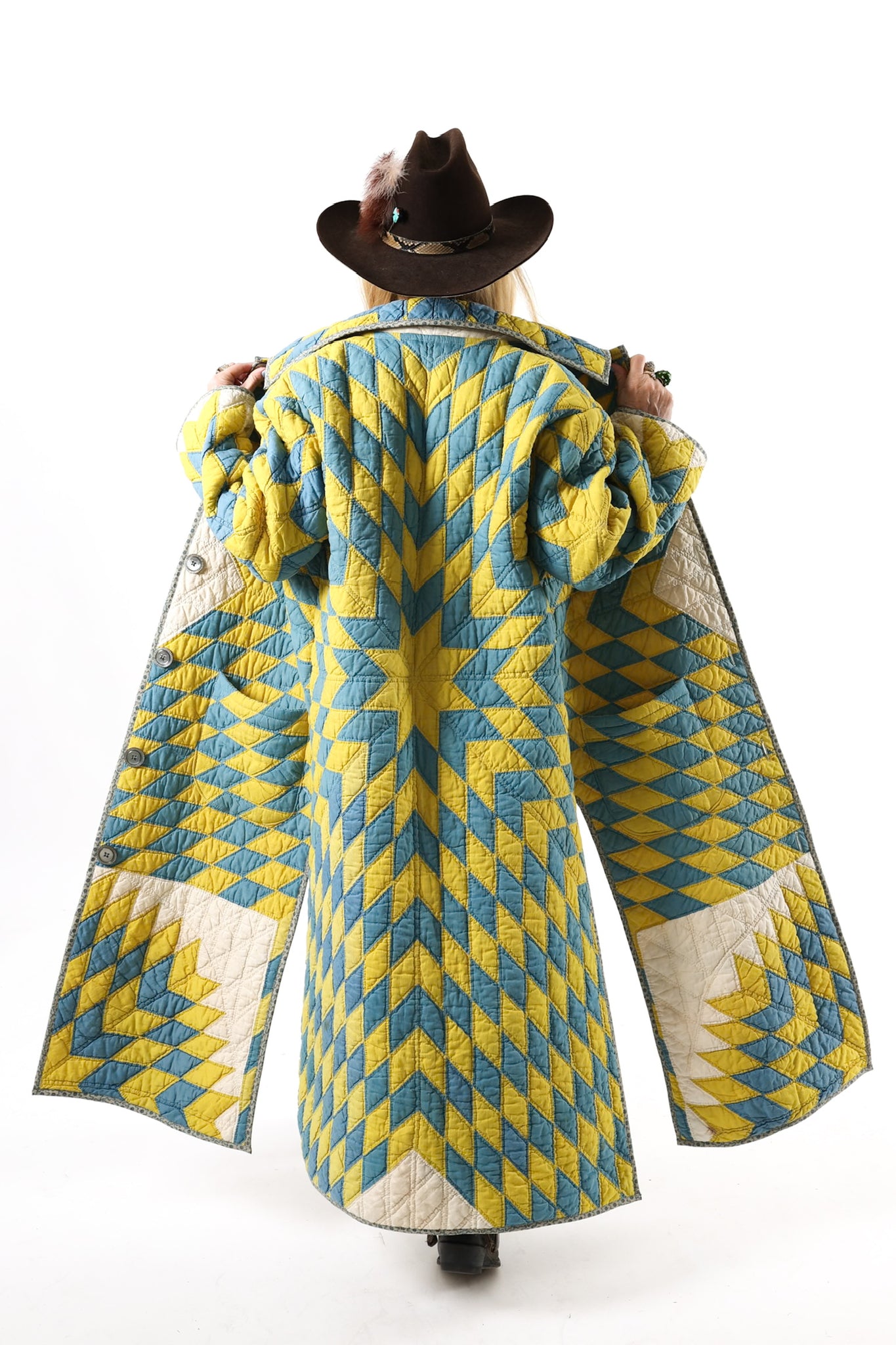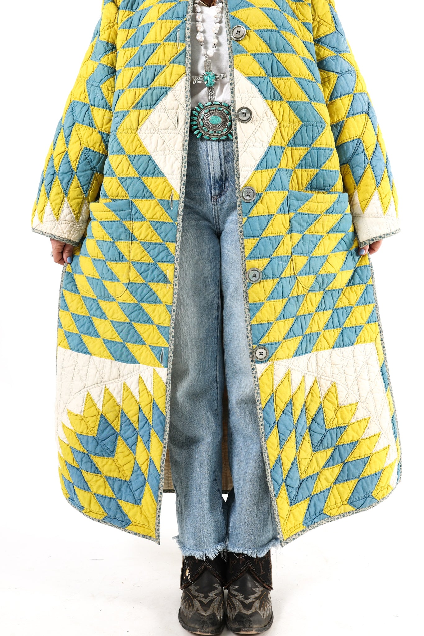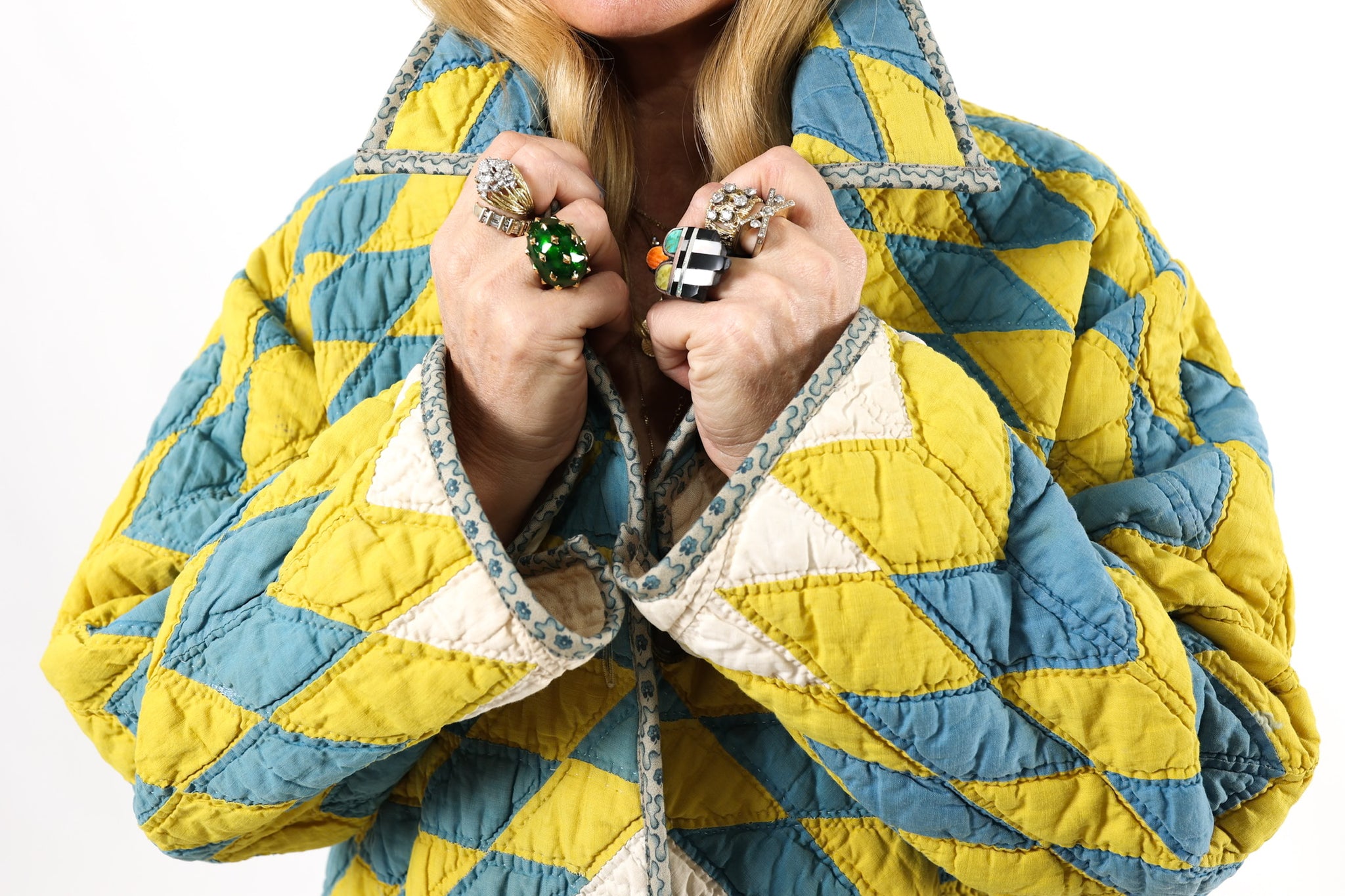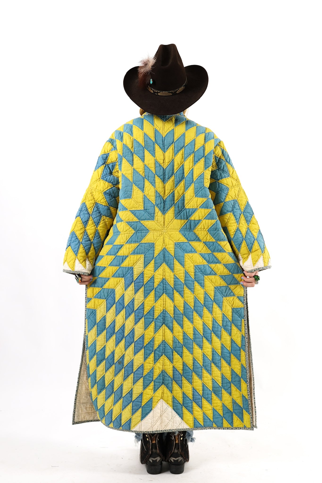 Please note that most of our jackets are made from antique quilts and the fabrics reflect this. Our fabrics are sometimes older than 100 years old and are perfectly worn. We believe this is what makes them special and is part of their charm. All of our garments are pre-washed in special restoration quilt wash. We recommend only spot cleaning if necessary.