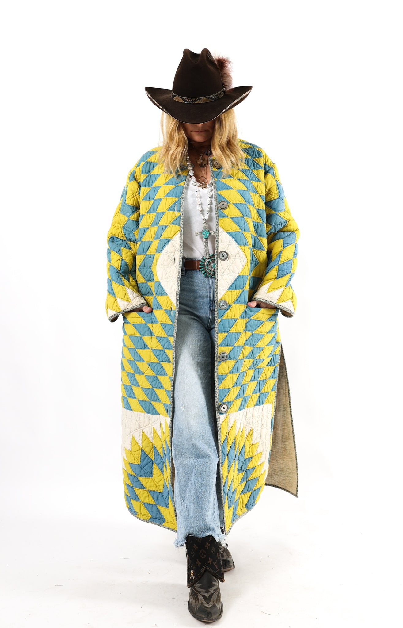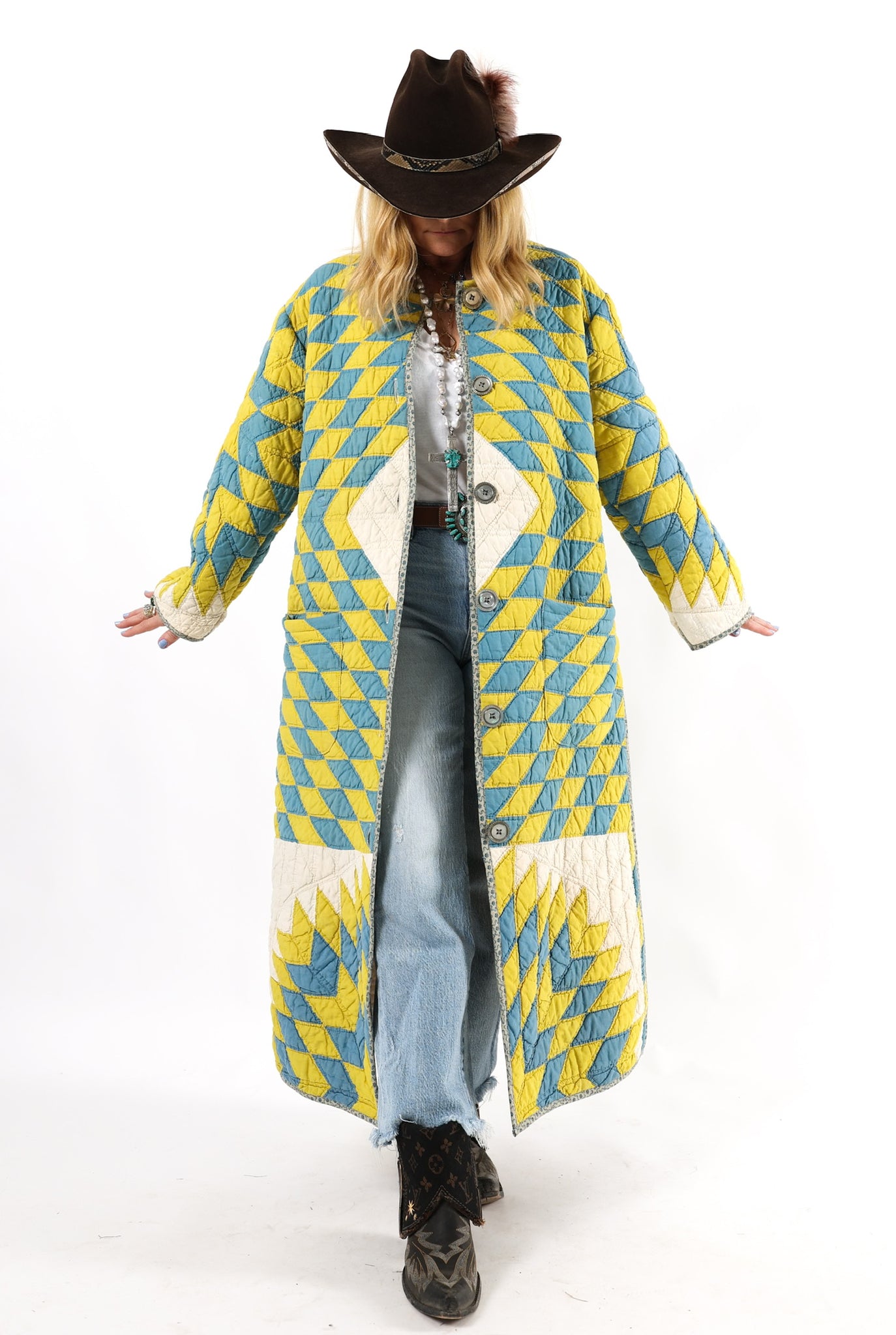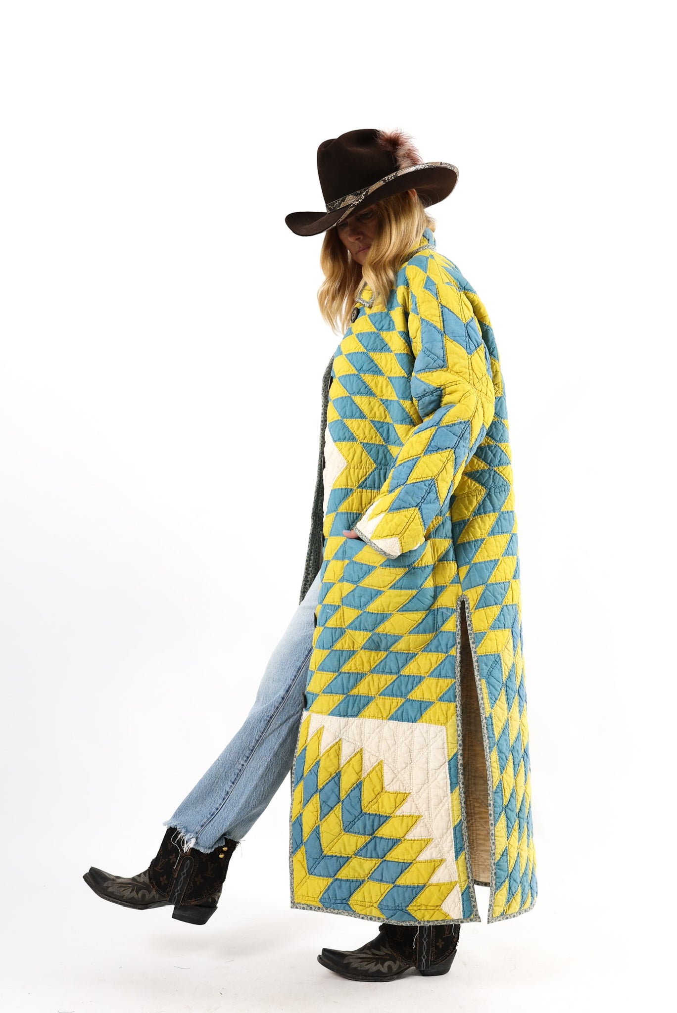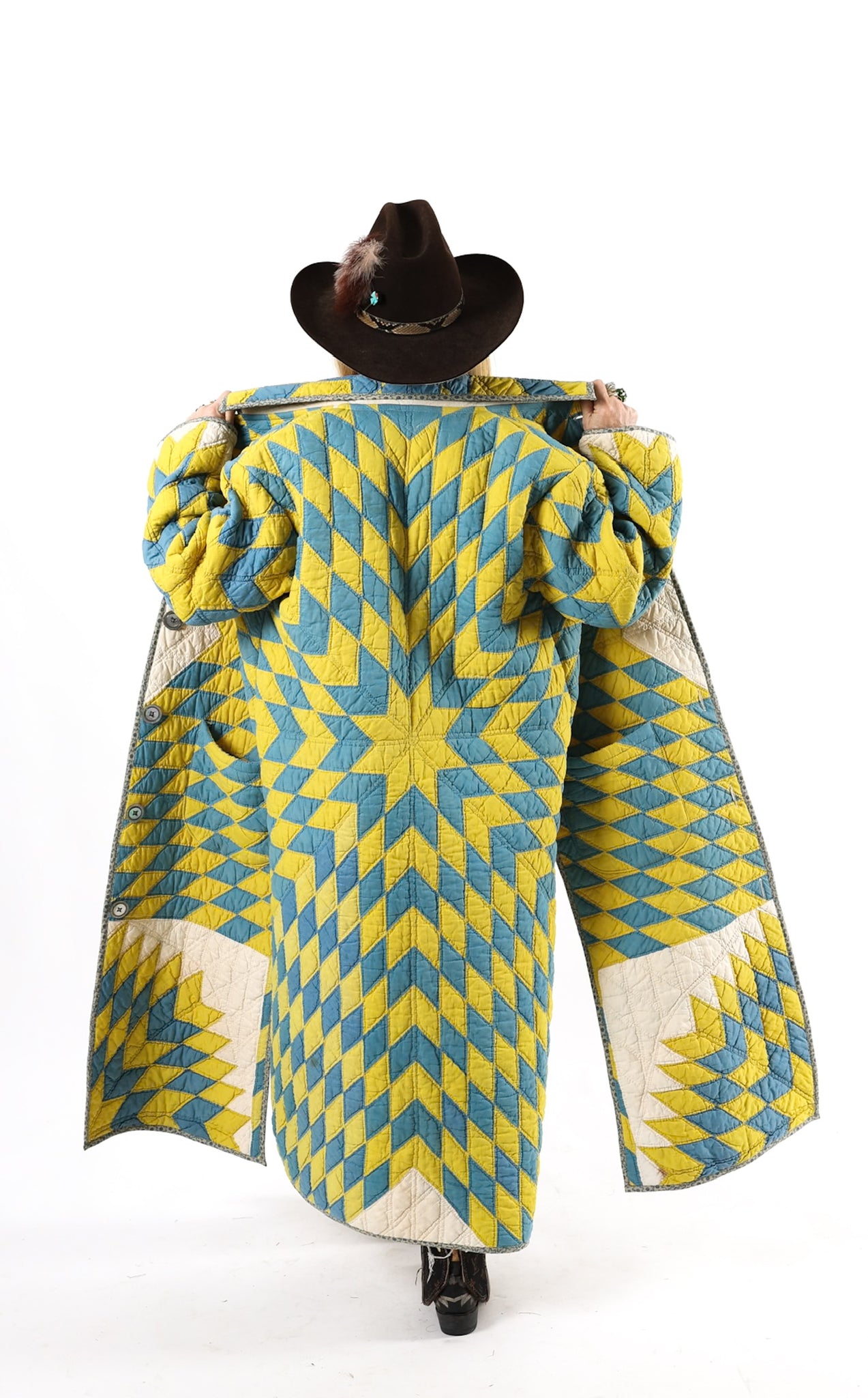Please note that most of our jackets are made from antique quilts and the fabrics reflect this. Our fabrics are sometimes older than 100 years old and are perfectly worn. We believe this is what makes them special and is part of their charm. All of our garments are pre-washed in special restoration quilt wash. We recommend only spot cleaning if necessary.