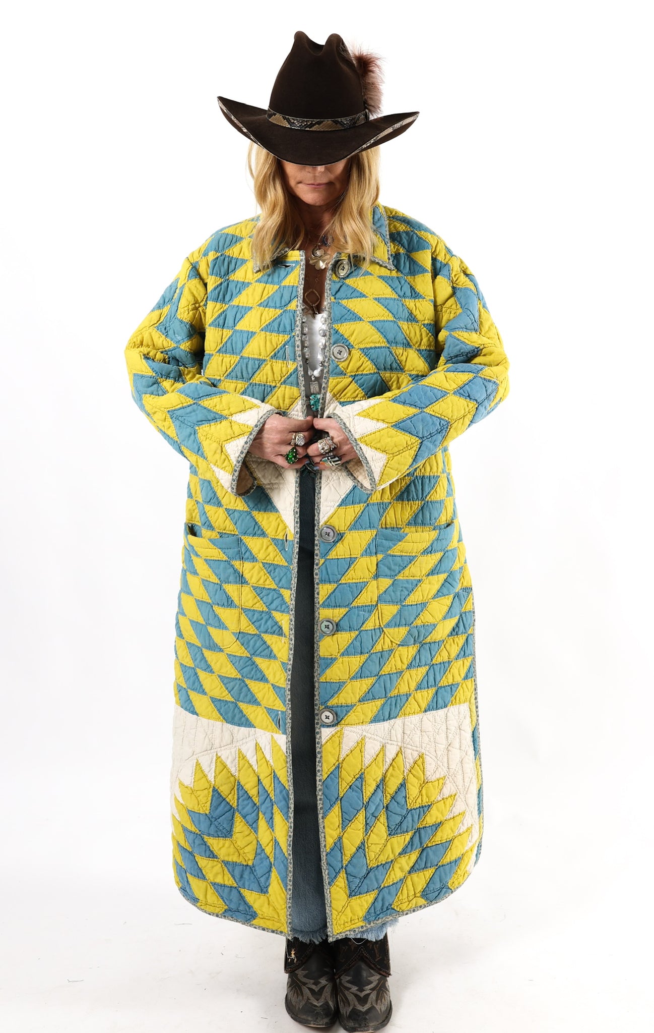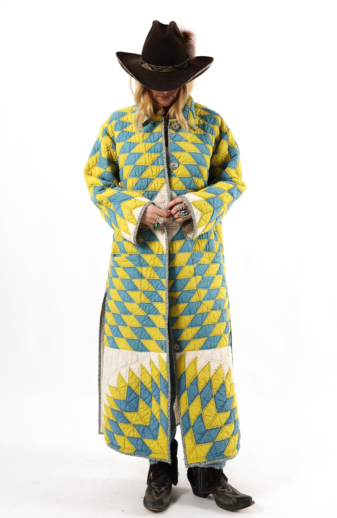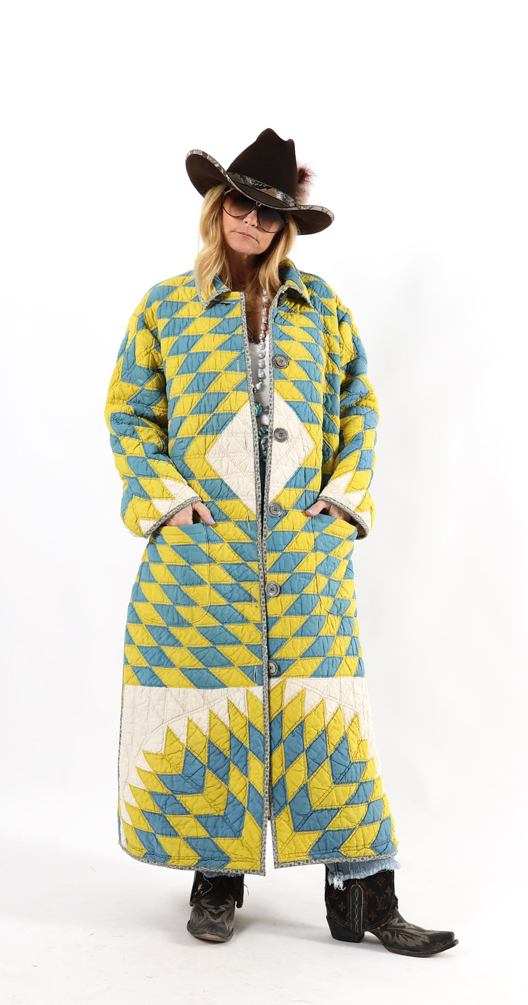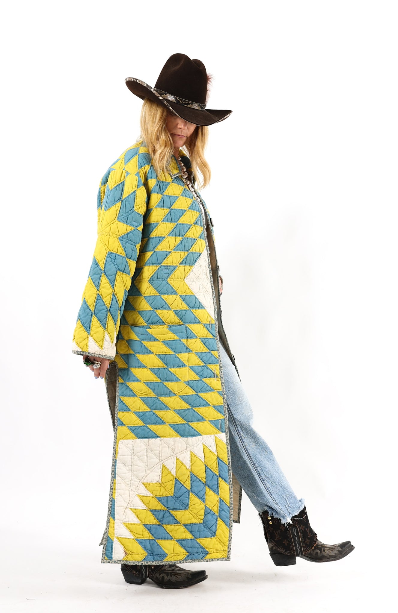 Please note that most of our jackets are made from antique quilts and the fabrics reflect this. Our fabrics are sometimes older than 100 years old and are perfectly worn. We believe this is what makes them special and is part of their charm. All of our garments are pre-washed in special restoration quilt wash. We recommend only spot cleaning if necessary.