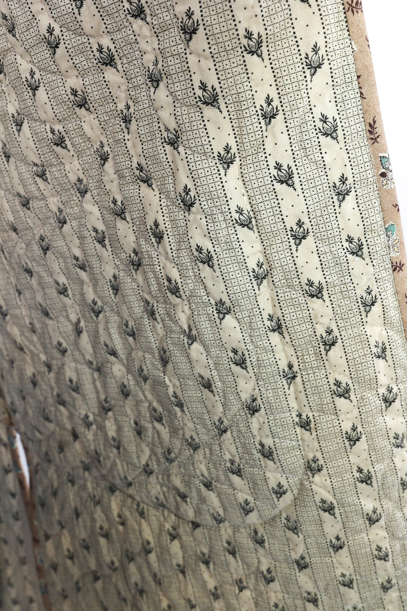 Please note that most of our jackets are made from antique quilts and the fabrics reflect this. Some fabrics can be older than 100 years and we believe that makes them perfectly imperfect. This is what makes them a one-of-a-kind piece of art. All of our garments are pre-washed in a special restoration quilt wash. We recommend spot cleaning if necessary.