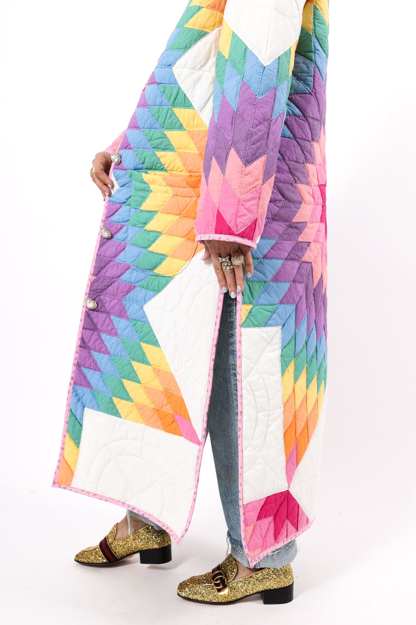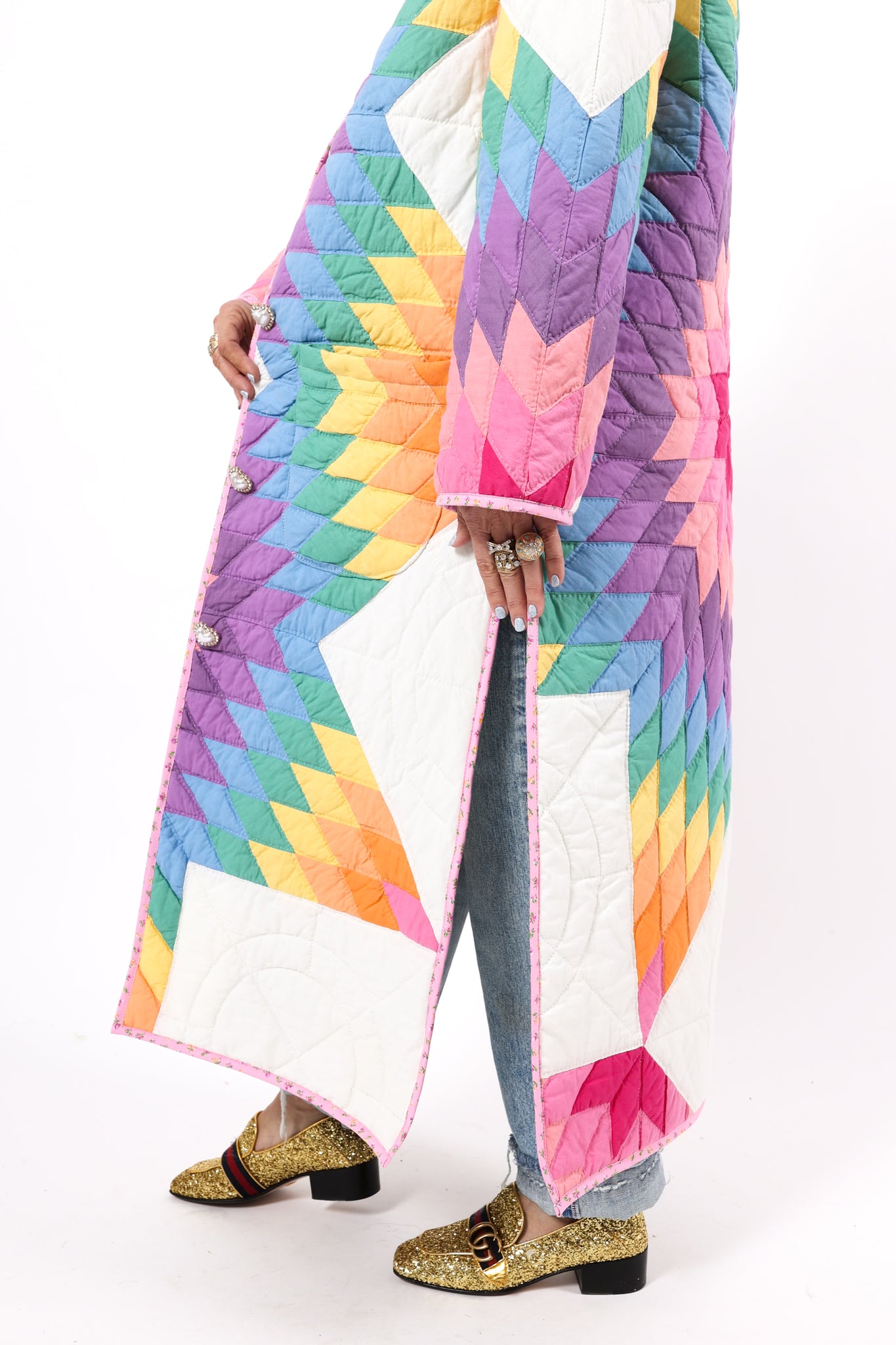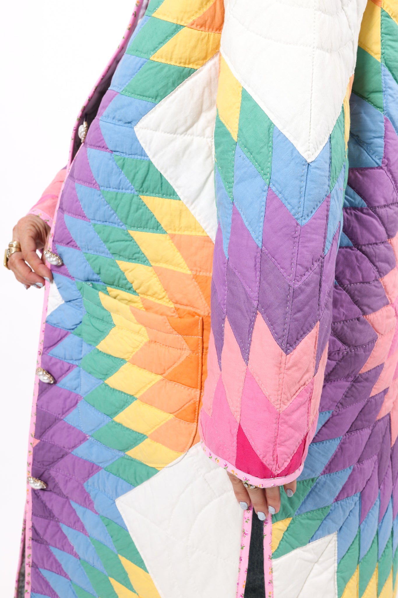 Please note that most of our jackets are made from antique quilts and the fabrics reflect this. Some fabrics can be older than 100 years and we believe that makes them perfectly imperfect. This is what makes them a one-of-a-kind piece of art. All of our garments are pre-washed in a special restoration quilt wash. We recommend spot cleaning if necessary.