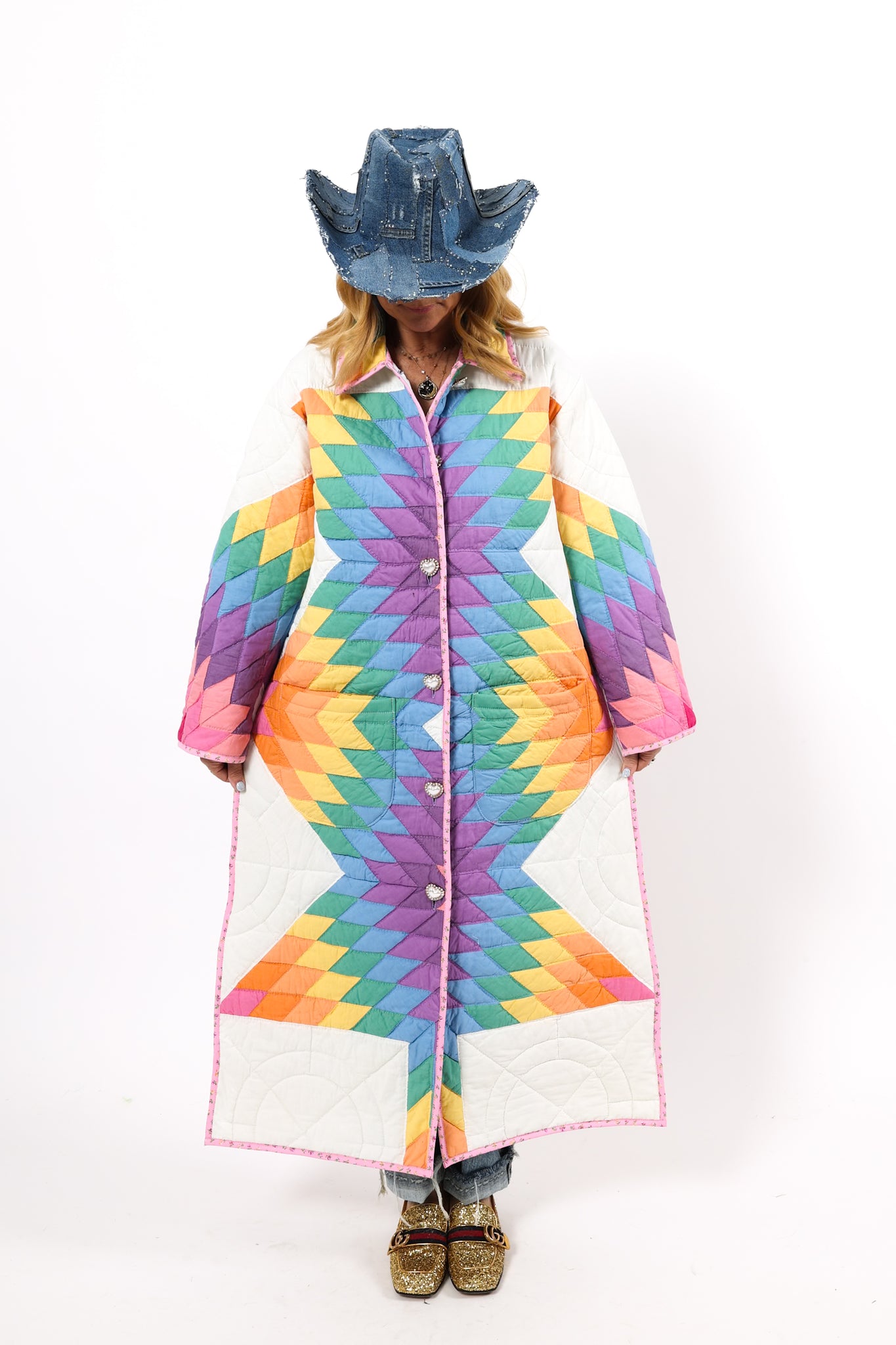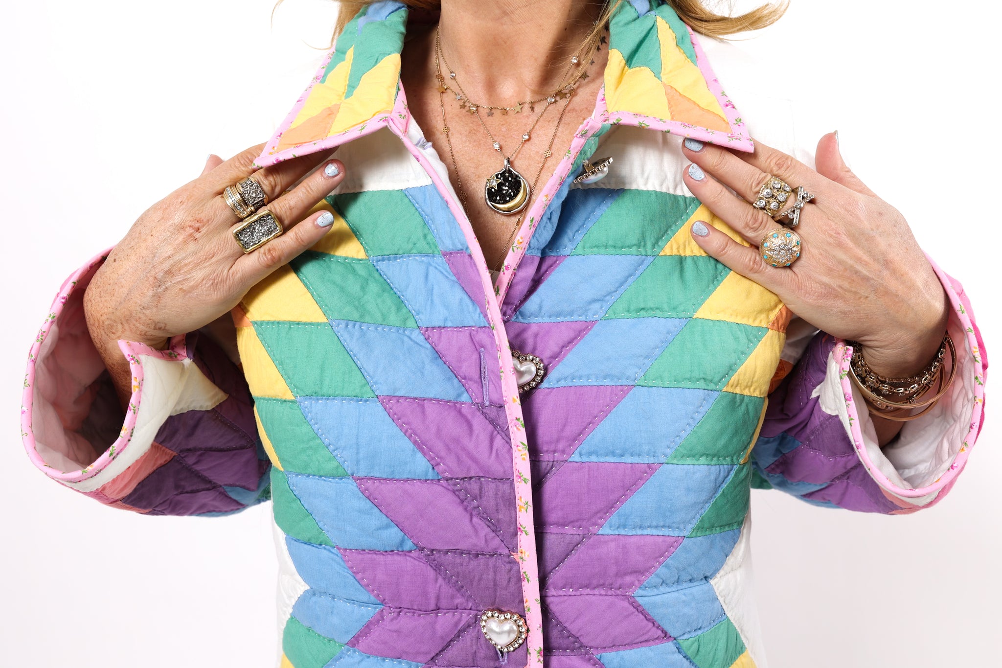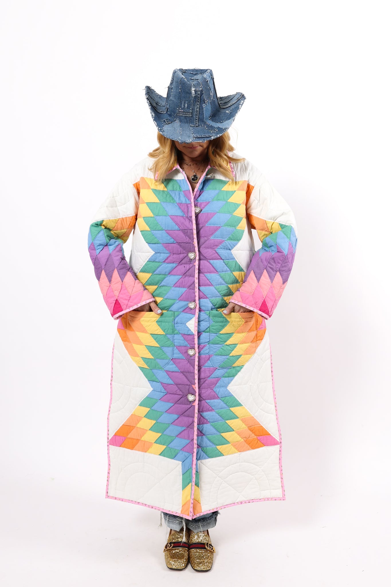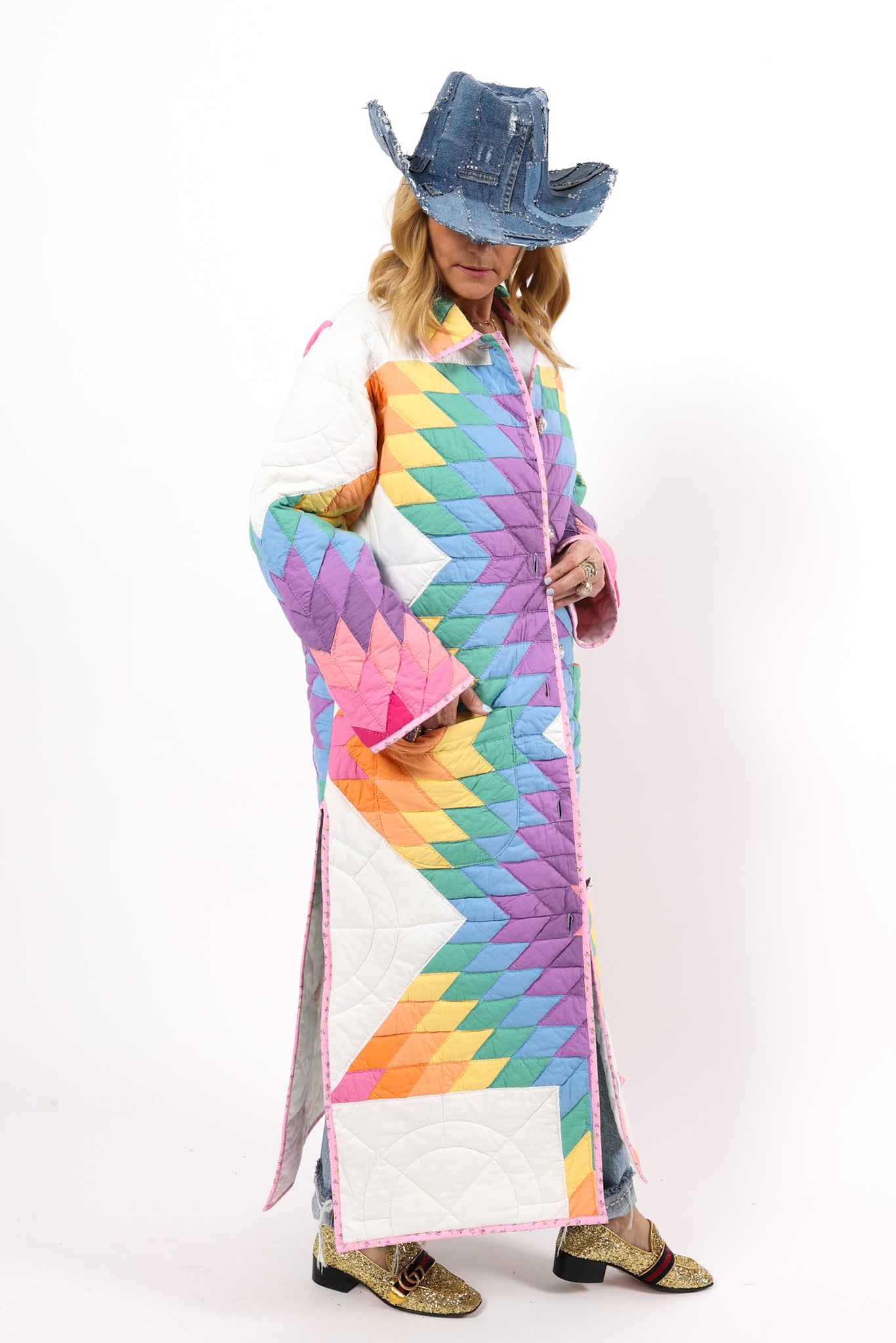 Please note that most of our jackets are made from antique quilts and the fabrics reflect this. Some fabrics can be older than 100 years and we believe that makes them perfectly imperfect. This is what makes them a one-of-a-kind piece of art. All of our garments are pre-washed in a special restoration quilt wash. We recommend spot cleaning if necessary.
