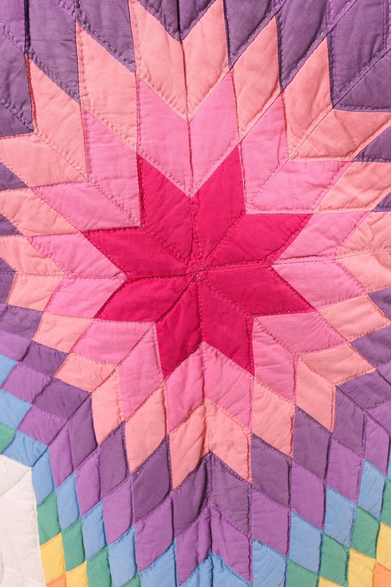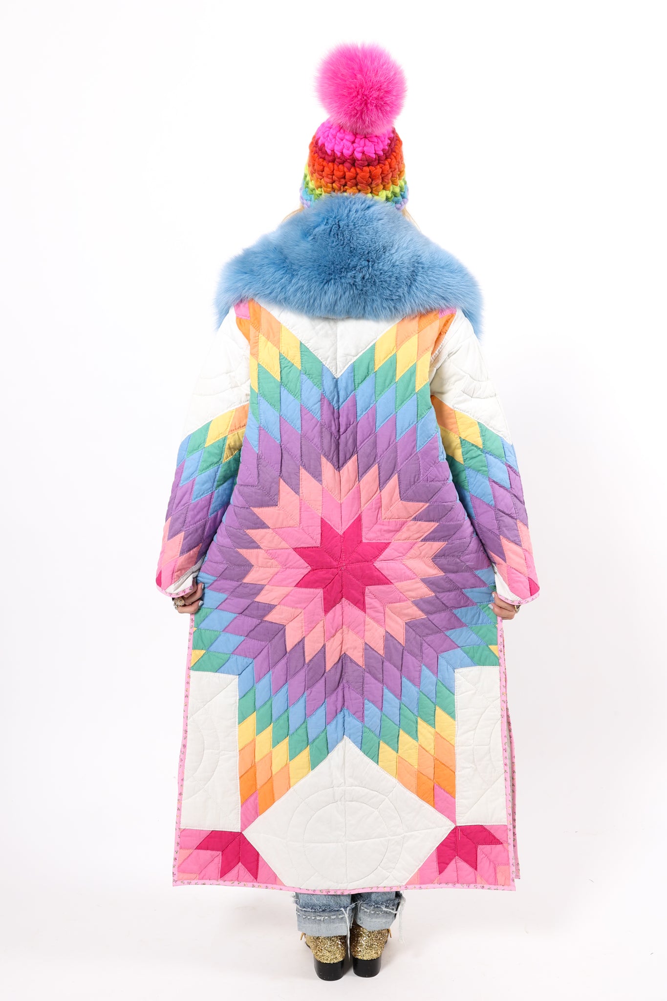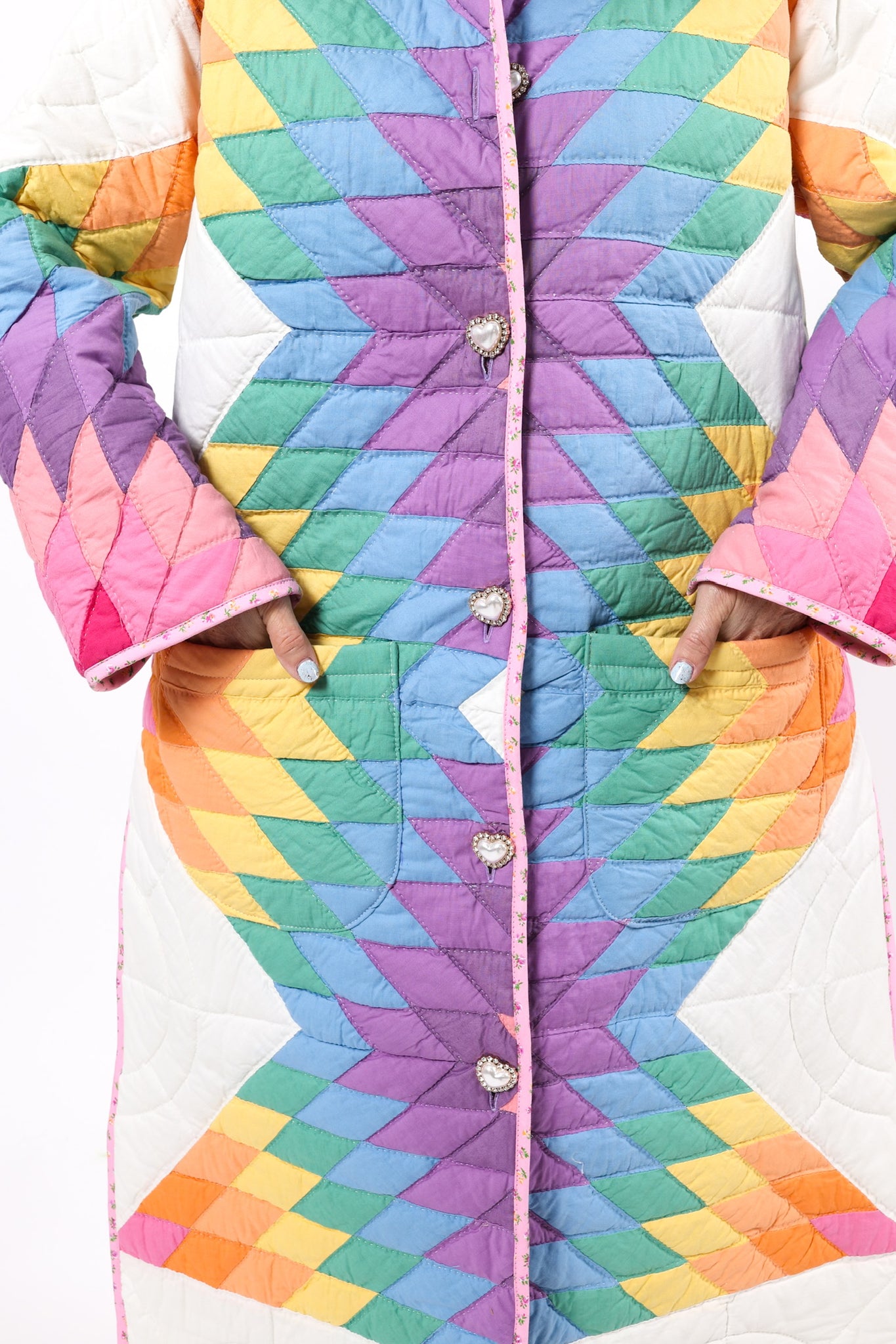 This is a vintage American quilt made circa 1970s to 1980s. It is a traditional Lone Star quilt pattern. The quilt has been hand quilted and hand sewn, which is a labor of love and a lost art! In our opinion, the quilt is thin, lightweight, soft, and has a little loft(puffiness). We added very substantial pearl and rhinestone buttons as closures. This is a Lady Lancaster 10/10. Please note, this quilt most likely contains cotton batting, which is very common for quilts from this era. We believe that this jacket would look epic with a fur! If you would like to see some options, please reach out after purchasing! If you have further questions please direct message us and we are happy to send you a video.