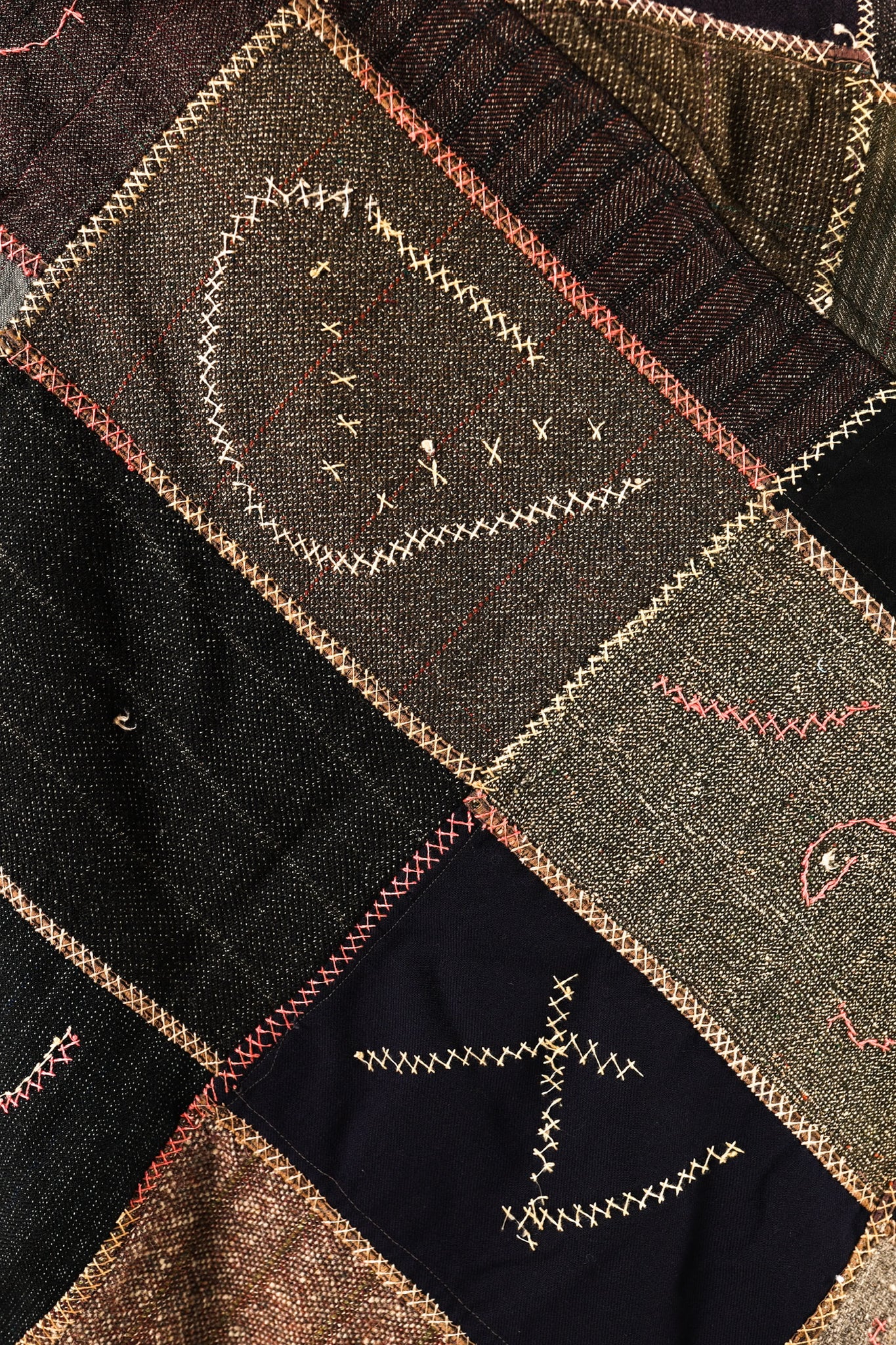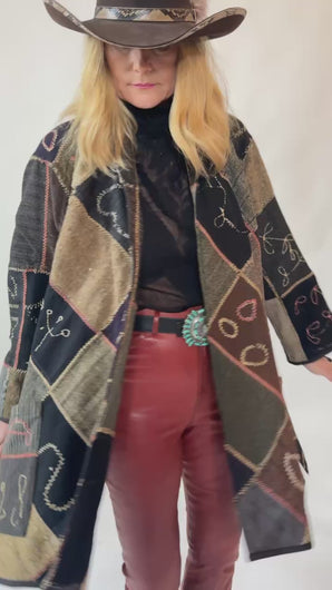 This is an American antique Crazy Quilt. We are uncertain of the date this was made. There are some non descript dates sewn into this quilt, however, none of them make sense. This piece is loaded with hand embroidery. It is very rare for this piece has stood the test of time. This is a very rare museum worthy piece. In our opinion, the jacket is thin, lightweight, and has a beautiful and flattering drape. Please Note: that crazy quilts from this era contain scraps from men’s wool suits. If you are sensitive to wool please consider not purchasing this piece. There are a few zig zag mends that show on the inside of the jacket. We have captured them in the photos and video included in the listing. If you have further questions, please direct message us and we are happy to send you a video.
