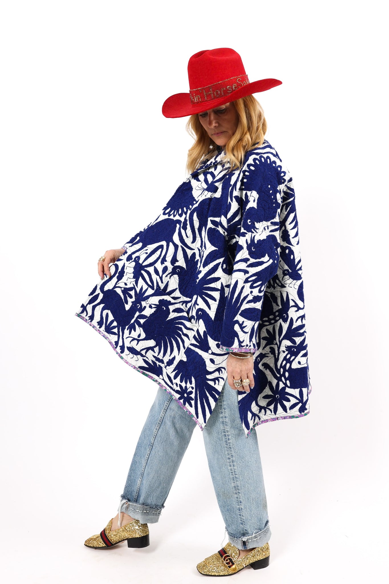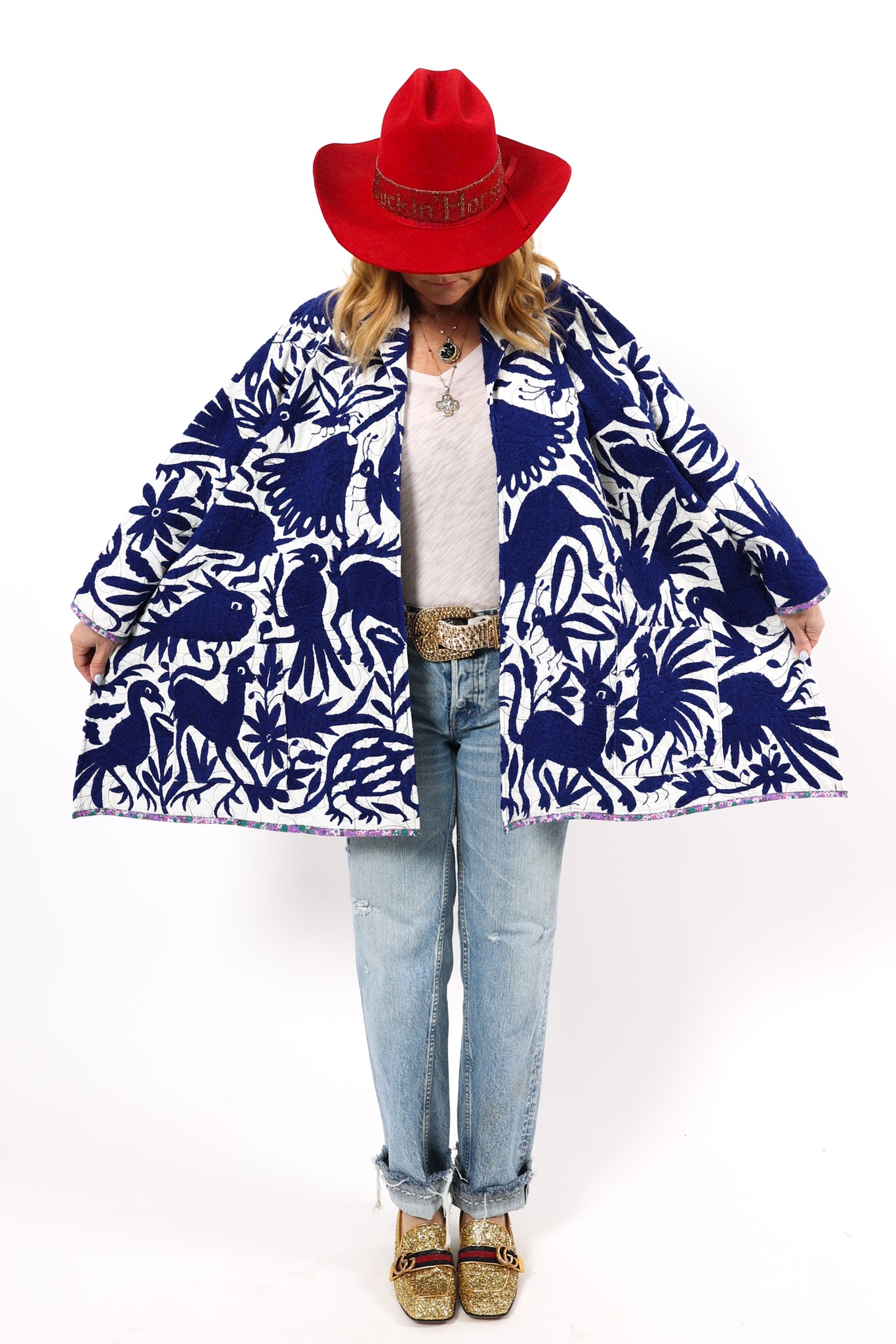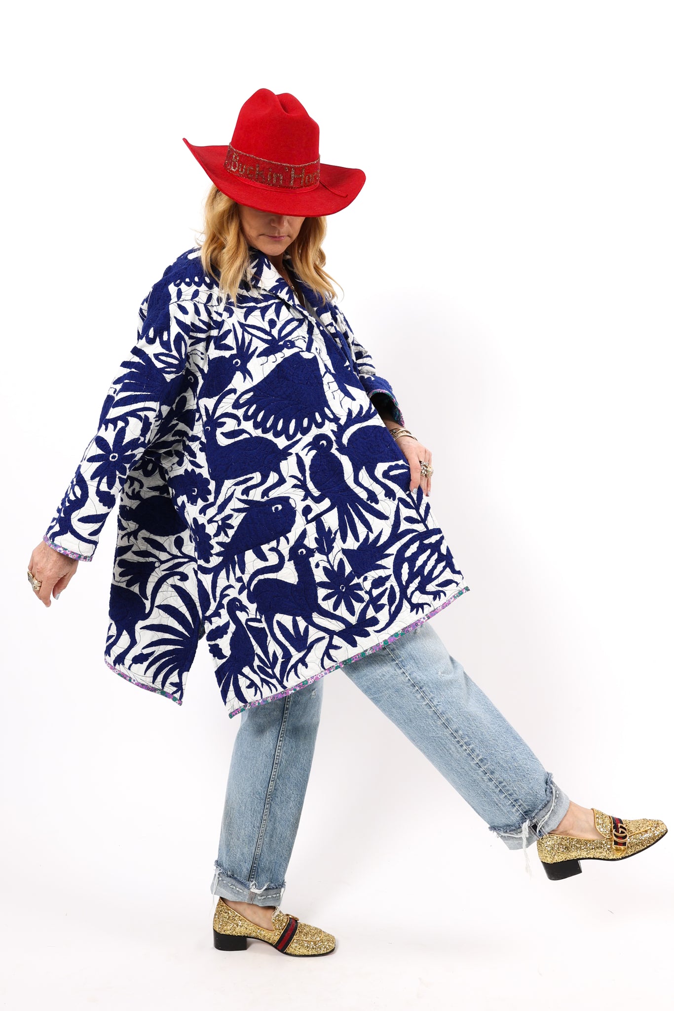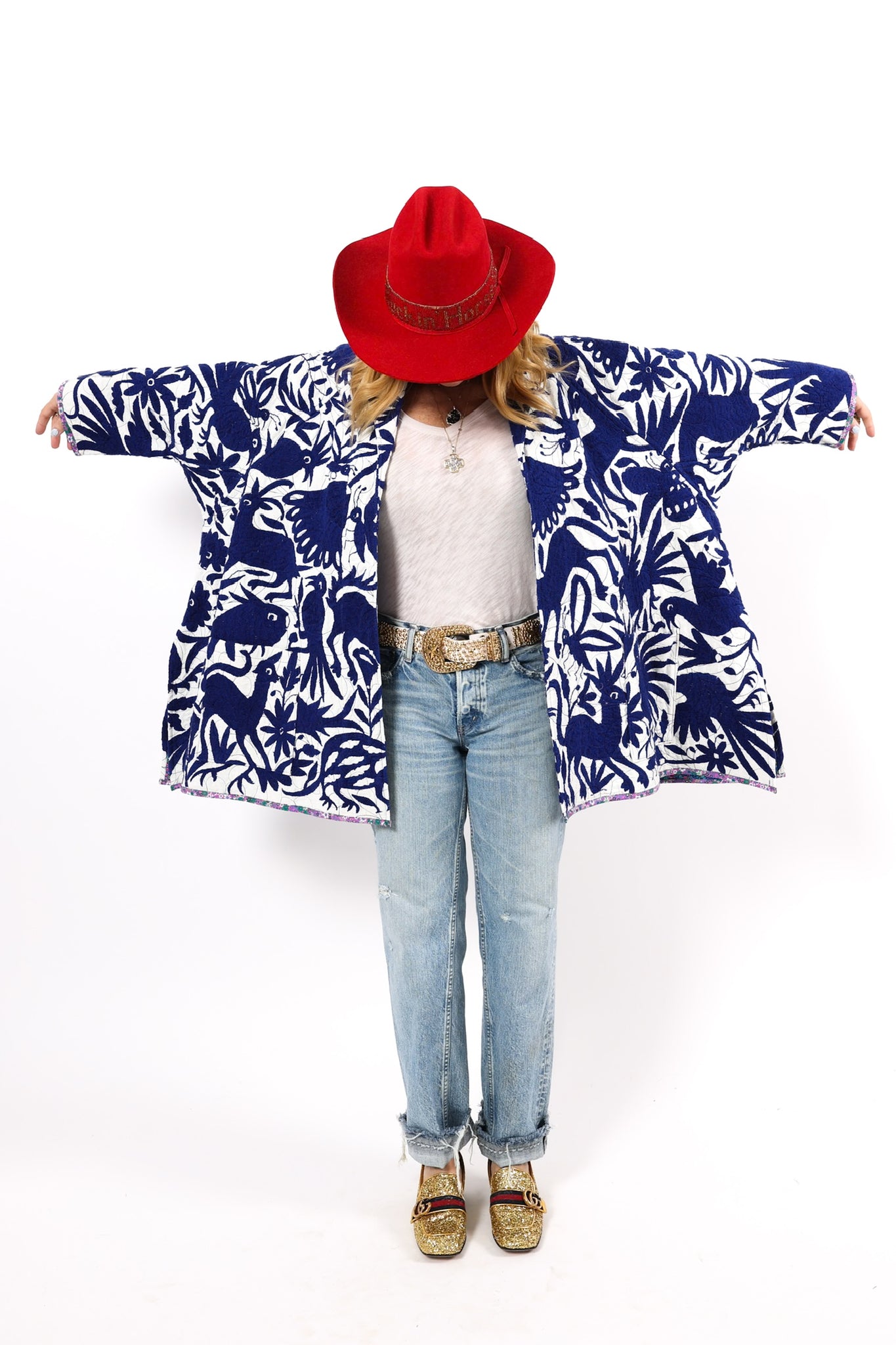 This is a hand embroidered Otomi from San Miguel, Mexico. These handmade Otomis are becoming harder and harder to find because younger generations are not continuing the traditions of their ancestors. Otomi embroidery is a Mexican style of hand embroidery. The Otomi textiles, also known as tenangos, take weeks or even years for the women to embroider. They are said to be based off of cliff paintings in the Tepehua-Otomi mountains in the area. Some say that they may be also inspired by cave paintings in the Mexican Plateau area. The embroidery is done on ivory cotton. To make this Otomi into a quilt we added floral fabric for the backing(inside of jacket). We recommend cuffing the sleeves to show off this fun fabric. In our opinion, the jacket is very very thin and lightweight with no loft or batting. This is absolutely a Lady Lancaster 10/10. It is very flattering and comfortable to wear, and has a great drape. Please Note: due to the hand embroidered art these textiles can snag more easily than quilts and should be worn more carefully. We consider this a show horse and not a work horse so we highly recommend the new owner of this piece handle with care. If you have further questions, please direct message us and we are happy to send you a video.
