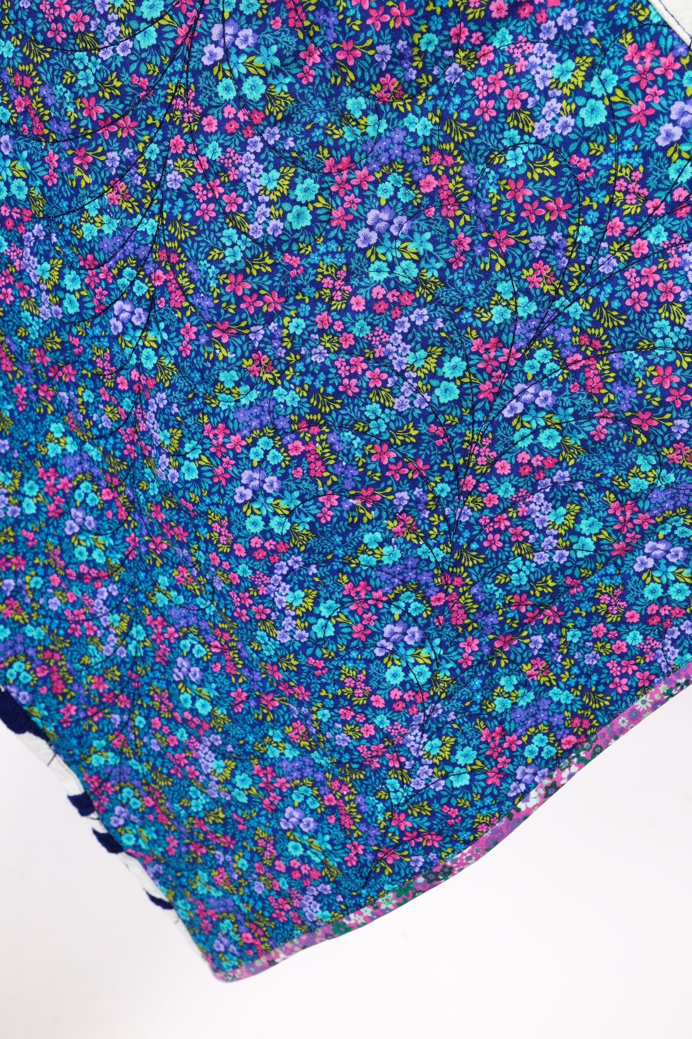 Please note that all of our jackets are made from antique quilts and the fabric reflects this. Our fabrics are sometimes older than 100 years old and are perfectly worn. We believe this is what makes them special and is part of their charm. All of our garments are pre-washed in a special restoration quilt wash. We recommend only spot cleaning if necessary.