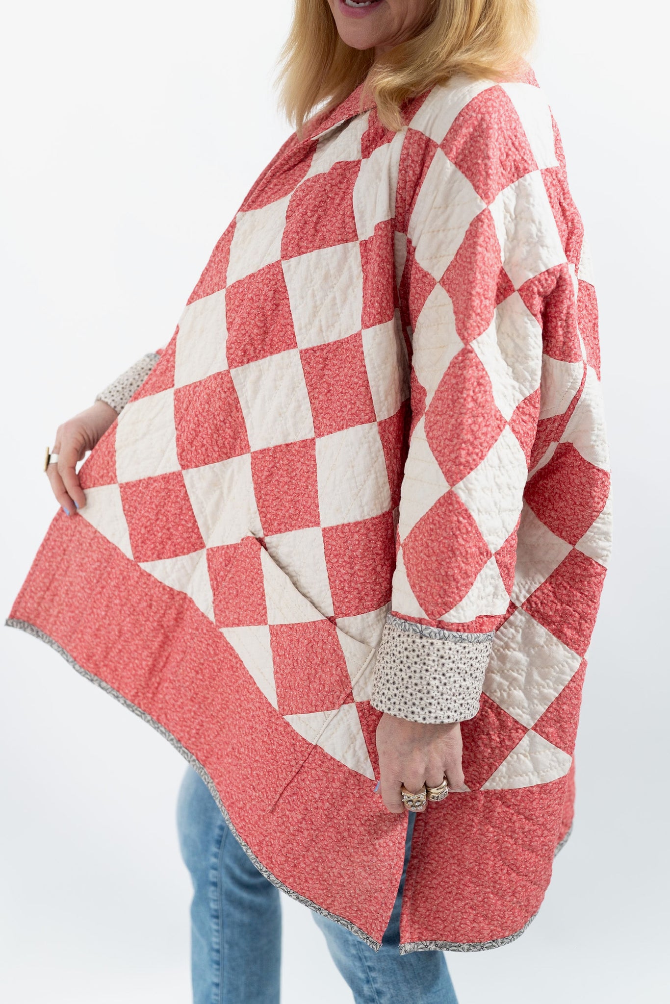Please note that most of our jackets are made from antique quilts and the fabrics reflect this. Some fabrics can be older than 100 years and we believe that makes them perfectly imperfect. This is what makes them a one-of-a-kind piece of art. All of our garments are pre-washed in a special restoration quilt wash. We recommend spot cleaning if necessary.