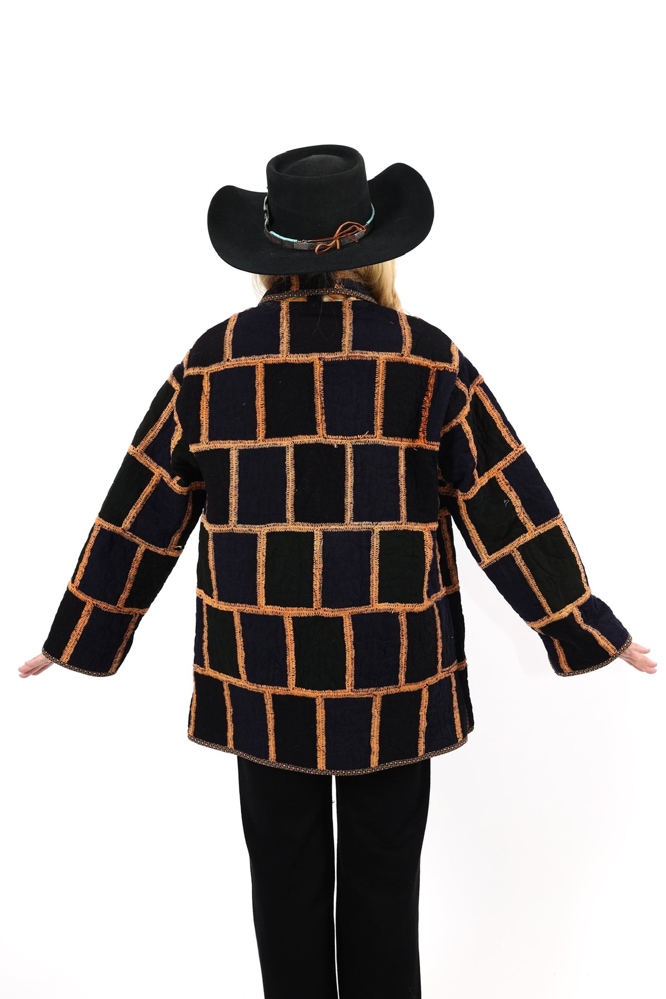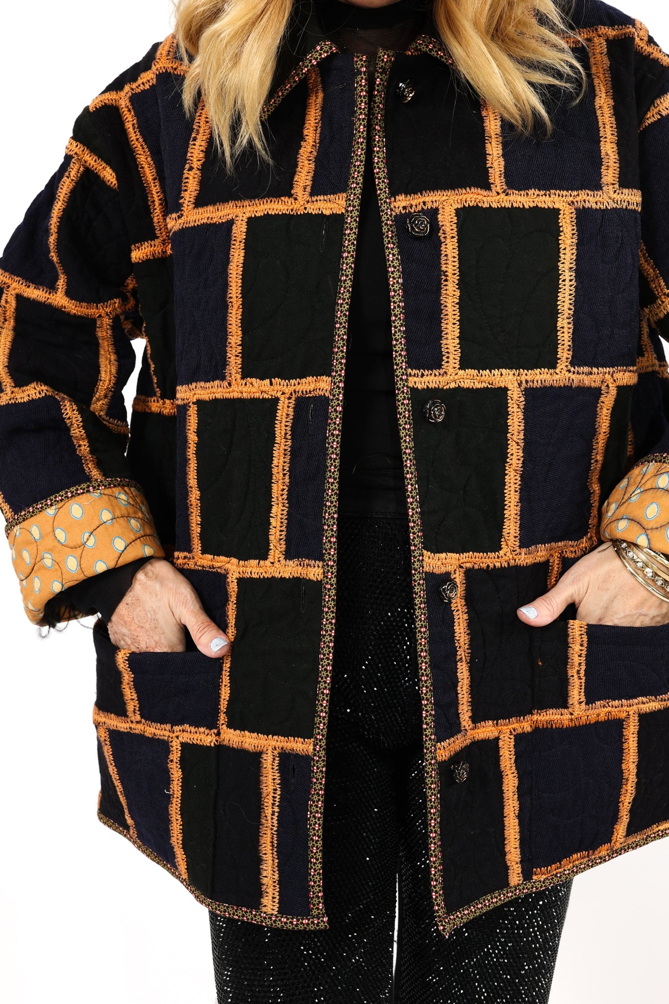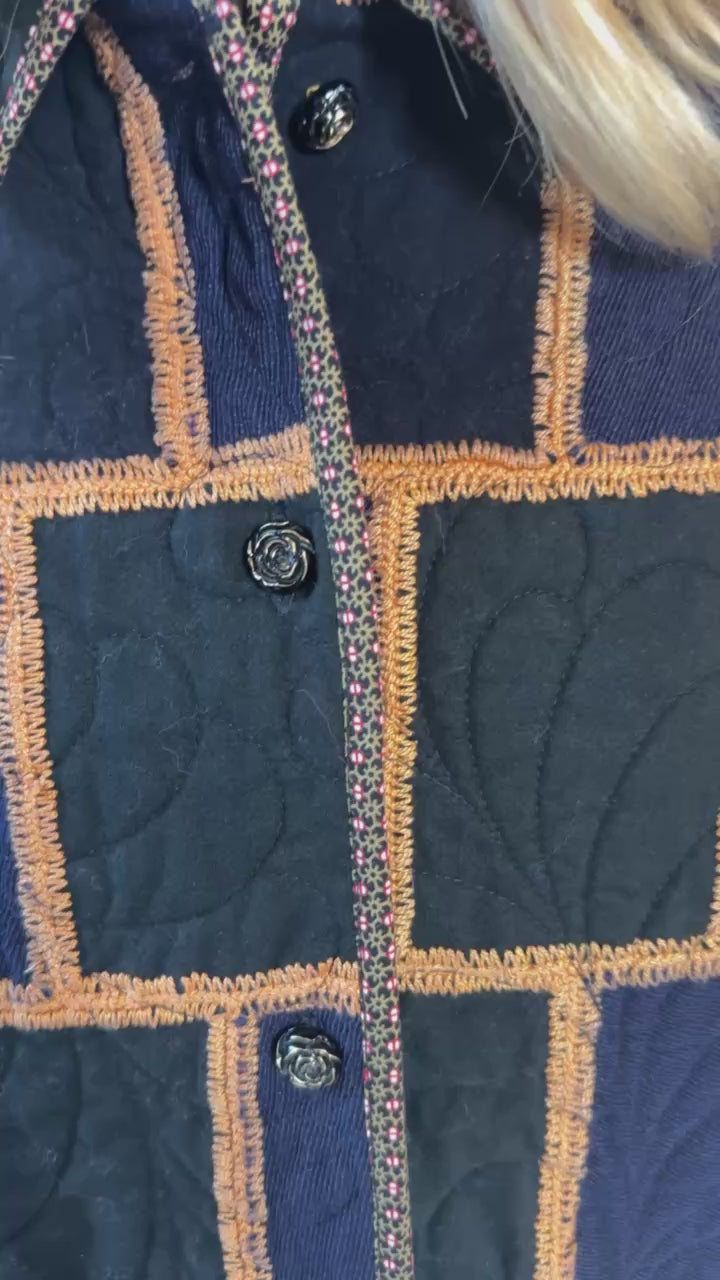 Please note that all of our jackets are made from antique quilts and the fabric reflects this. Our fabrics are sometimes older than 100 years old and are perfectly worn. We believe this is what makes them special and is part of their charm. All of our garments are pre-washed in special restoration quilt wash. We recommend only spot cleaning if necessary.