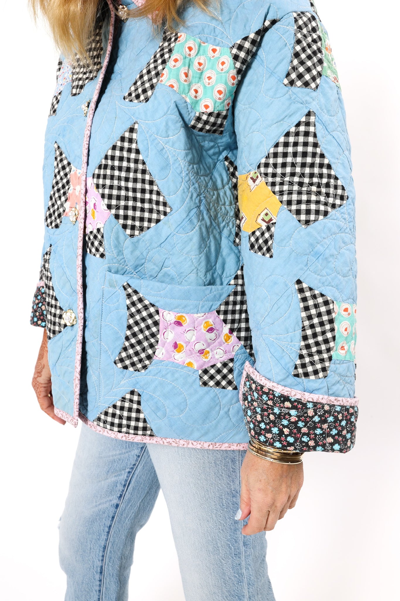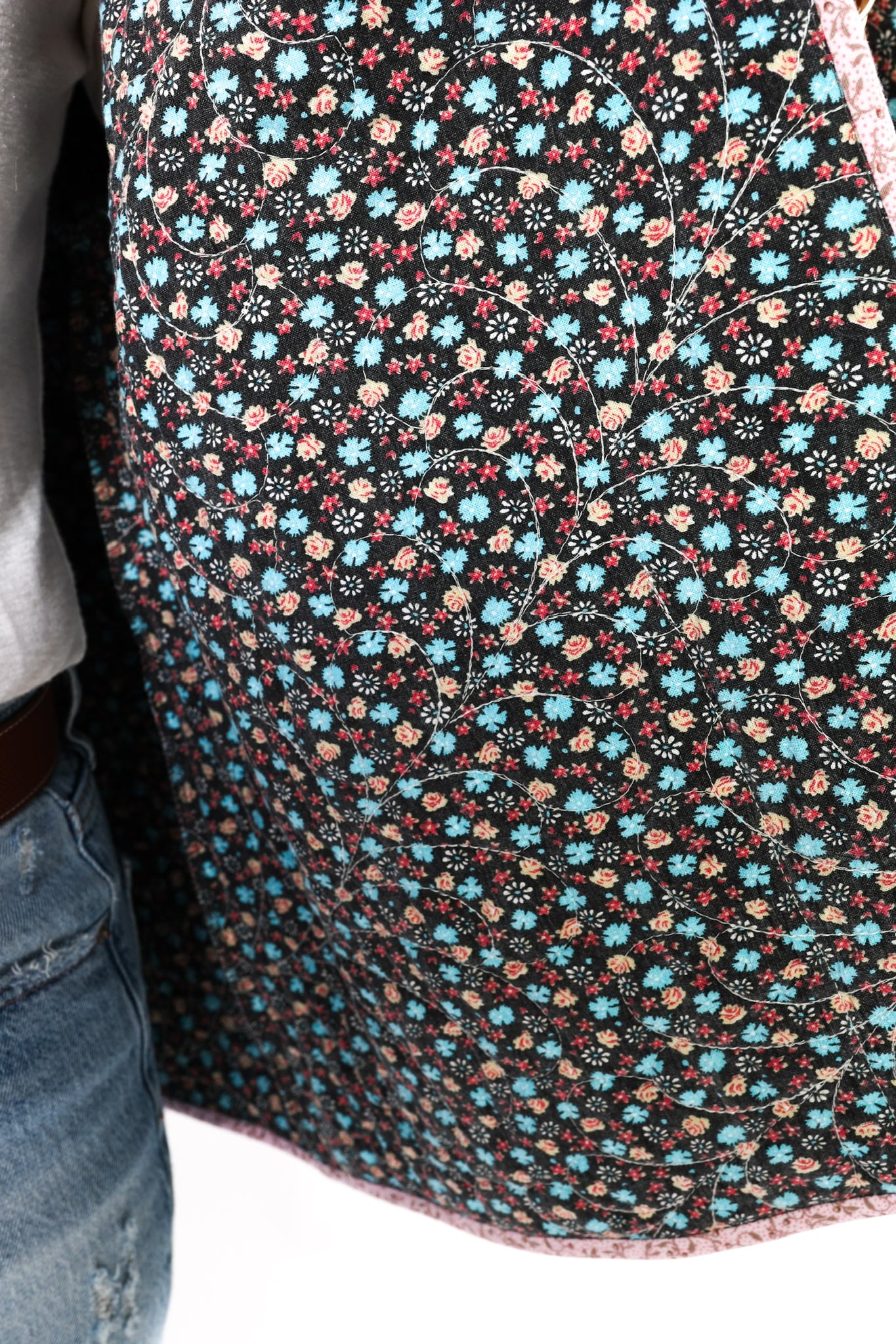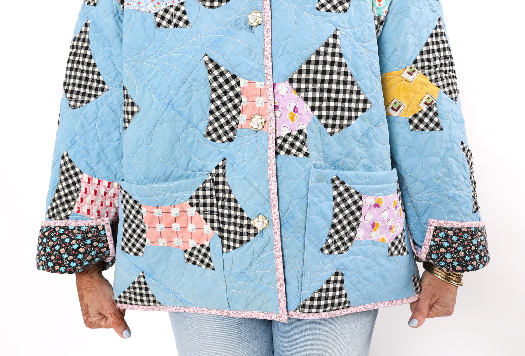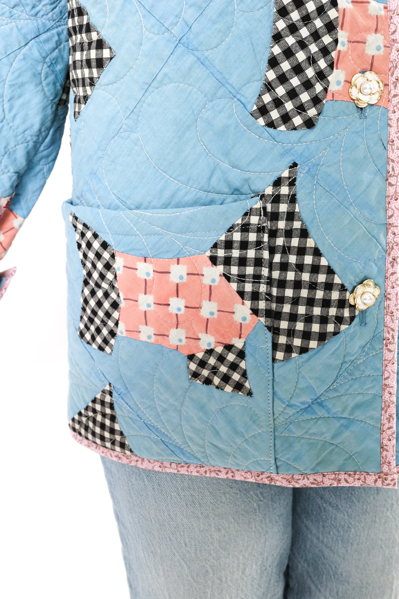 Please note that most of our jackets are made from antique quilts and the fabrics reflect this. Our fabrics are sometimes older than 100 years old and are perfectly worn. We believe this is what makes them special and is part of their charm. All of our garments are pre-washed in special restoration quilt wash. We recommend only spot cleaning if necessary.