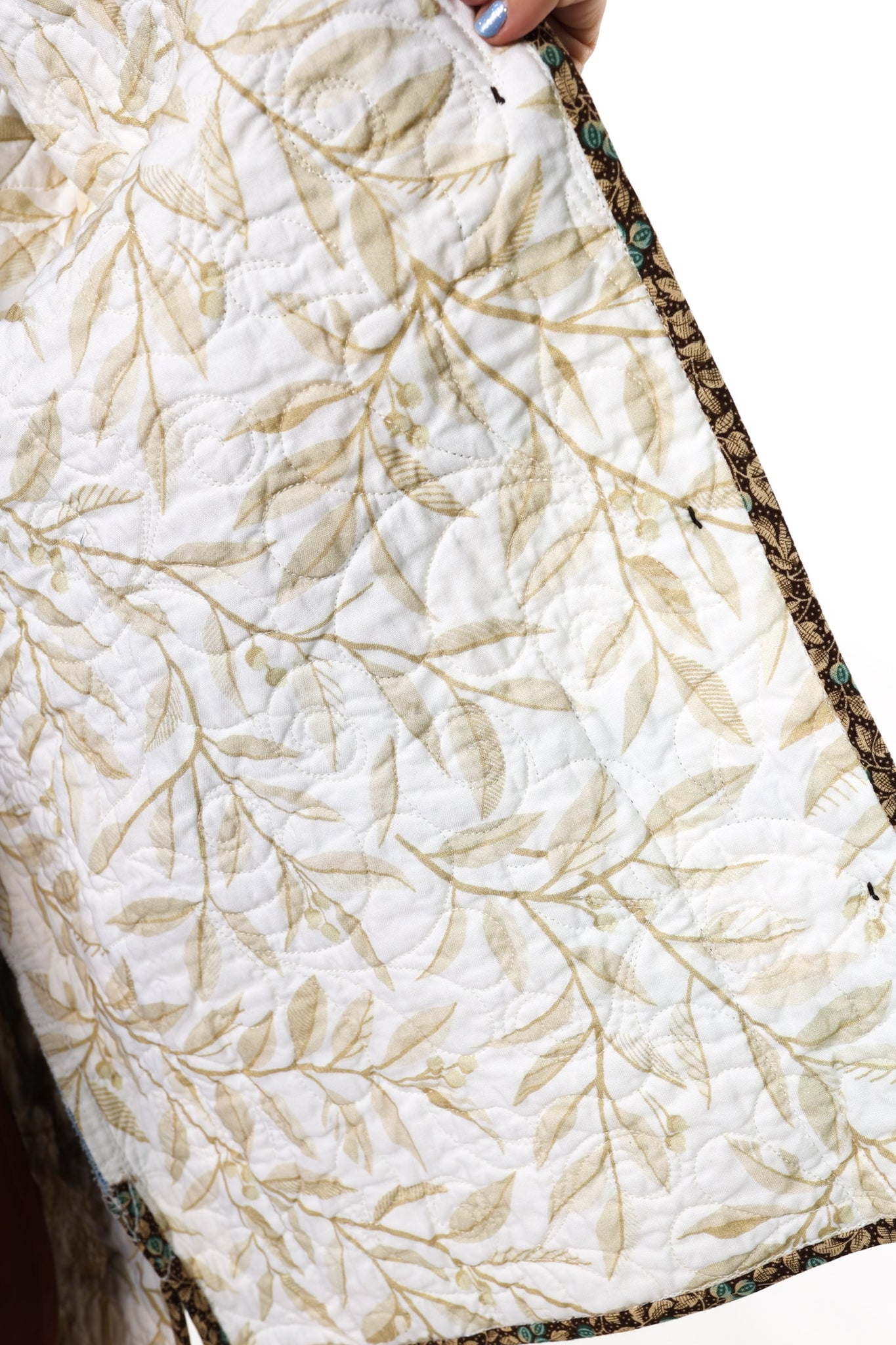 Please note that most of our jackets are made from antique quilts and the fabrics reflect this. Our fabrics are sometimes older than 100 years old and are perfectly worn. We believe this is what makes them special and is part of their charm. All of our garments are pre-washed in special restoration quilt wash. We recommend only spot cleaning if necessary.
