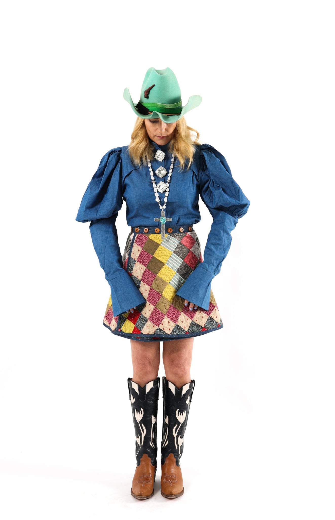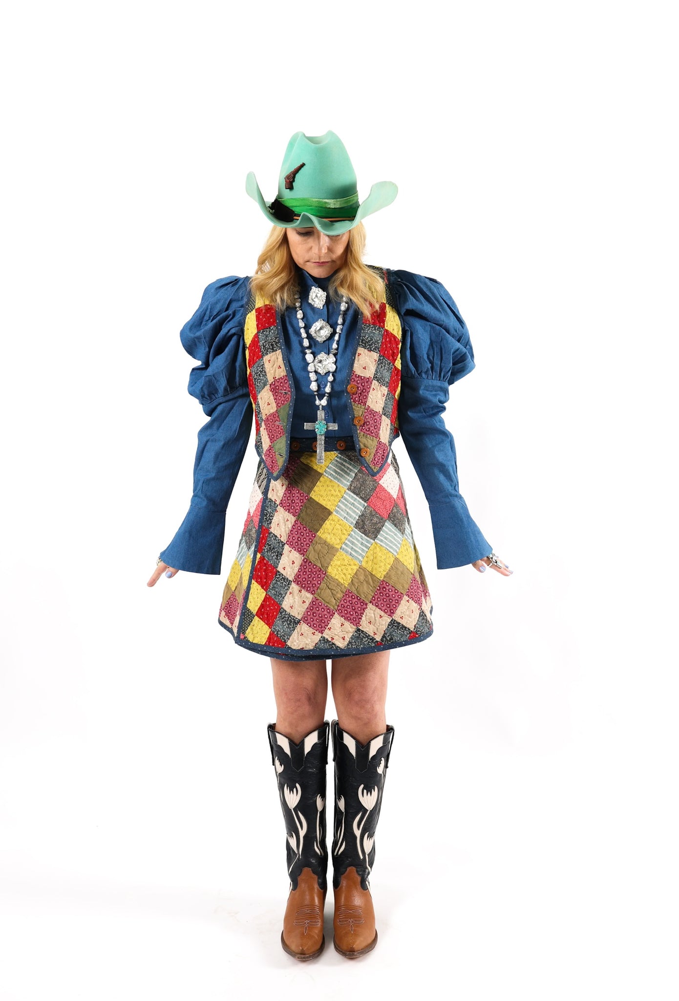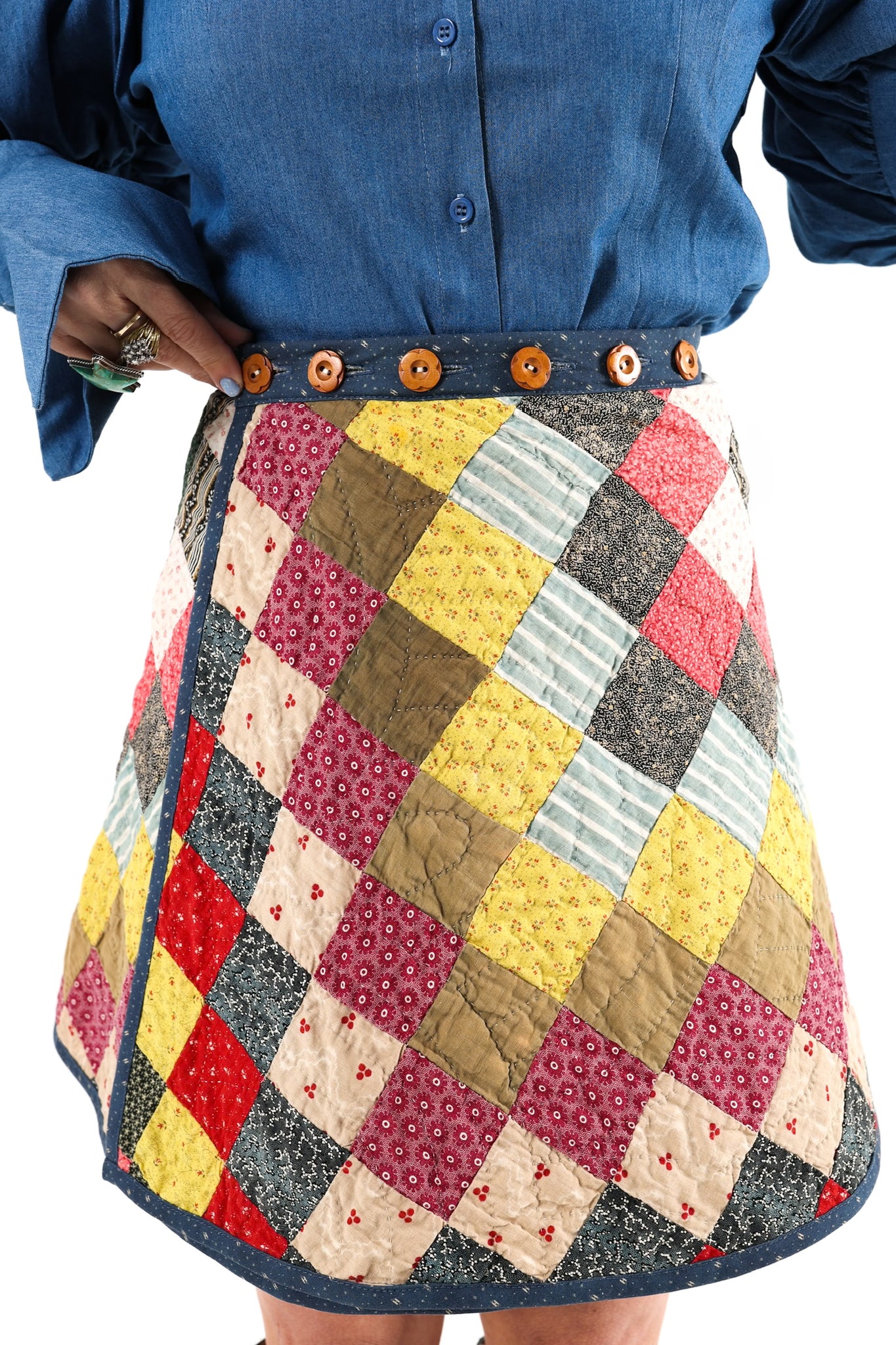 This is an antique American quilt made circa 1880s to 1915. It is a traditional Trip Around the World quilt pattern. This quilt was made in Lancaster County, Pennsylvania. The quilt has been beautifully and meticulously hand sewn and hand quilted. It is a museum worthy piece! The quilt is overflowing with rare and valuable fabrics from the turn-of-the century. It was not made in a humble home! In our opinion, the quilt is very thin and very lightweight. It is in excellent condition for its age. If you are looking for a full quilted statement, there is a matching Wolfe Vest. You will turn heads in this set! Dress this skirt up for dinner and cocktails or style with your favorite rocker tee and trainers. We designed this skirt to fit many different sizes. It has adjustable waist band using wooden floral buttons. It is a strait cut and very flattering. It is a wrap skirt style, please see video at the end of this listing for more details. This skirt best fits a US size 2 to size 8. Please DM us with questions and we will be happy to help. If you have further questions, please direct message us and we are happy to send you a video.