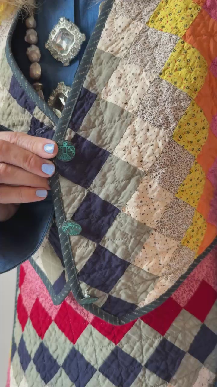 Please note that all of our quilts are made from antique quilts and the fabric reflects this. Our fabrics are sometimes older than 100 years old and are perfectly worn. We believe this is what makes them special and is part of their charm. All of our garments are pre-washed in special restoration quilt wash. We recommend only spot cleaning if necessary.