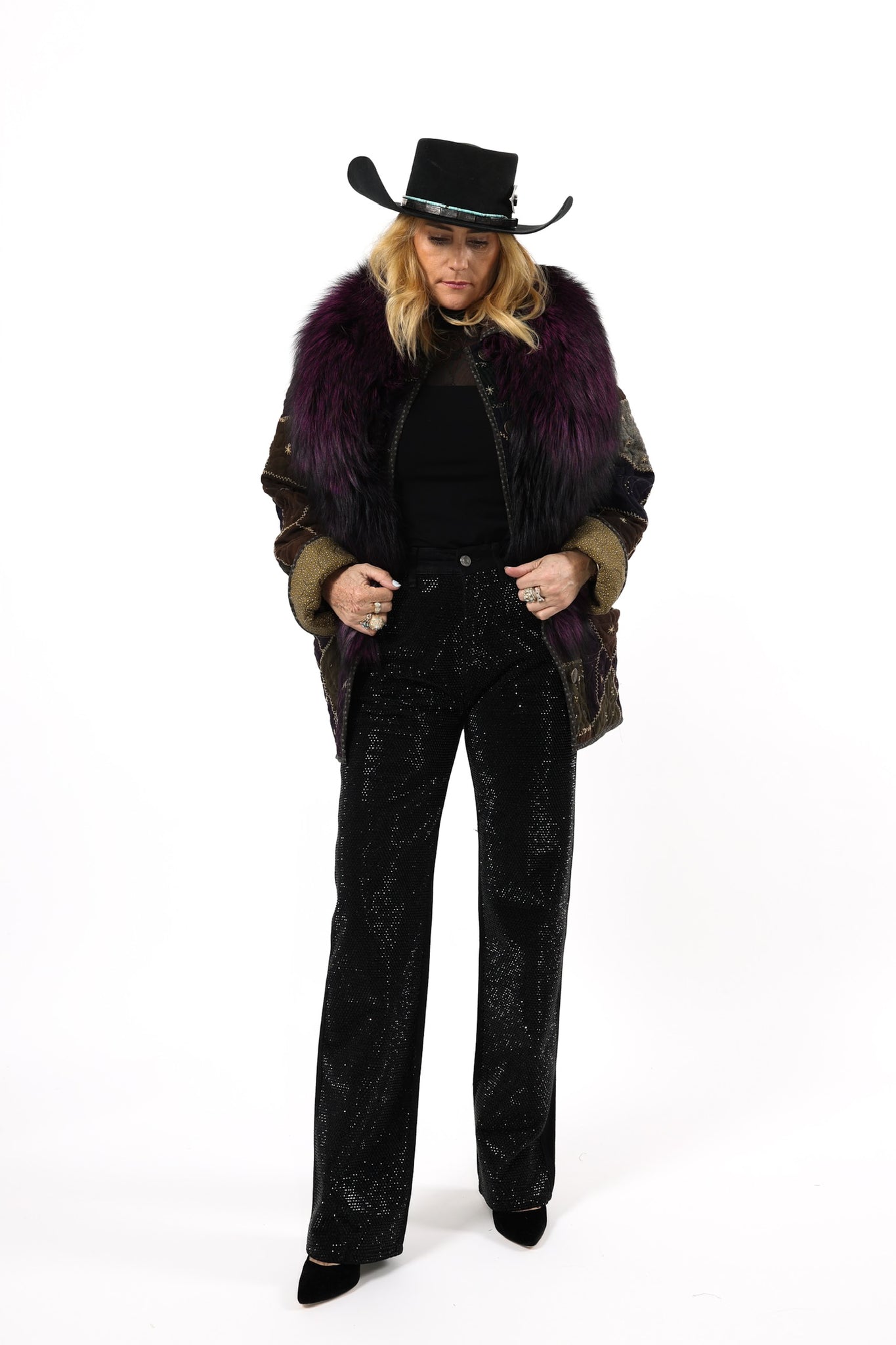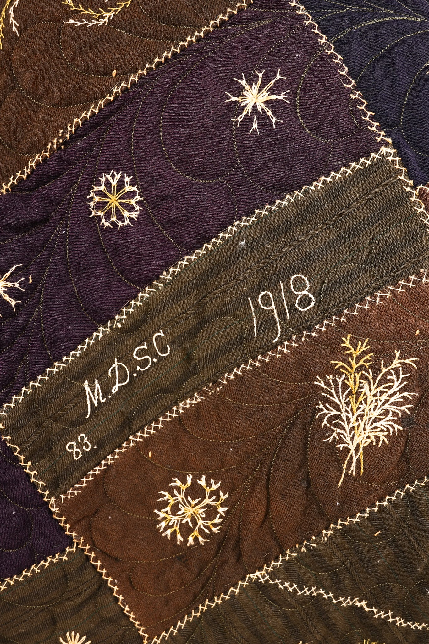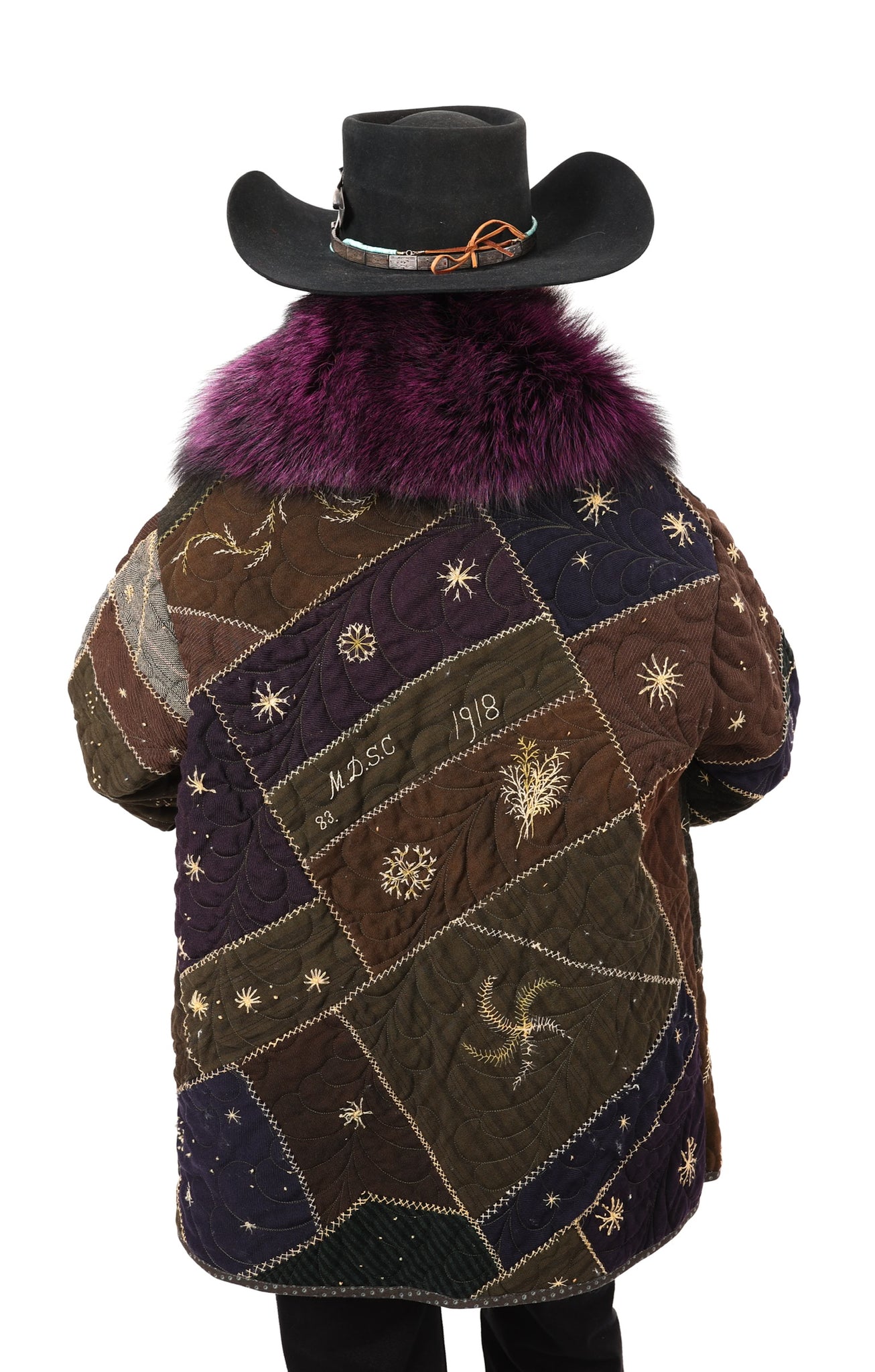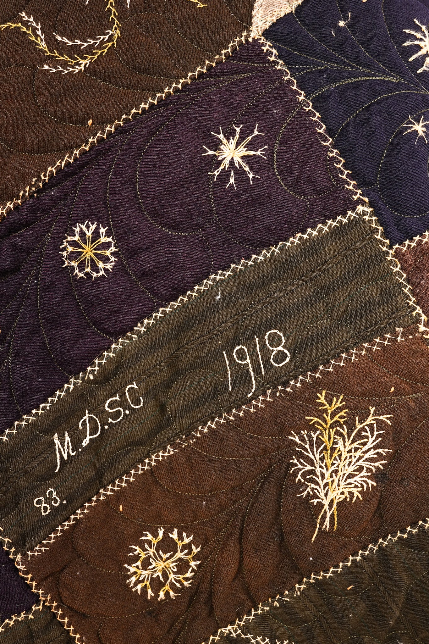 This is an antique American quilt top started in 1883 and completed in 1918 by M.D.S.C. We know this because the maker hand embroidered this information on the quilt. We have preserved this provenance and placed it on the center back of the jacket. It is a Scrappy or Crazy quilt pattern loaded with beautiful hand embroidery. We absolutely love the little French knots and turkey trot stitches that add interest and depth to the piece! To complete the quilt we backed this piece with coordinating turn-of-the-century reproduction fabric. You will want to cuff the sleeves to show this fabric off! This quilt contains wool fabrics from men‘s suit scraps. If you are sensitive to wool, please do not consider purchasing this piece. This jacket is thicker, heavier and loftier (has more puff)than we typically create. It is great for fall, winter weather, or colder climates. This piece would also look epic with a fur attached! We have shown a combo that we love! If you would like a fur, please reach out after purchasing and we will show you options! For closures we used bronze faux coin buttons. There are a few zig zag mends throughout that we have captured in photographs for your convenience. This is a size LARGE, please read size measurements below. This piece fits a range of sizes depending on how you like to style your jackets. If you have any questions please direct message us and we are happy to bore you with many more details.