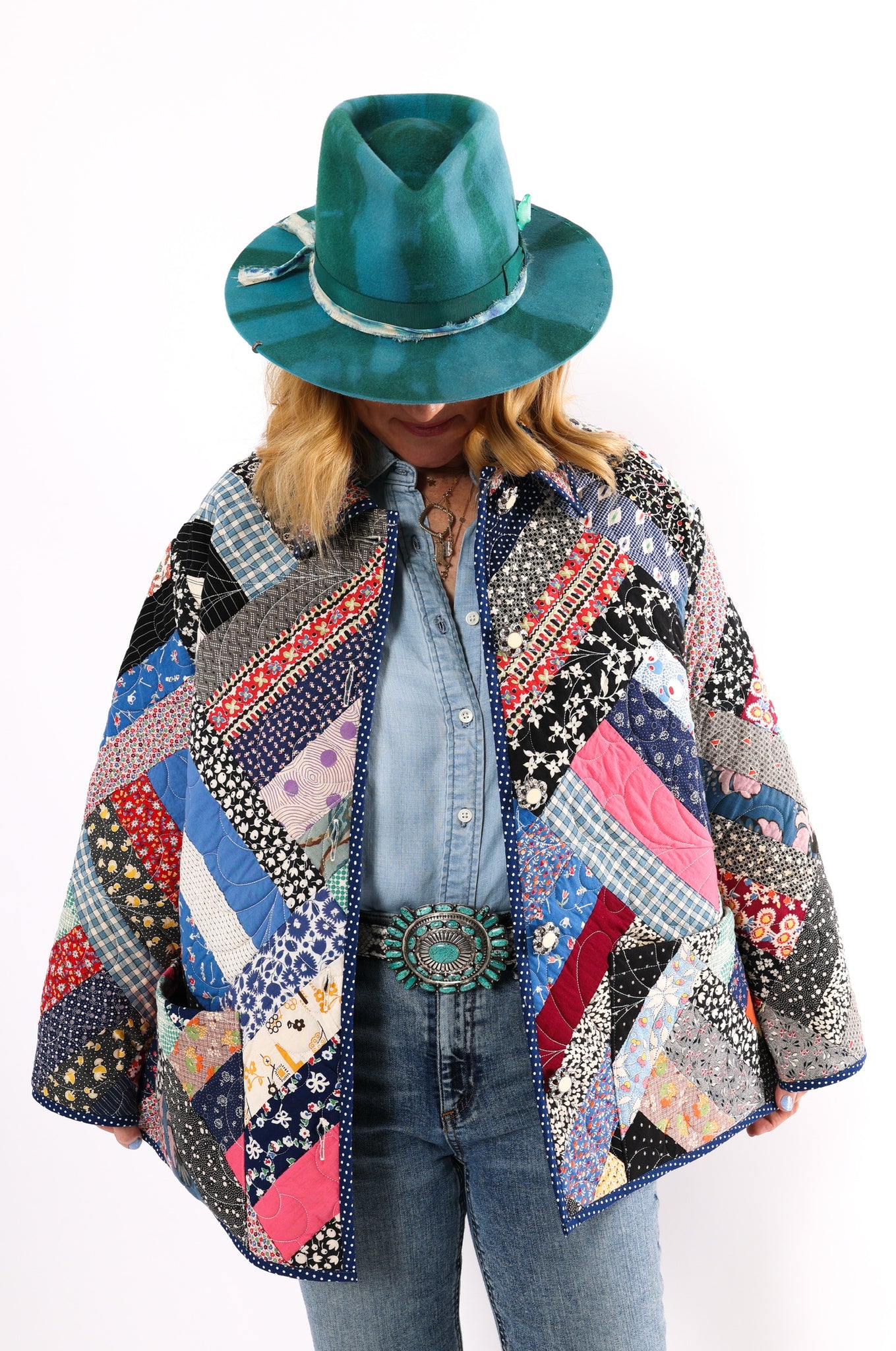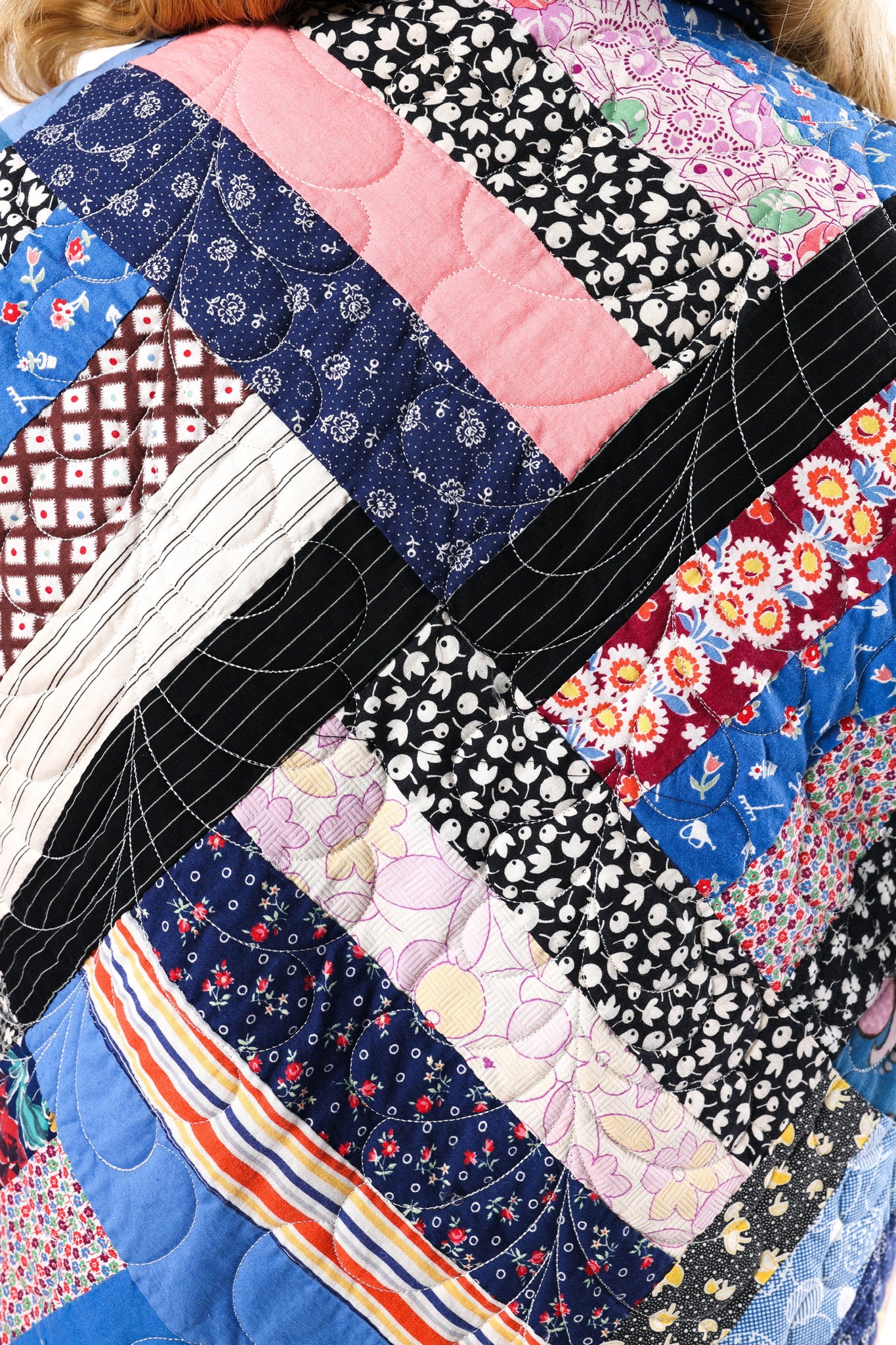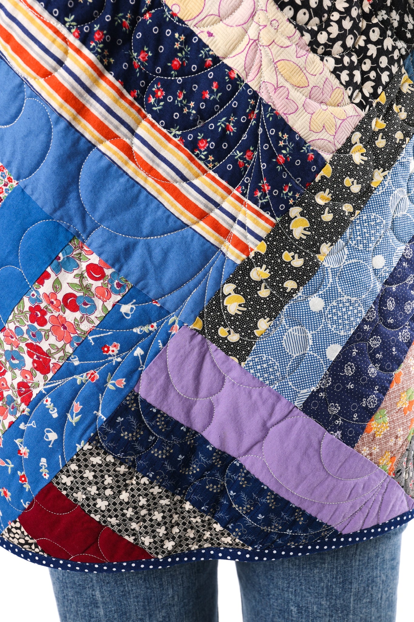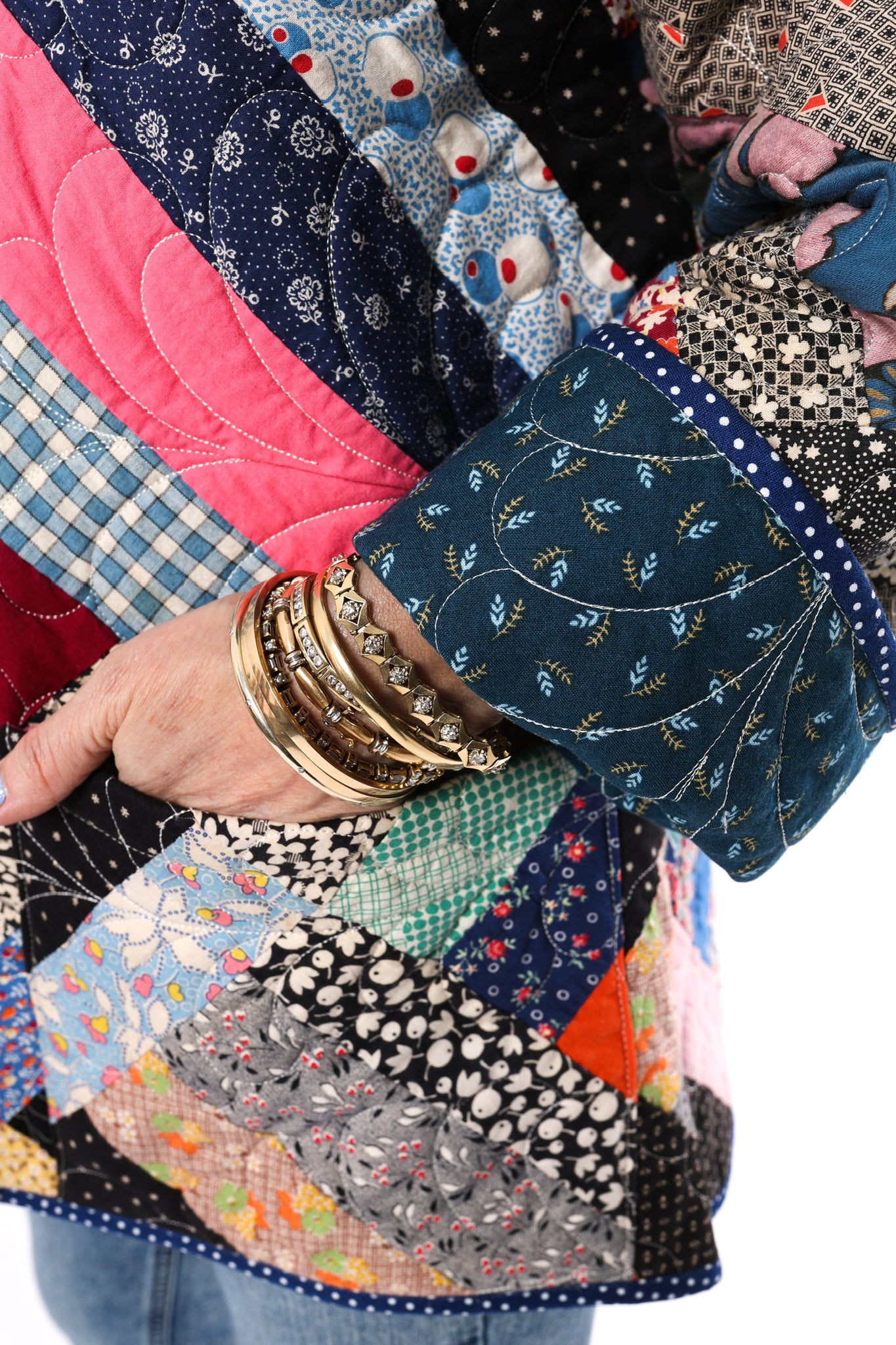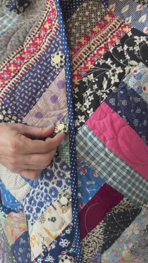 Please note that most of our jackets are made from antique quilts and the fabrics reflect this. Our fabrics are sometimes older than 100 years old and are perfectly worn. We believe this is what makes them special and is part of their charm. All of our garments are pre-washed in special restoration quilt wash. We recommend only spot cleaning if necessary.