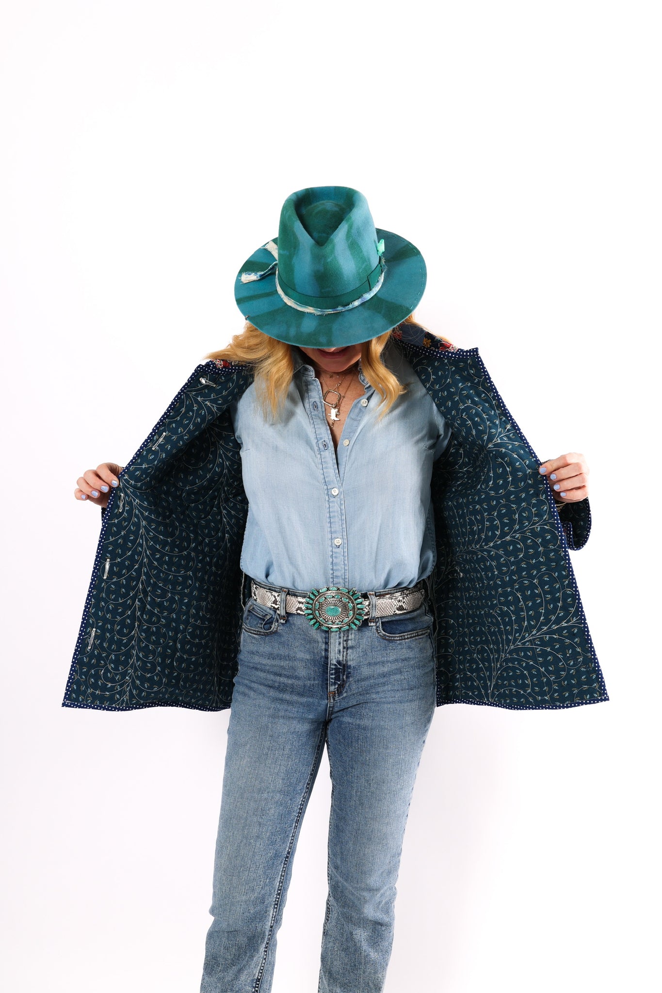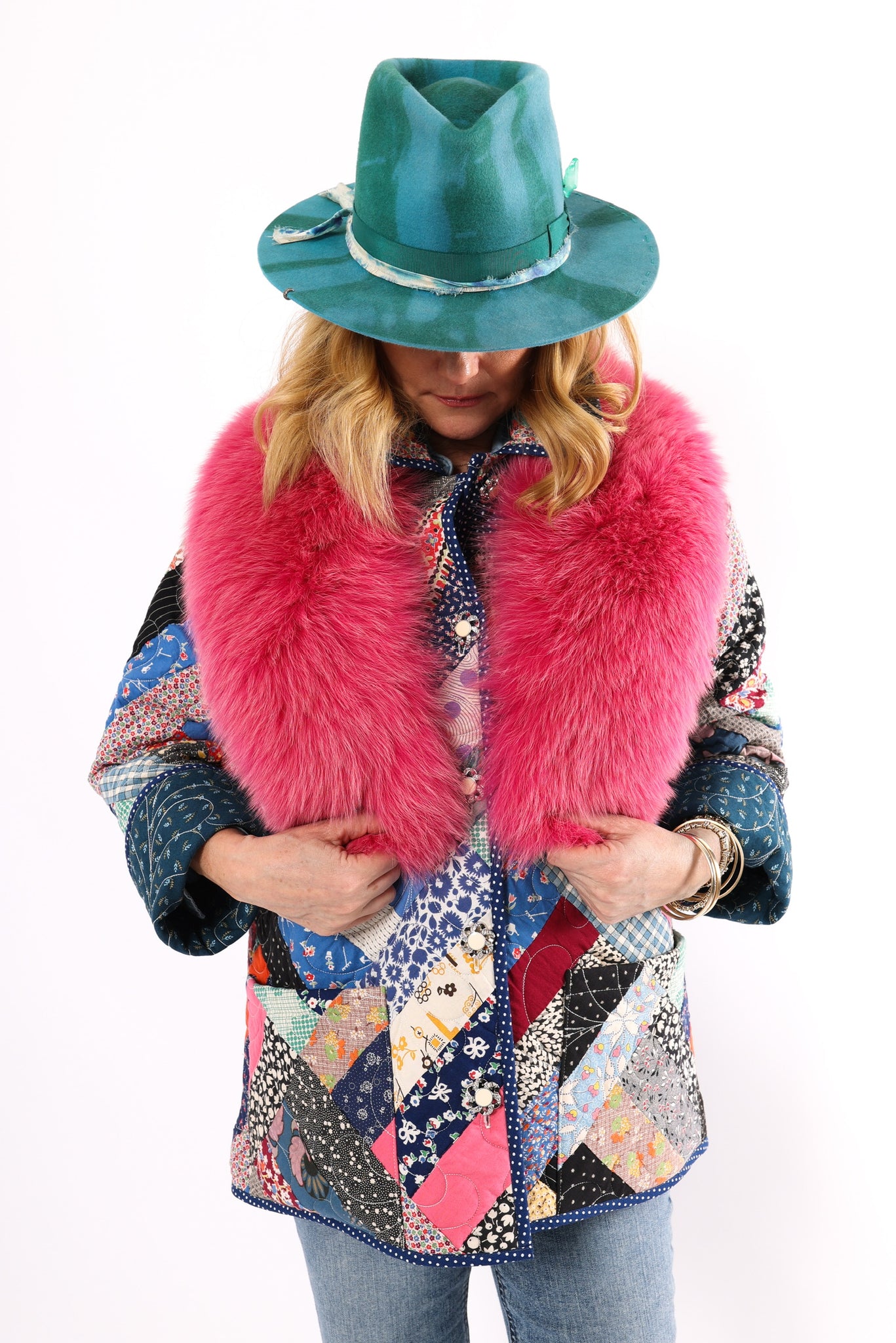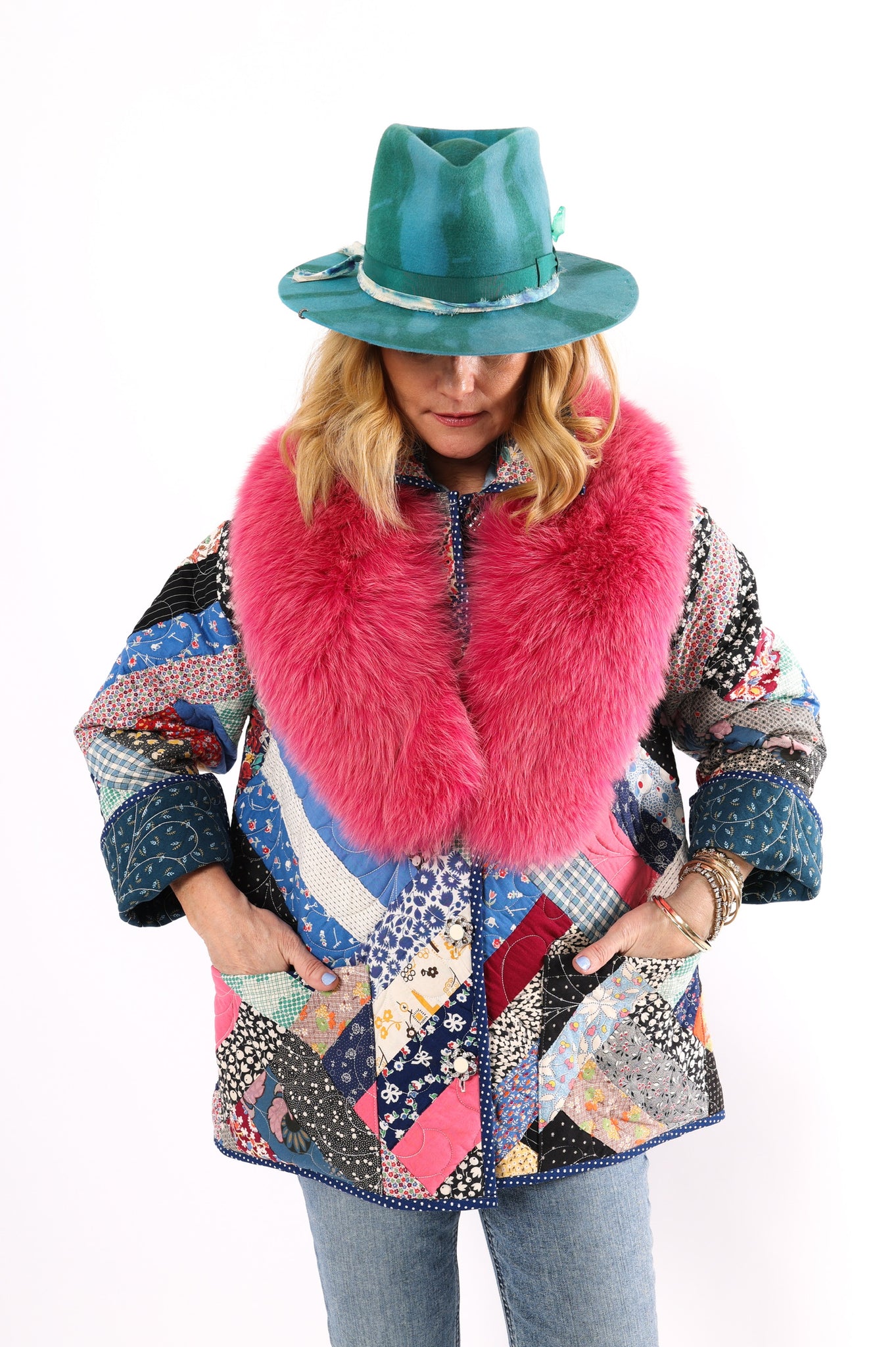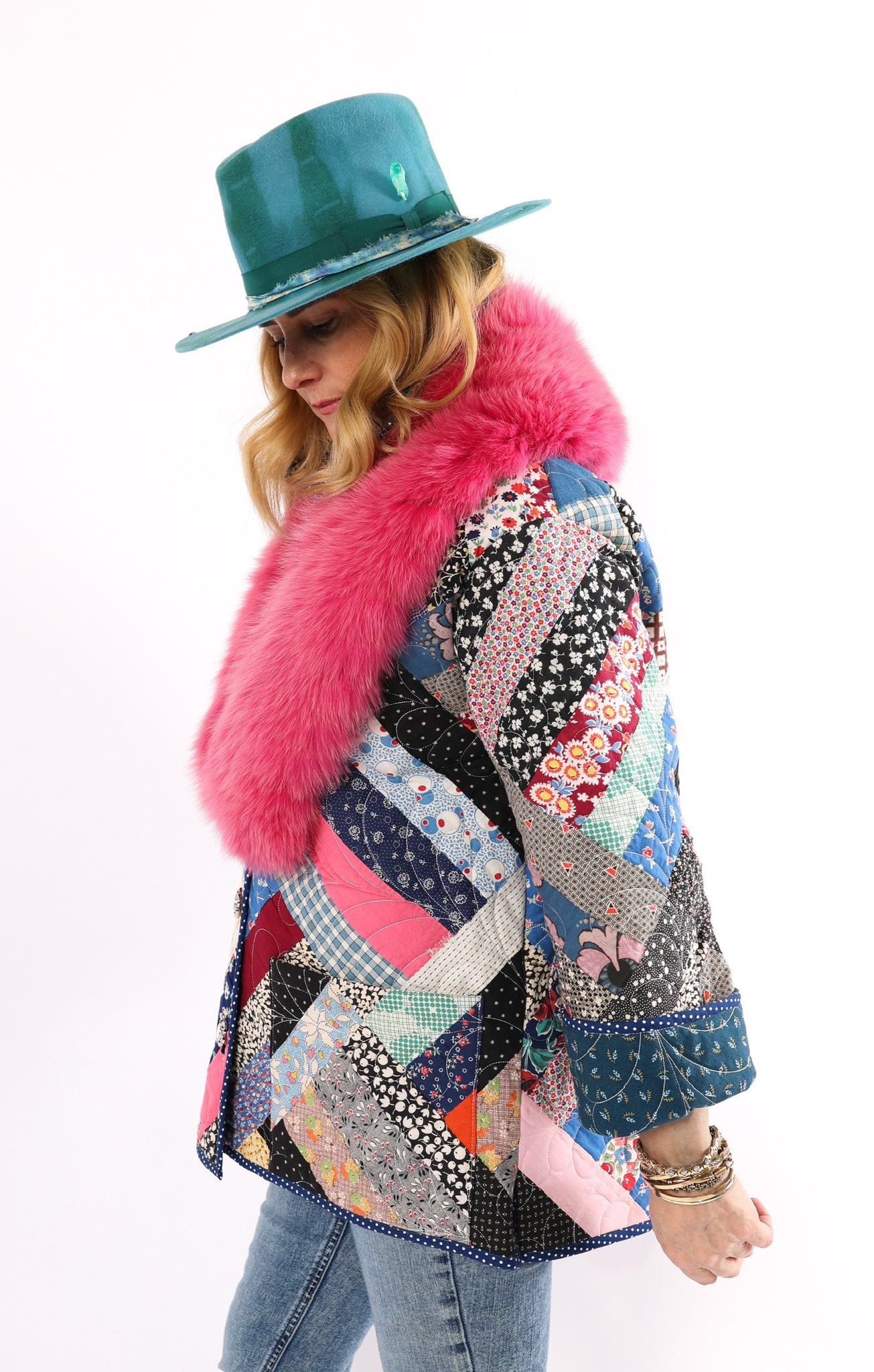 Please note that most of our jackets are made from antique quilts and the fabrics reflect this. Our fabrics are sometimes older than 100 years old and are perfectly worn. We believe this is what makes them special and is part of their charm. All of our garments are pre-washed in special restoration quilt wash. We recommend only spot cleaning if necessary.