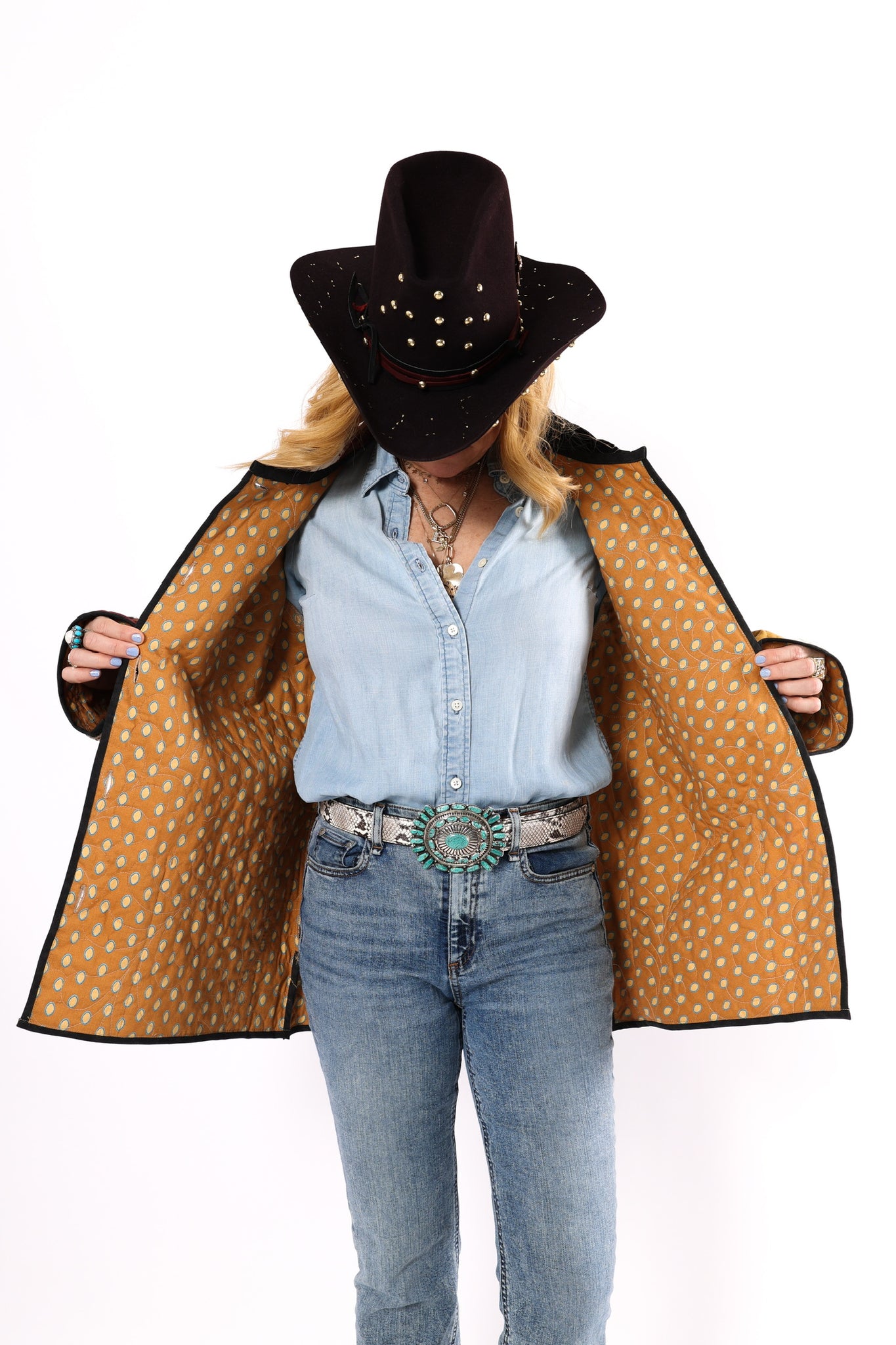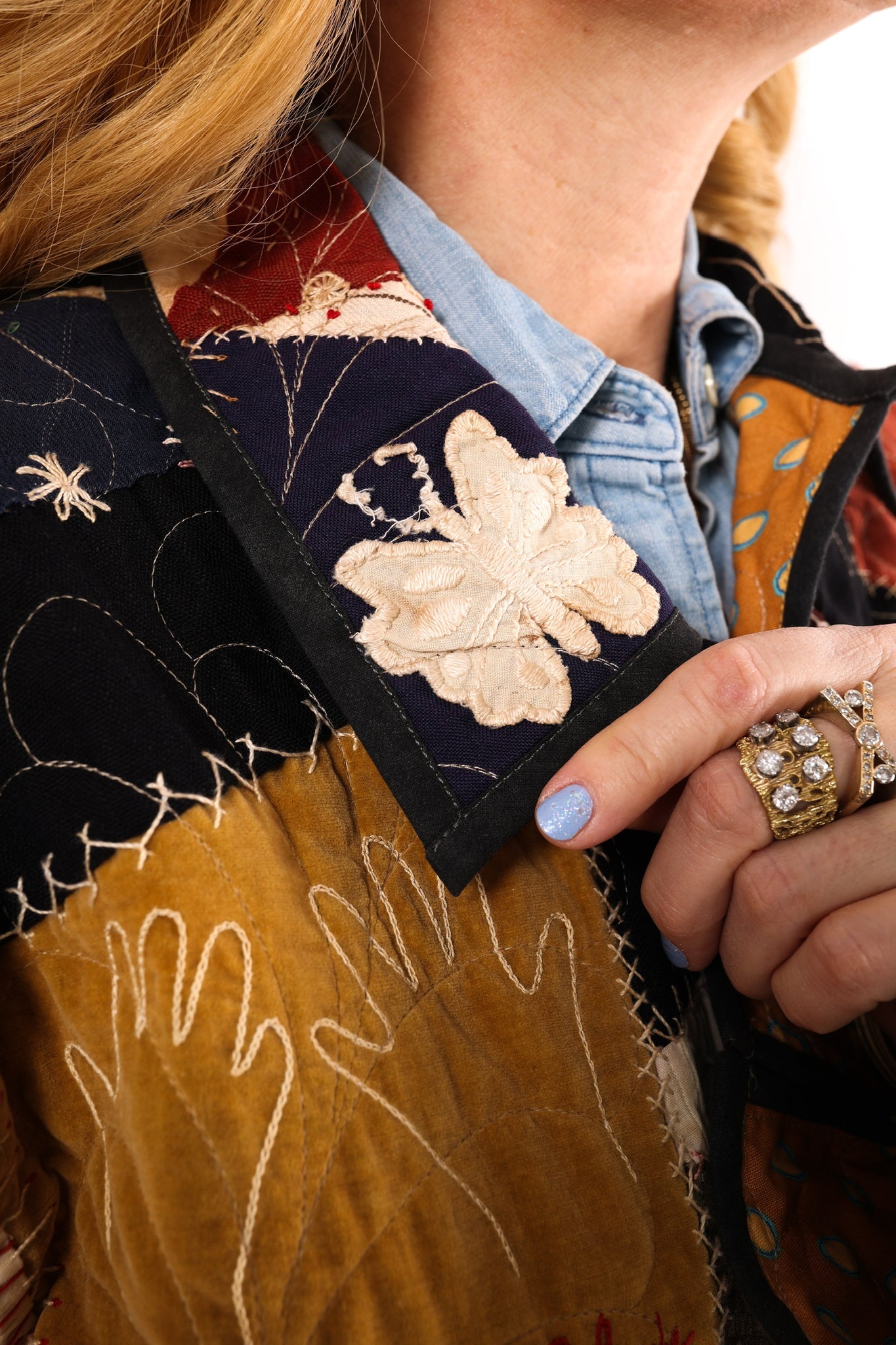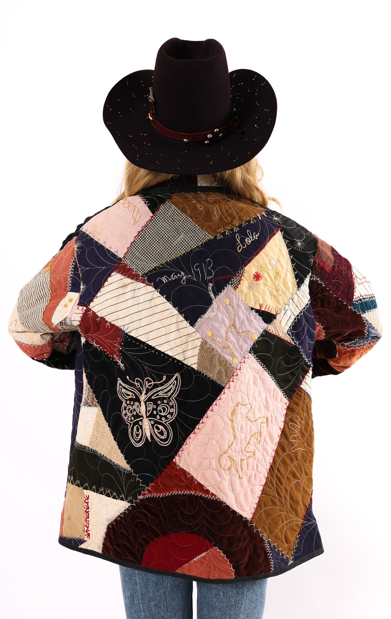 Please note that most of our jackets are made from antique quilts and the fabrics reflect this. Our fabrics are sometimes older than 100 years old and are perfectly worn. We believe this is what makes them special and is part of their charm. All of our garments are pre-washed in special restoration quilt wash. We recommend only spot cleaning if necessary.