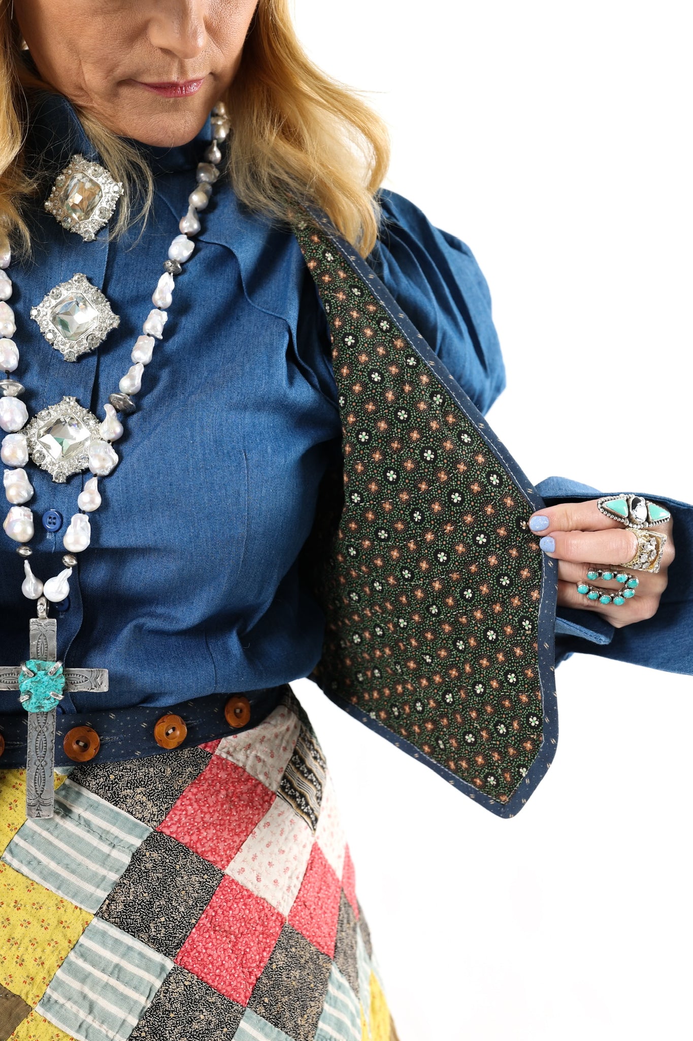 Please note that all of our jackets are made from antique quilts and the fabric reflects this. Our fabrics are sometimes older than 100 years and we believe that makes them perfectly imperfect. This is what makes them a one-of-a-kind piece of art. All of our garments are pre-washed in a special restoration quilt wash. We recommend spot cleaning if necessary.