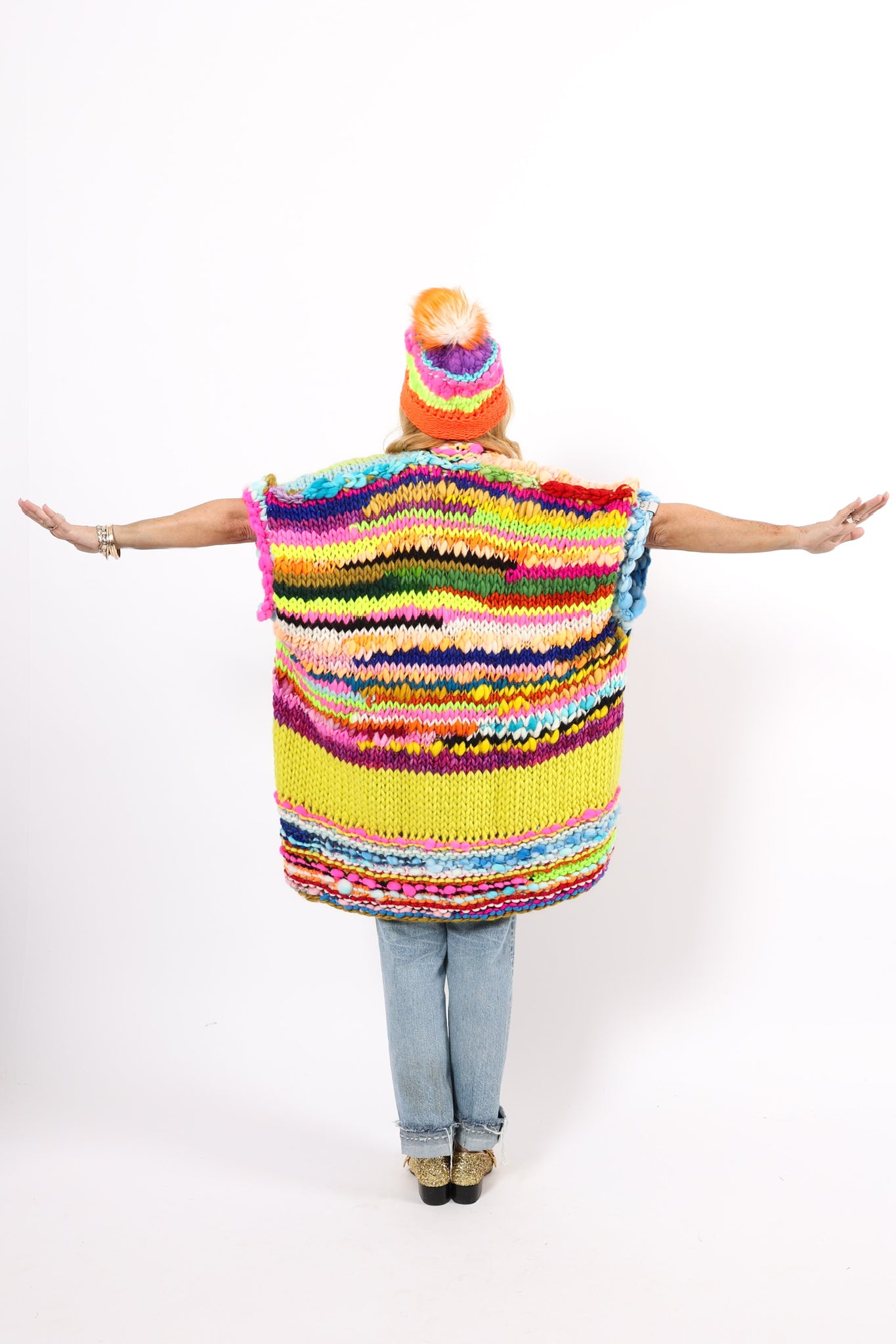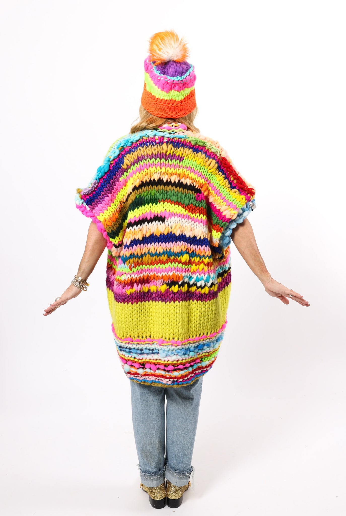 Each piece is curated for fashion and functionality, offering warmth paired with unique and vibrant colors. The chunky hand knitting gives one of a kind depth and texture! The materials used in the making of Yospun pieces include - Marino silk, Marino wool, yarn, bamboo silk, and sheep’s fleece.