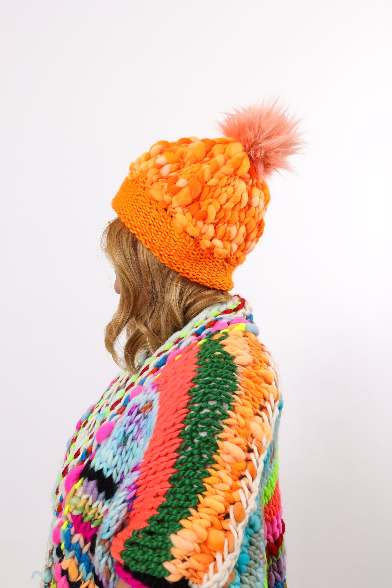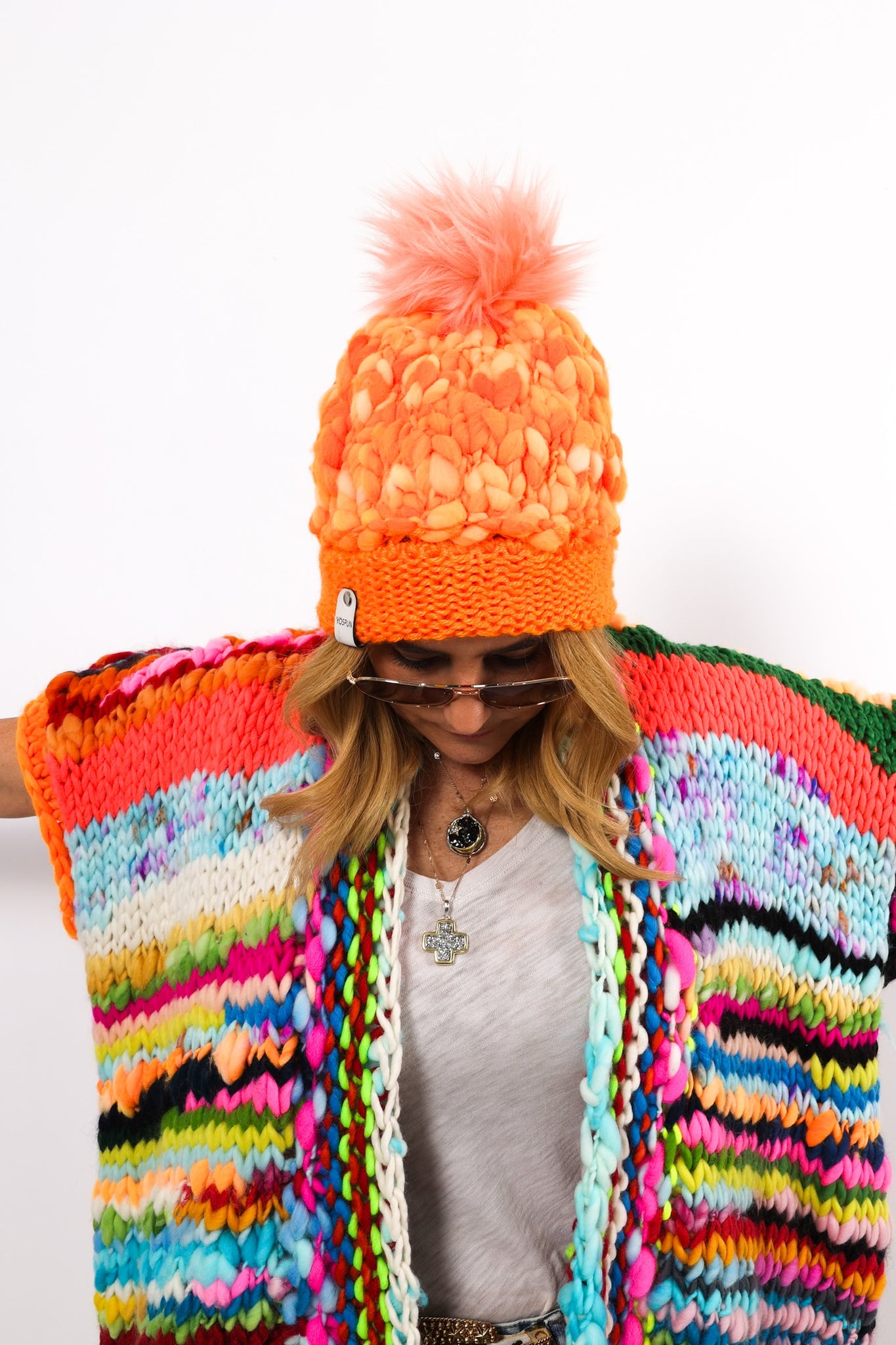 Each piece is curated for fashion and functionality, offering warmth paired with unique and vibrant colors. The chunky hand knitting gives one of a kind depth and texture! The materials used in the making of Yospun pieces include - Marino silk, Marino wool, yarn, bamboo silk, and sheep’s fleece.